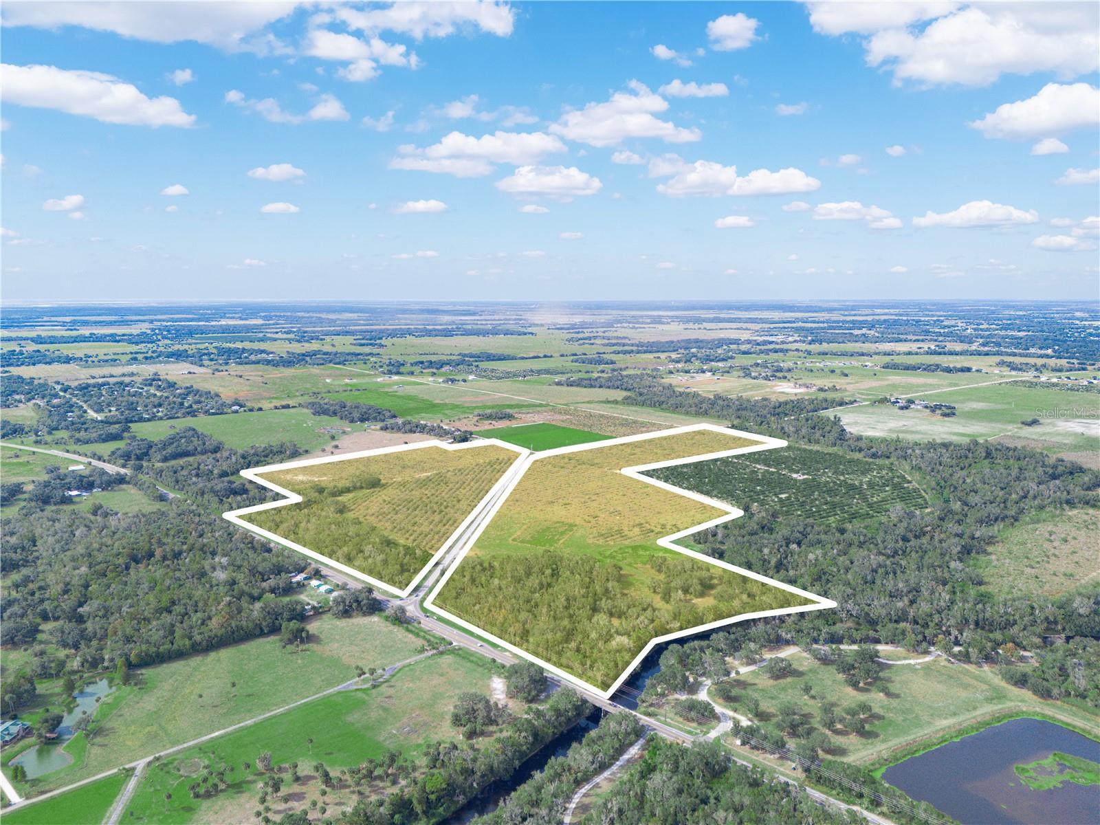 Positioned just outside Wauchula in Hardee County, this 114± acre riverfront assemblage pairs rare Peace River access with high-visibility highway frontage. The property presents approximately 859.53 feet of Peace River shoreline and ±2,179 feet along State Road 64, with South Florida Avenue bisecting the tract for excellent internal circulation and multiple access points. With nearby examples of outdoor hospitality and limited large-scale development in the immediate Wauchula area, the site is well-suited for an RV resort or river-oriented recreational destination, a mixed-use commercial, or a phased residential plan with a commercial village at the hard corner. The sellers are willing to subdivide the property.