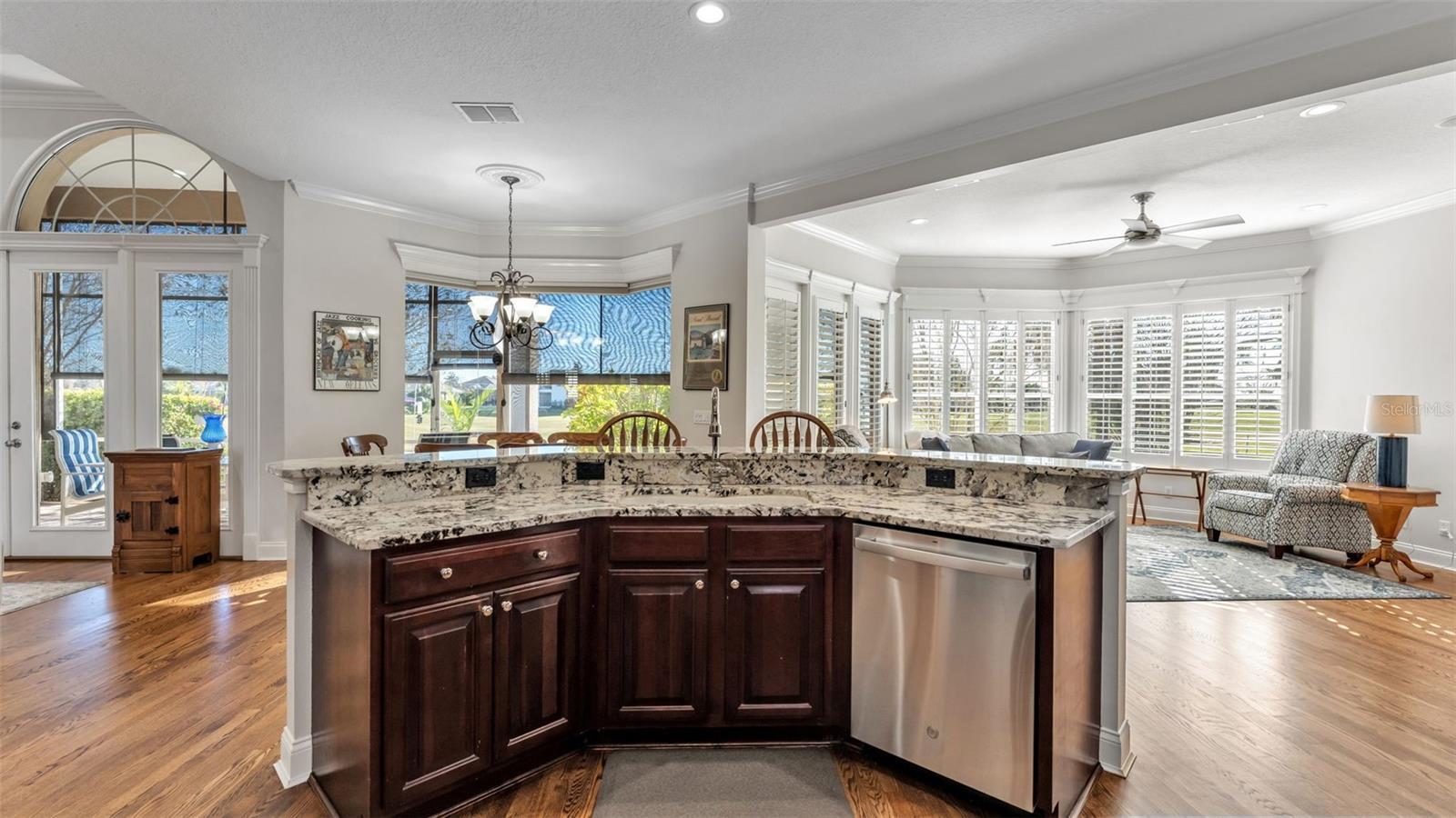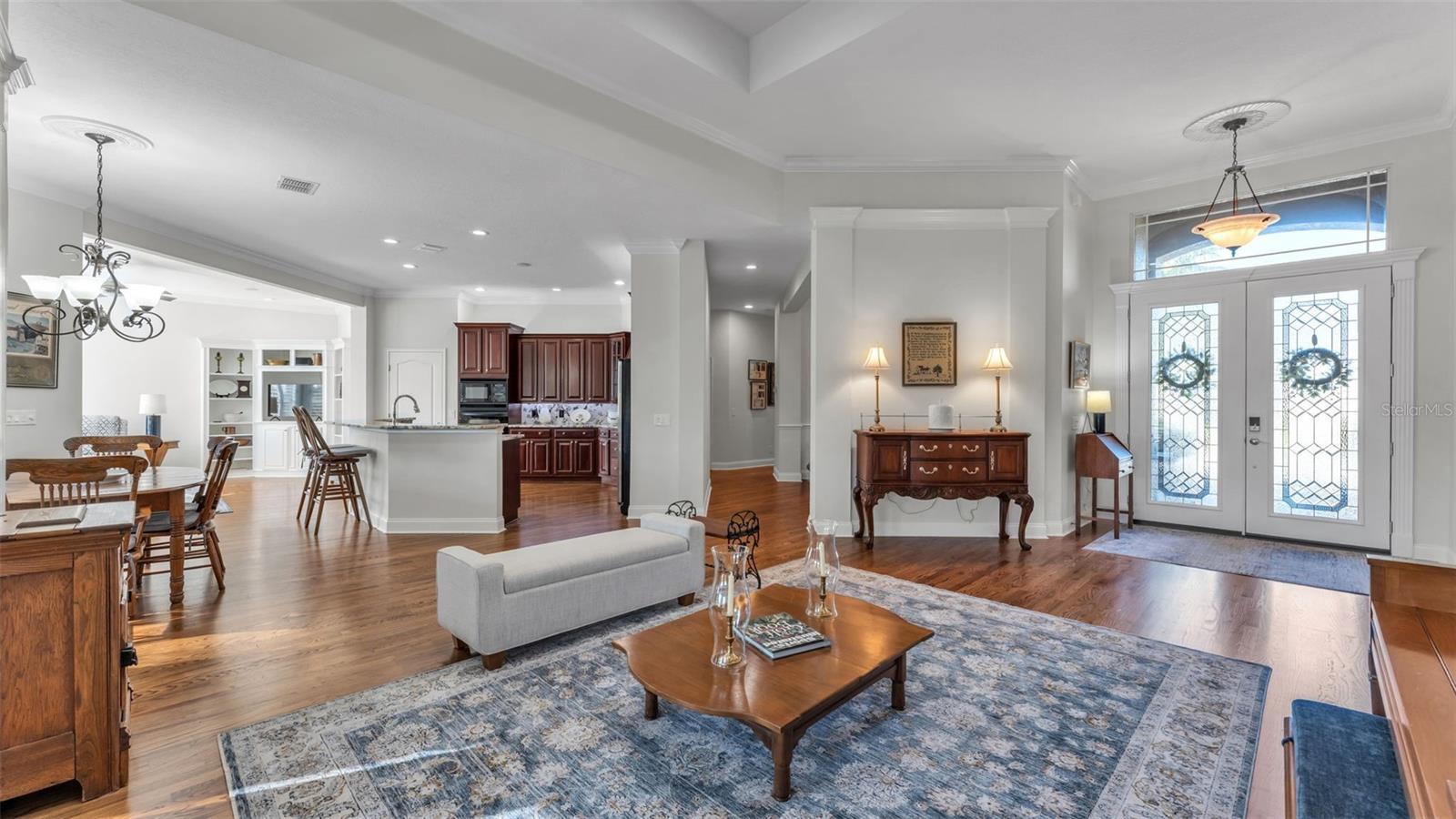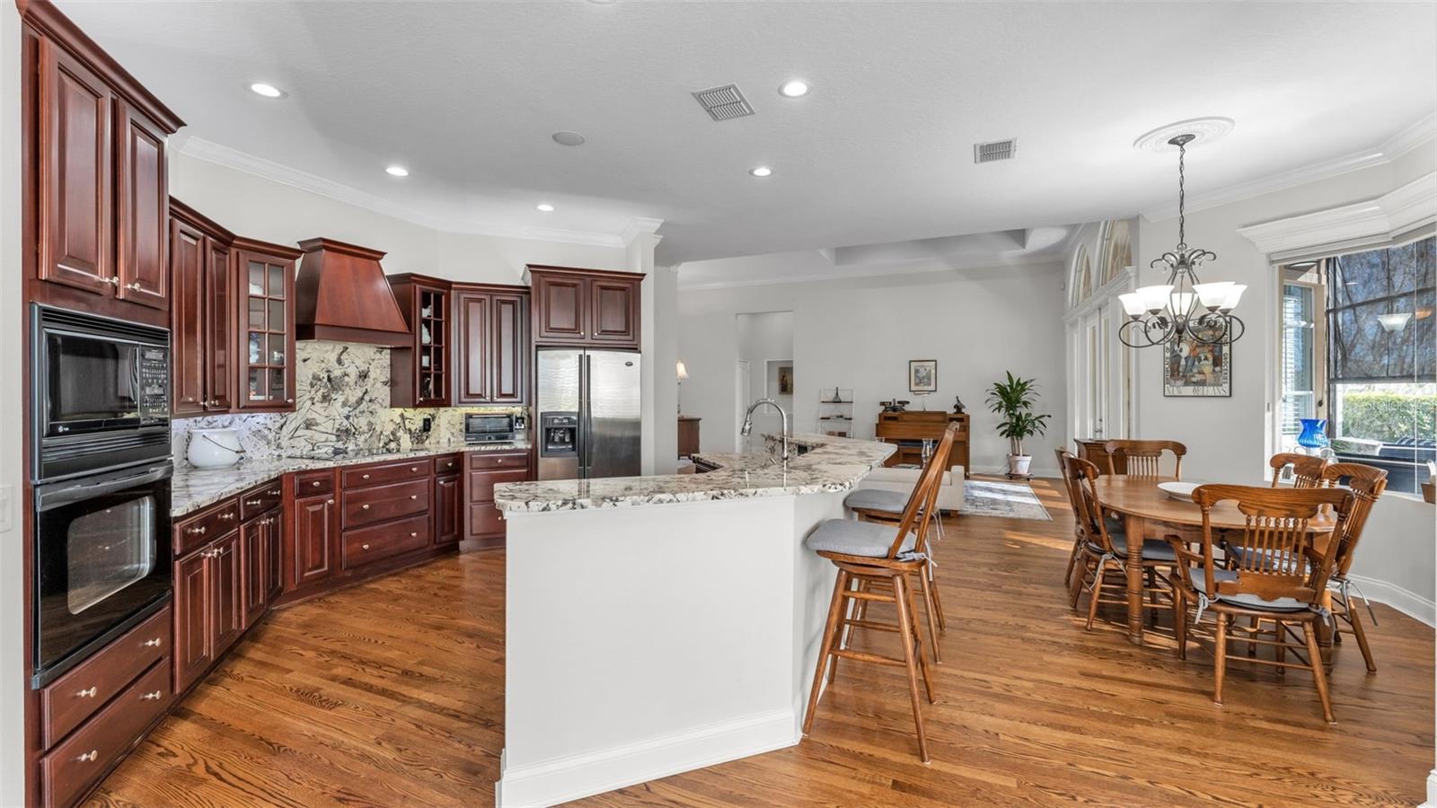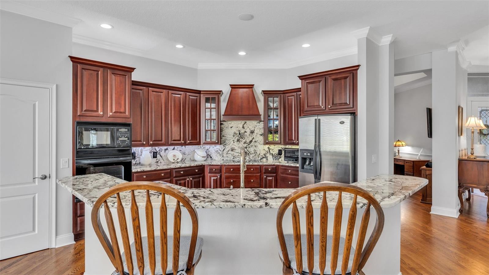 Under contract-accepting backup offers. Set along the fairways of Eaglebrooke Golf & Country Club, this beautifully appointed 3-bedroom, 3-bath residence showcases timeless design, exceptional care, and a premier golf-front setting. Built by Hulbert Homes, an award-winning local builder recognized for superior craftsmanship, the home enjoys a coveted location behind the 24-hour guard gates, with sweeping views of the 8th hole tee box and a true sense of privacy. Impeccably maintained and thoughtfully updated, the property is truly move-in ready. The interior reveals a carefully curated blend of elegance and comfort, highlighted by refinished real hardwood flooring extending through the main living areas and bedrooms. Architectural detailing enhances the space with custom millwork, crown molding, tray ceilings, and shadow box accents, while recent professional interior painting provides a crisp, cohesive finish throughout. Formal living and dining rooms offer refined entertaining spaces, seamlessly complemented by an open-concept kitchen, dinette, and family room designed for everyday living. The kitchen and adjacent wet areas feature granite countertops, upgraded cabinetry, and quality plumbing fixtures throughout the kitchen, bathrooms, and laundry room. Both the primary and guest bathrooms have been updated with tile flooring and refined finishes, with granite countertops enhancing the guest bath. All bedrooms include walk-in closets, highlighted by a custom-designed organization system in the primary suite. The primary suite offers a serene retreat with private access to the screen-enclosed lanai, where peaceful golf course views create an ideal setting for relaxation. A generously sized interior laundry room with upgraded cabinetry and granite countertops adds practicality and convenience. Upstairs, a versatile media room provides flexible space perfect for a home theater, bonus room, or private escape. Comfort and efficiency are enhanced by a well-maintained Trane air-conditioning system, while major exterior and mechanical updates contribute to long-term peace of mind, including a newer roof, updated electrical work, extensive recessed lighting, dimmers, and upgraded switches. Motorized window treatments in the primary bedroom add modern convenience, and French doors enhance the seamless flow between indoor and outdoor living spaces. The screen-enclosed lanai invites year-round enjoyment of Florida’s lifestyle. Additional features include solid wood plantation shutters, a built-in whole-home audio system, updated appliances including a dishwasher and garbage disposal, upgraded door and cabinet hardware, and a tubes-in-the-wall pest defense system. The oversized three-car garage provides ample space for vehicles and golf cart storage and is complemented by a paver driveway and walkways that enhance curb appeal. Residents of Eaglebrooke enjoy access to a beautifully maintained, guard-gated community offering a championship golf course, practice facilities, an elegant clubhouse with dining and social spaces, a resort-style pool, tennis courts, scenic walking paths, and a full calendar of golf and social events. This exceptional home reflects pride of ownership throughout and presents a rare opportunity to enjoy refined living in one of Lakeland’s most sought-after golf communities. Schedule your showing today.