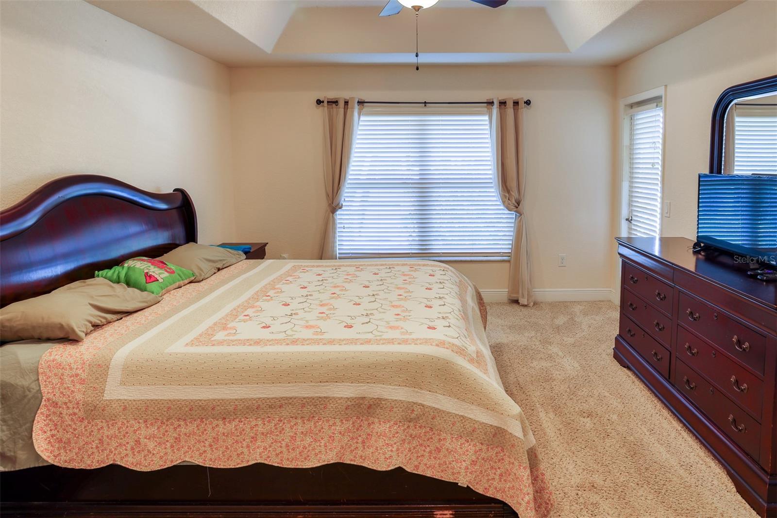- Ceiling Fans(s), In Wall Pest System, Kitchen/Family Room Combo, Primary Bedroom Main Floor, Solid Surface Counters, Solid Wood Cabinets, Split Bedroom, Tray Ceiling(s), Walk-In Closet(s)