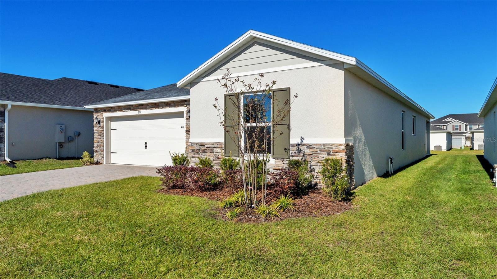 Newly built home offering its first lease opportunity! This well-designed single-story home offers an open floor plan with tile flooring throughout the main living areas and a spacious great room with volume ceilings. The kitchen features a large island, ample cabinet space, granite countertops, and Whirlpool® stainless steel appliances. The primary suite includes a walk-in closet and a private bath with a dual-sink vanity, linen closet, and a walk-in shower with tile surround. A covered back patio provides additional outdoor space for everyday use. The community also offers a pool and dog park for added convenience.