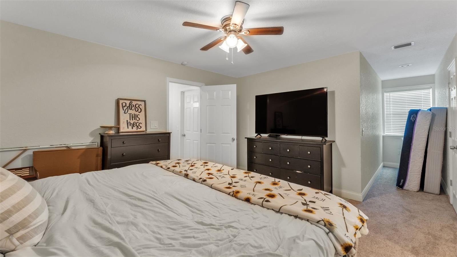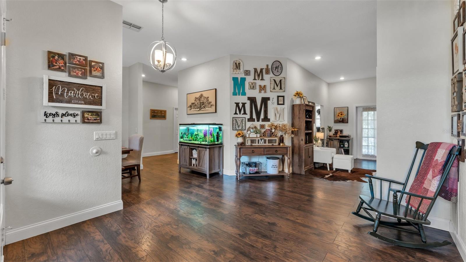 - Ceiling Fans(s), High Ceilings, Kitchen/Family Room Combo, Primary Bedroom Main Floor, Solid Surface Counters, Split Bedroom, Thermostat, Walk-In Closet(s), Window Treatments