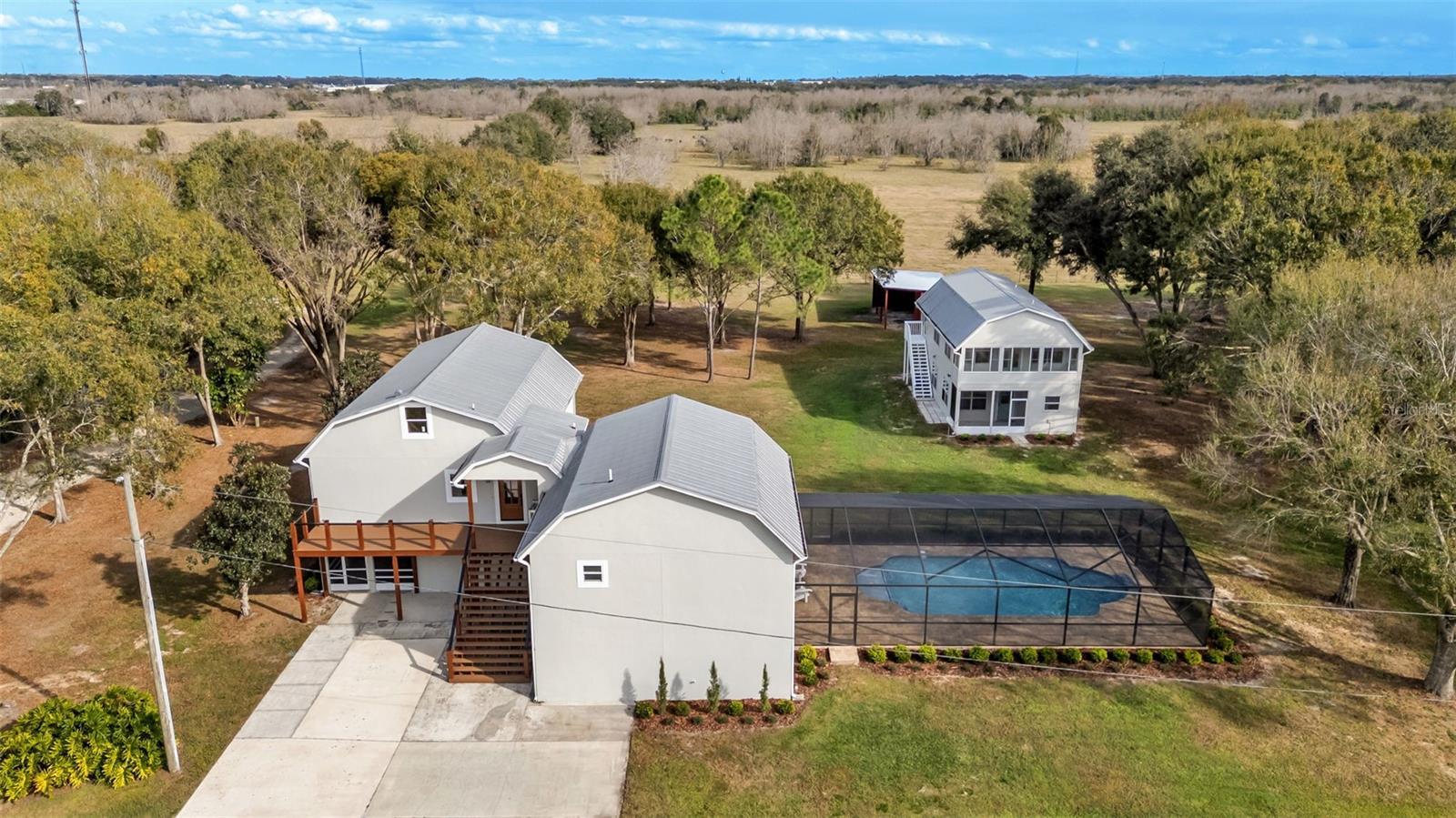 Opportunities like this are nearly extinct. Just minutes from Winter Haven Country Club, this remarkable estate offers 10.98 acres of privacy, natural beauty, and flexibility in one of Winter Haven’s most coveted and tightly held locations—where land, space, and convenience rarely coexist. The 3,800 sq ft main residence has been completely remodeled with a refined, modern vision that blends luxury with everyday livability. Designed for both entertaining and comfortable living, the open-concept layout showcases luxury vinyl plank flooring throughout, expansive living areas, and a beautifully upgraded chef’s kitchen that serves as the heart of the home. With 4 bedrooms and 4 full bathrooms, the residence provides generous space for family and guests alike. Outdoors, a private pool invites relaxation while remaining surrounded by peaceful, natural views. Adding exceptional value and versatility, the property includes a 1,300 sq ft detached guest house featuring 2 bedrooms and 2 bathrooms, along with an upgraded kitchen and bath—ideal for extended family, long-term guests, or a private work-from-home or creative space. The land itself is what truly sets this property apart. The nearly 11-acre setting offers a thoughtful balance of open usable acreage, mature landscaping, and a scenic private pond, creating a sense of separation and tranquility that enhances both privacy and lifestyle. Multiple outbuildings, including a barn/garage and lean-to structure, provide ample room for storage, hobbies, equipment, or future expansion. In a market where acreage is disappearing and privacy is priceless, properties offering this scale of land, level of renovation, and proximity to town are exceptionally rare. This is not just a home—it’s a private retreat, a long-term asset, and an opportunity to own something truly irreplaceable.