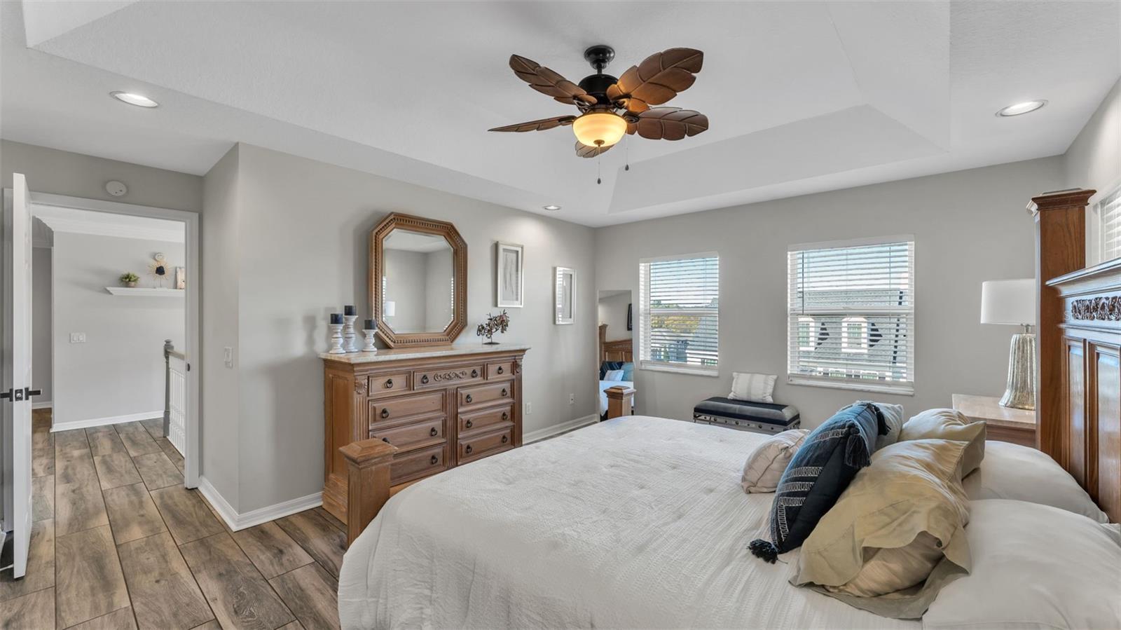 - Ceiling Fans(s), Crown Molding, High Ceilings, Kitchen/Family Room Combo, Living Room/Dining Room Combo, PrimaryBedroom Upstairs, Stone Counters, Thermostat, Tray Ceiling(s), Walk-In Closet(s), Wet Bar
