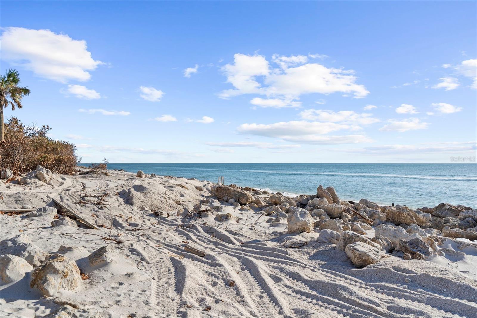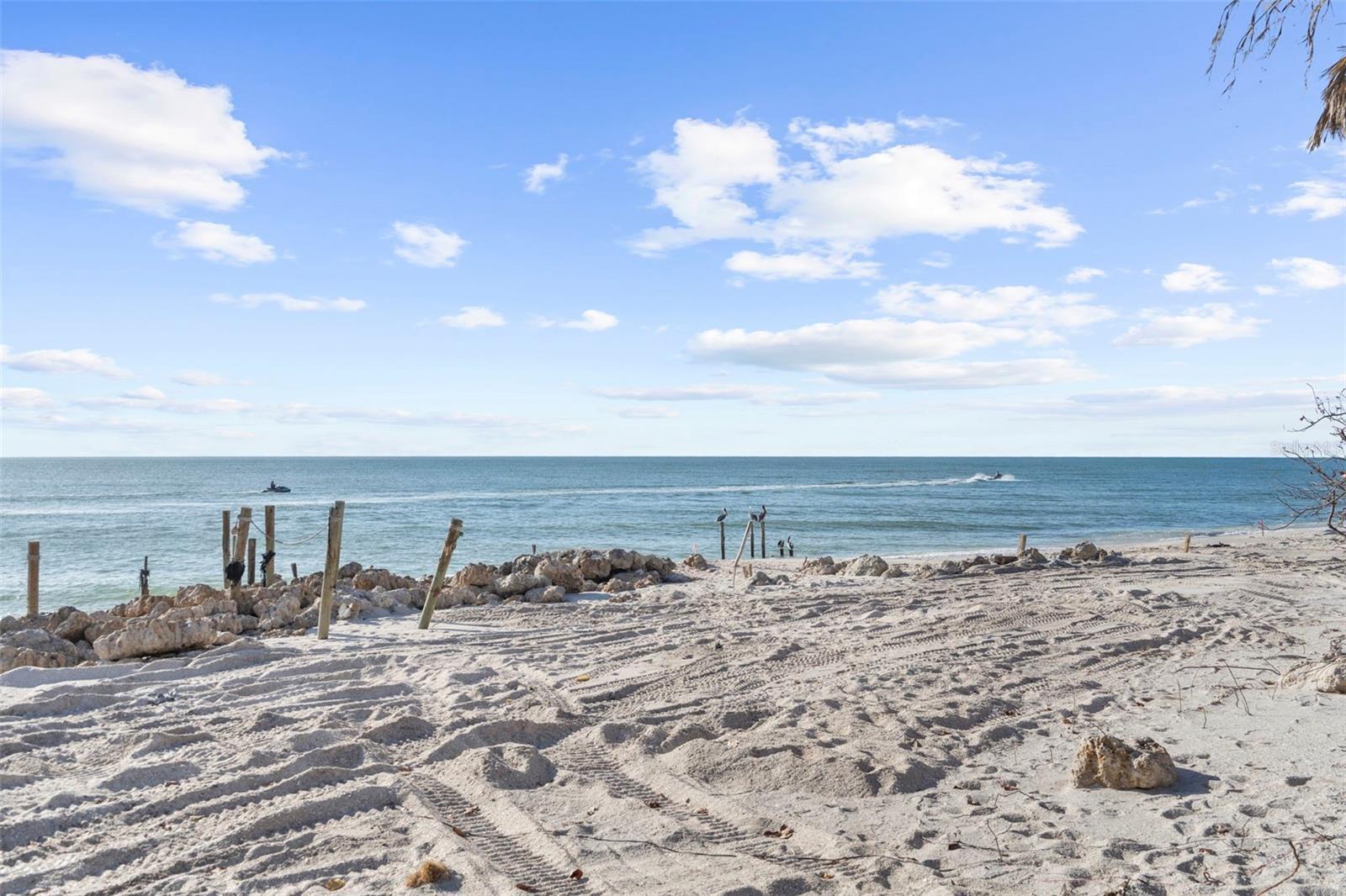 A RARE CASEY KEY OPPORTUNITY — Discover a 4,300+ sq. ft. STORM-RESISTANT waterfront residence that blends privacy, craftsmanship, and breathtaking bay views on one of Florida’s most exclusive barrier islands. This move-in ready estate sits on the serene shores of Little Sarasota Bay, offering a deep-water dock, a steel-roofed covered boat slip, a deep-water wet slip, and a 10-foot private deeded easement to a pristine Gulf beach. Inside, the light-filled Open Concept Living design features 18-foot vaulted Epi wood beam ceilings, custom stonework, and travertine marble floors, all oriented to capture sweeping 180-degree waterfront views overlooking the pool, spill-over spa, and Epi wood deck. The main-floor primary suite enjoys panoramic bay vistas, two large walk-in closets, and a jetted soaking tub, while the two upper-level guest suites each include walk-in closets and open to a charming shared balcony. A fourth bedroom/bonus room provides flexible living options. Additional features include an oversized two-car garage, two driveways with parking for up to 10 vehicles or a motorhome, and a rare 3,500+ sq. ft. climate-controlled lower-level storage space. Situated on a magical stretch of Casey Key with no high-rises, no traffic congestion, and resident-owned beaches, this private island offers an unmatched blend of tranquility and convenience. Residents enjoy warm Gulf breezes, quiet shoreline walks, and golf-cart access to nearby tiki bars, restaurants, grocery store, pharmacy, dog groomer, boutique shopping, and more. Located just west of the historic Blackburn Point Bridge, the property provides excellent proximity to Sarasota and Venice, top-rated schools, fine dining, cultural attractions, and world-class medical facilities. Casey Key is the only barrier island in the region with an expressway connection from Tamiami Trail directly to I-75, ensuring effortless travel to all major international airports and private aviation options within minutes. Recently recognized as the most coveted street address in the nation, Casey Key offers a truly unparalleled coastal lifestyle.
