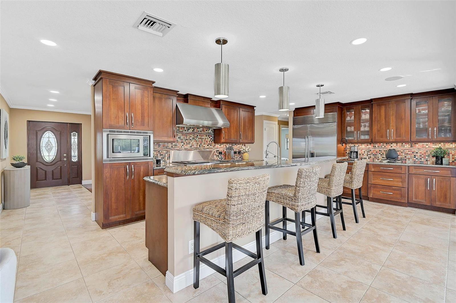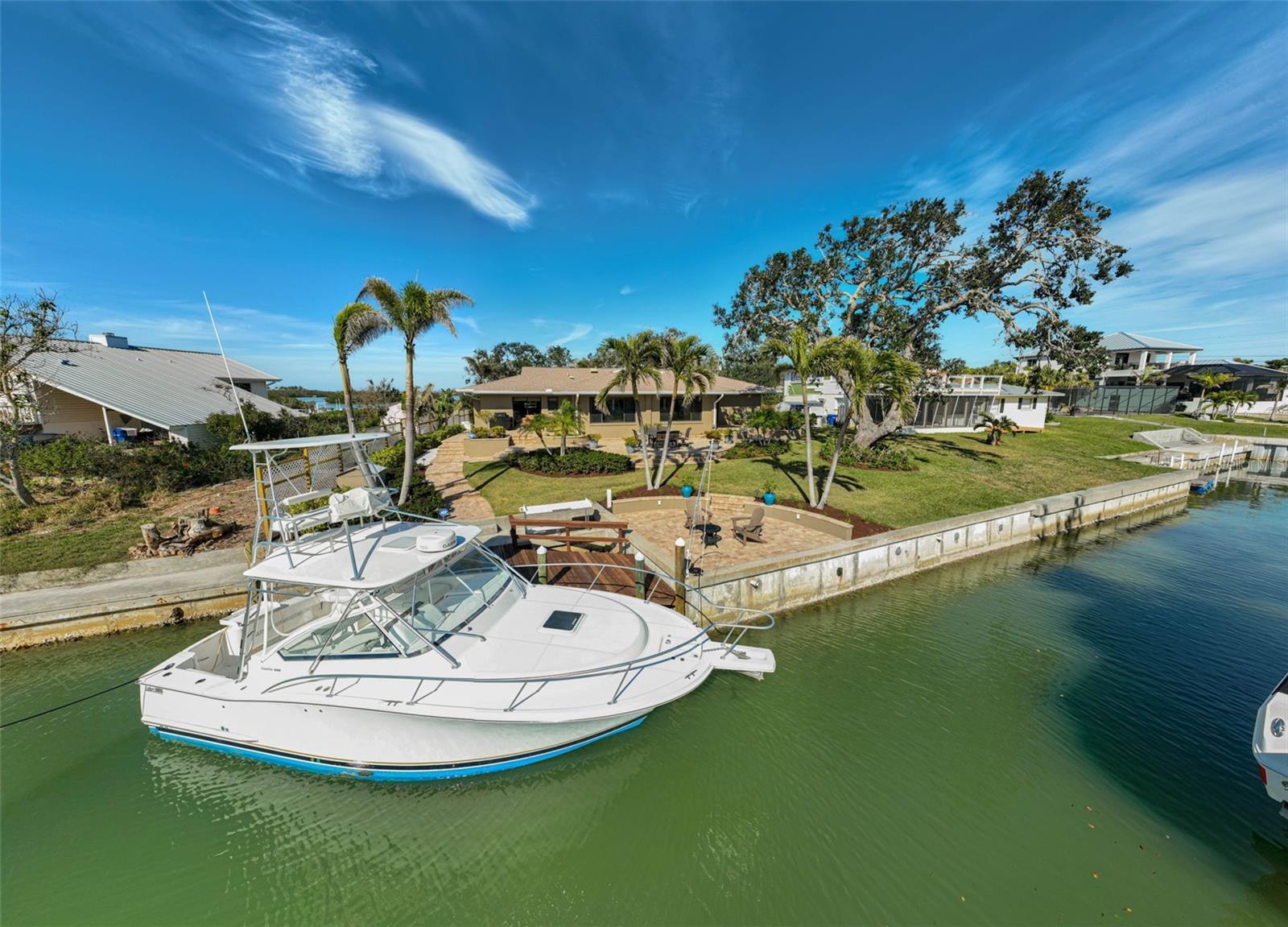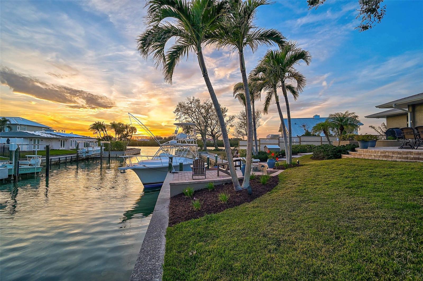 The PERFECT boating lifestyle set-up! Well-built home that sits high and dry yet close to the Jetties and Open Water! No flooding or hurricane damage. Perfectly nestled between the culturally rich Sarasota and the quaint charm of Venice, this home is your gateway to the Nokomis, Siesta Key, and Venice beaches. Here, life unfolds in a symphony of sun, sand, and sea! The No. 1 rated Pine View School is nearby. Indeed, you may indulge in every hobby you can dream of. Traverse the Legacy Biking Trail, unwind with a round of trap, skeet or sporting clays at Knights Trail Park, or get your equine fix at Fox Lea Farm. Dine and shop by golf cart along the waterfront, and embrace the home’s signature activities: sunset gazing, boating, and fishing. Step out to your boat in the back yard and be on the Gulf of America in minutes. For those who crave an unmatched waterfront existence, there's simply no comparison. This modern abode perches regally on a lot crafted for outdoor enjoyment, with professional landscaping, and terraced paver areas that invite you to bask in the glory of Florida Gulf Coast sunsets. Elegant landscape lighting casts a glow on the three mature oak trees, showcasing the home's natural allure. Step into a chef's kitchen that's a culinary dreamland, boasting a Wolf gourmet range, a Sub-Zero refrigerator-freezer, and a Bosch dishwasher. Custom-built, solid cherry cabinets with soft-close features and a walk-in butler’s pantry provide endless storage. The heart of this home is the 12-foot granite island, complete with an eat-in bar, overlooking two chef-curated vegetable and herb gardens and the soothing intracoastal waters. Large windows and sliders bathe the space in natural light, blurring the lines between indoors and out. A true split floor plan keeps the master en-suite distinct from two additional bedrooms, each boasting custom-built walk-in closets. The oversized garage, freshly coated in epoxy, is a dream for organization and storage, ideally suited for your fishing and boating gear. The dock stands ready for your catch of the day, equipped with a custom fillet table, fresh water, dock box storage, and dockside power. Don't miss your chance to experience this truly exceptional home!