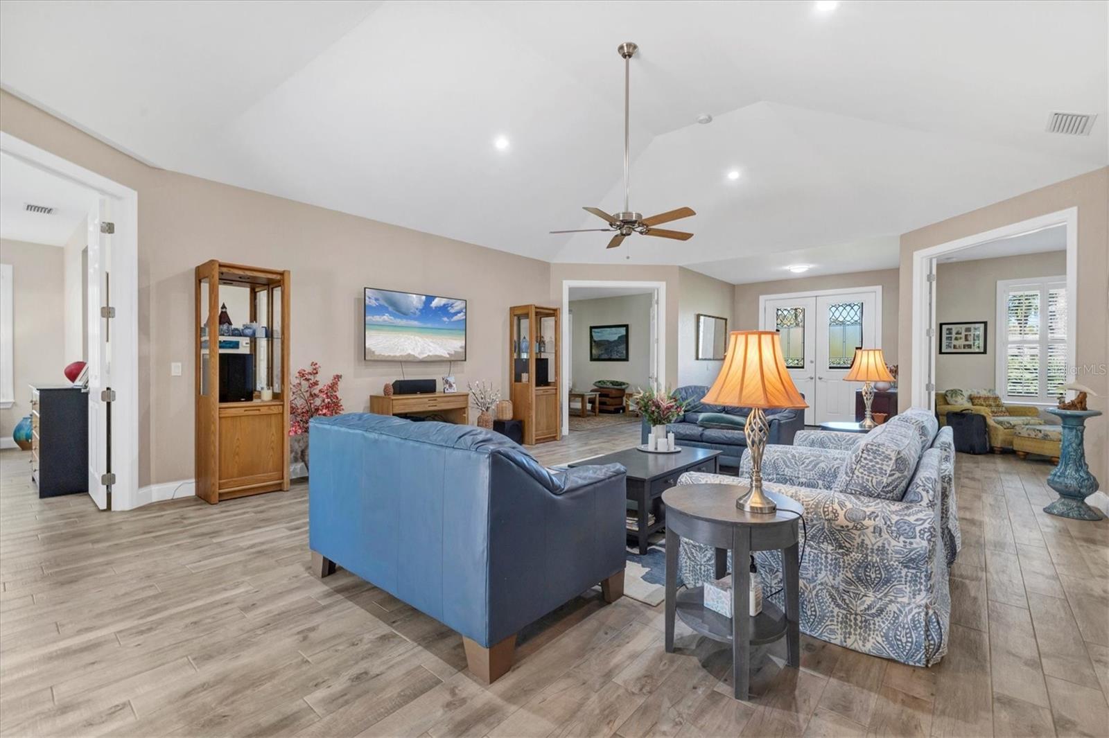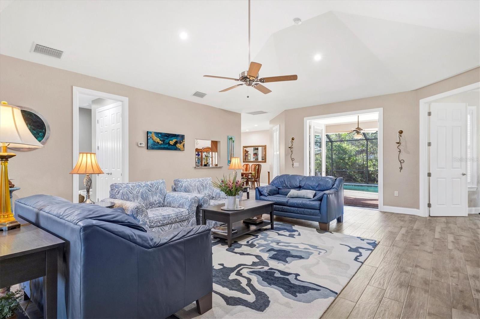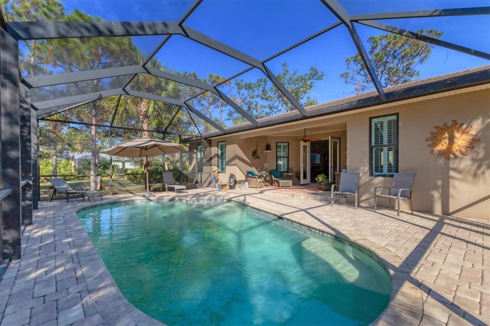 Make sure you see this CUSTOM home located in old Englewood. A recent home permitted and built to the 2018 Florida-Dade County Building Code and completed in October of 2019. The wooded lot is 210 ft. X 218 ft. (slightly over 1 acre) with live oaks, longleaf pines, cabbage palms and saw palmettos. The home is 3 bedroom, 2 bath with 2448 sq. ft. of living area. Custom features include concrete tile hip roof, PGT storm rated and insulated windows, sprayed-on foam insulation, Trane heat pump HVAC with 4 return air ducts, 9.5 foot ceilings, porcelain tile floors, Woodcraft kitchen cabinets, quartz countertops, deep sinks in kitchen and laundry, walk-in shower in master, Kohler cast iron tub in guest bath, Kohler hi-boy toilets and lavatories, Moen fixtures, makeup vanity with stool in master bath, walk-in bedroom closets, wooden window shutters, spacious living room with 14 foot ceiling, stereo system wired for great room and lanai, 2 car garage with work area, workbench and fans in garage, attic decked for storage. Also on the property is a custom PebbleTech gunnite pool 28ft. X 14ft. X 6ft. with AutoPilot saltwater chlorine generator, Hayward variable speed pool pump, screened pool cage, and concrete pavers. Additionally there is a high roof pole barn with concrete slab and LED lights for boat and RV storage. Home was built and is owned by a Florida realtor.