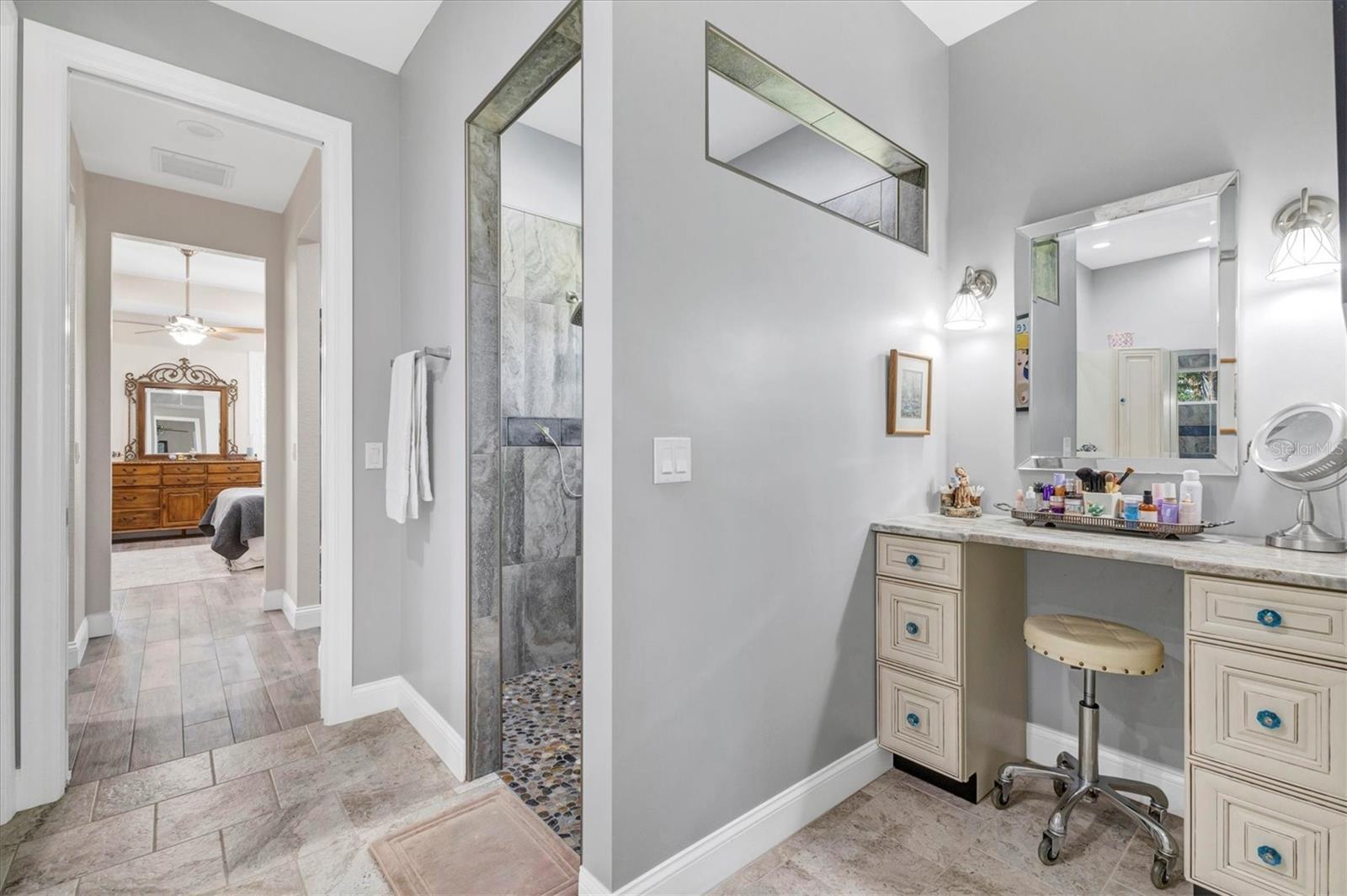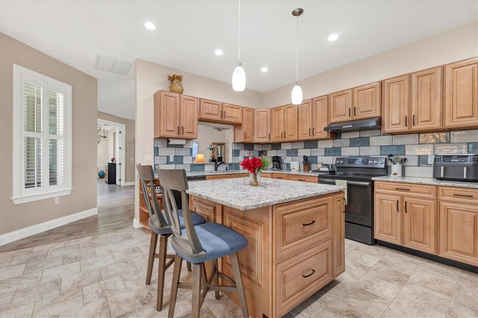 - Cathedral Ceiling(s), Ceiling Fans(s), Eat-in Kitchen, High Ceilings, Open Floorplan, Primary Bedroom Main Floor, Stone Counters, Walk-In Closet(s), Window Treatments