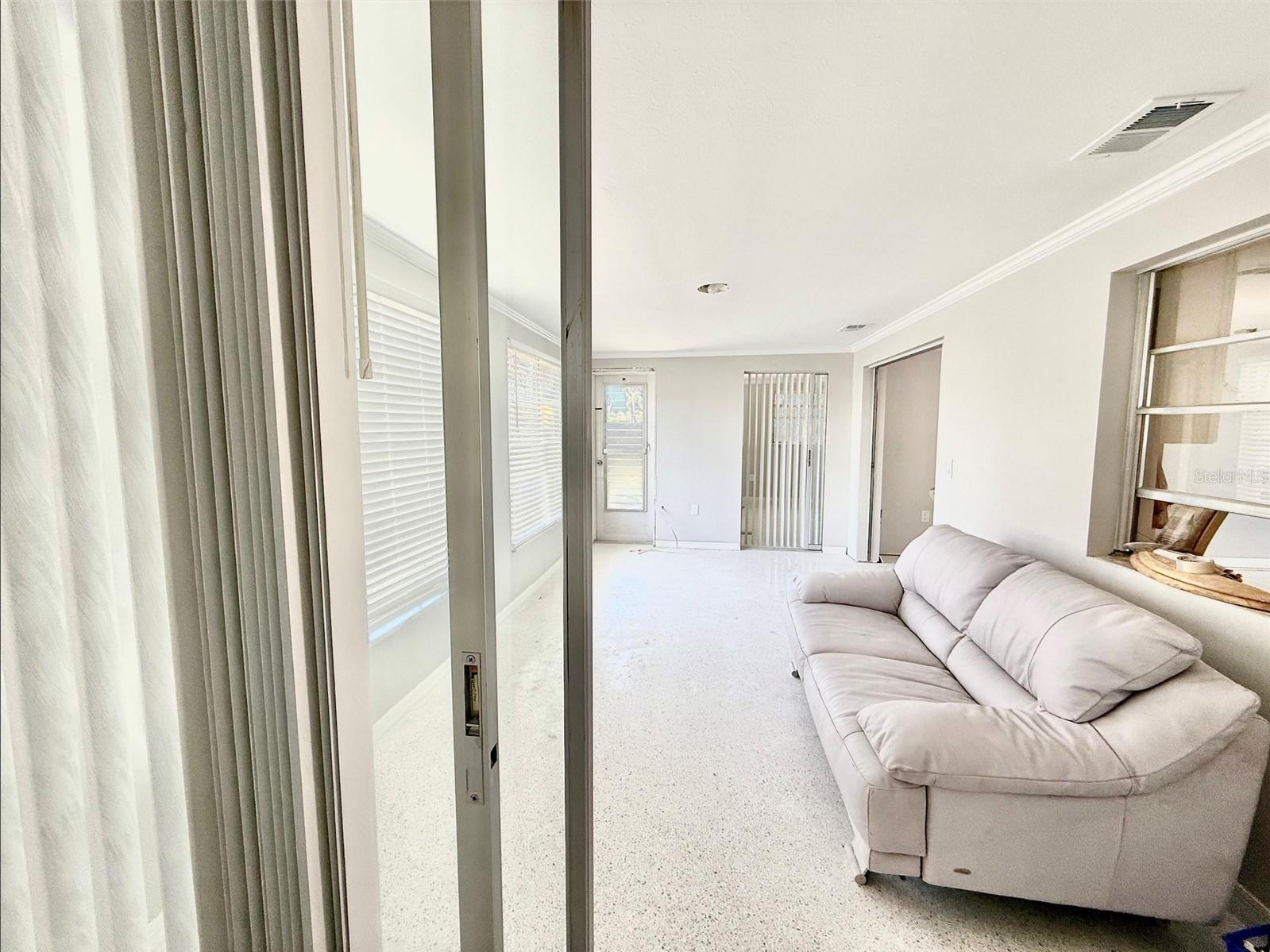Prime Location! Coastal Charm with Privacy & Endless Potential! Just one block from the glistening shoreline and a quick 3-minute drive to Englewood Public Beach, this charming 2-bedroom, 2-bathroom, plus bonus room, 1-car garage home is a true retreat – offering both prime location and peaceful seclusion. Nestled on a 0.23-acre lot with no neighbors on the left, you’ll enjoy ultimate privacy—your own slice of paradise. The home is currently undergoing remodeling, allowing you to add your personal touch and bring your vision to life! Step inside to a spacious living room, offering plenty of room for relaxation and entertaining. The primary bedroom features ensuite bathroom with a standing shower, and walk-in closet, while also providing direct access to the spacious and bright Florida sunroom - a perfect spot to unwind and take in breathtaking sunsets. An additional bonus room serves as a versatile third bedroom, office, or den. The large backyard offers ample space for a future swimming pool or patio, allowing you to craft your dream outdoor oasis. Additional highlights include a brand-new roof installed in 2023, terrazzo flooring throughout, a fresh interior paint update, and an extended paved driveway. Plus, enjoy the convenience of city water and no HOA or CDD fees! Perfectly located just moments from vibrant restaurants, shopping, and coastal entertainment, this home blends beachside living with peaceful seclusion. Whether you’re looking for a permanent retreat or an investment opportunity, this property is ready for your vision!