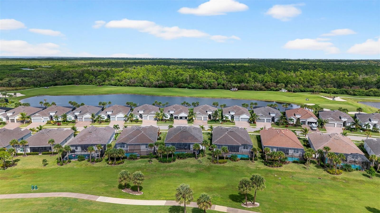 Welcome to a home that captures Florida living the way it’s meant to be. Set along the scenic 16th fairway of the Gordon Lewis–designed championship golf course, this 2023-built residence in Heritage Landing Golf & Country Club offers more than a place to live—it offers a lifestyle. From the moment you walk up to the screened entry, you’ll feel the quality and care in every detail. Inside, the open layout, 10-foot ceilings, 8-foot doors, crown molding, and plank tile flooring create a bright, inviting space. Impact windows and doors add peace of mind, while exterior lighting gives the home a warm evening glow. The living room is the heart of the home, featuring a beautiful stone accent wall with a fireplace. But the real showstopper is the view—your private pool framed by sweeping golf course scenery. It’s the kind of backdrop that makes everyday moments feel special. The outdoor living space is truly exceptional. With a southern view, the lanai enjoys gentle morning sun and bright daylight across the pool deck throughout the day. Sip coffee at sunrise, relax by the heated saltwater pool and spa, or lower the remote-controlled Storm Smart screen when you want a little extra shade. Nearly 1,000 square feet of screened outdoor living, sealed pavers, and plenty of room for dining and lounging make this home perfect for effortless indoor-outdoor living. The kitchen is ideal for anyone who loves to cook or entertain, with a large island, granite countertops, abundant cabinetry, a walk-in pantry, and a breakfast nook overlooking the pool. The primary suite feels like a private retreat, complete with lanai access for a quiet evening swim. The ensuite bath includes dual granite vanities, a no-step shower, and a spacious walk-in closet ready for all your golf and pool gear. Three comfortable guest bedrooms make it easy to imagine family and friends gathering here and creating memories. Even the laundry room is thoughtfully designed with a utility sink, cabinetry, and a maintenance closet. This home also includes a deeded Golf Package, giving you full access to the championship course and the vibrant golf lifestyle Heritage Landing is known for. Living in Heritage Landing means enjoying resort-style amenities every day—unlimited golf, a putting green, driving range, six Har-Tru tennis courts, six pickleball courts, bocce ball, a resort-style pool with beach entry and lap lanes, satellite pools, a full-service spa and sauna, on-site dining, a tiki bar, and a 24/7 fitness center. The clubhouse offers indoor/outdoor dining and activity rooms, plus an activities director to keep the community buzzing. Beyond the gates, Punta Gorda offers a charming small-town feel with boating, fishing, waterfront adventures, and the always-popular Fisherman’s Village for dining and shopping. Historic downtown is pedestrian- and bike-friendly, with scenic pathways along the Peace River. Punta Gorda Airport is just 10 minutes away, and Fort Myers is a quick 30-minute drive. This home blends luxury, comfort, sunshine, and a true sense of place. It’s ready to welcome you into the lifestyle you’ve been dreaming about.