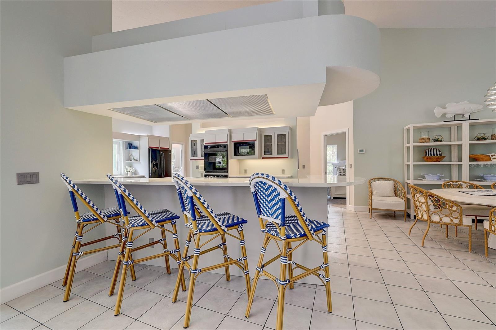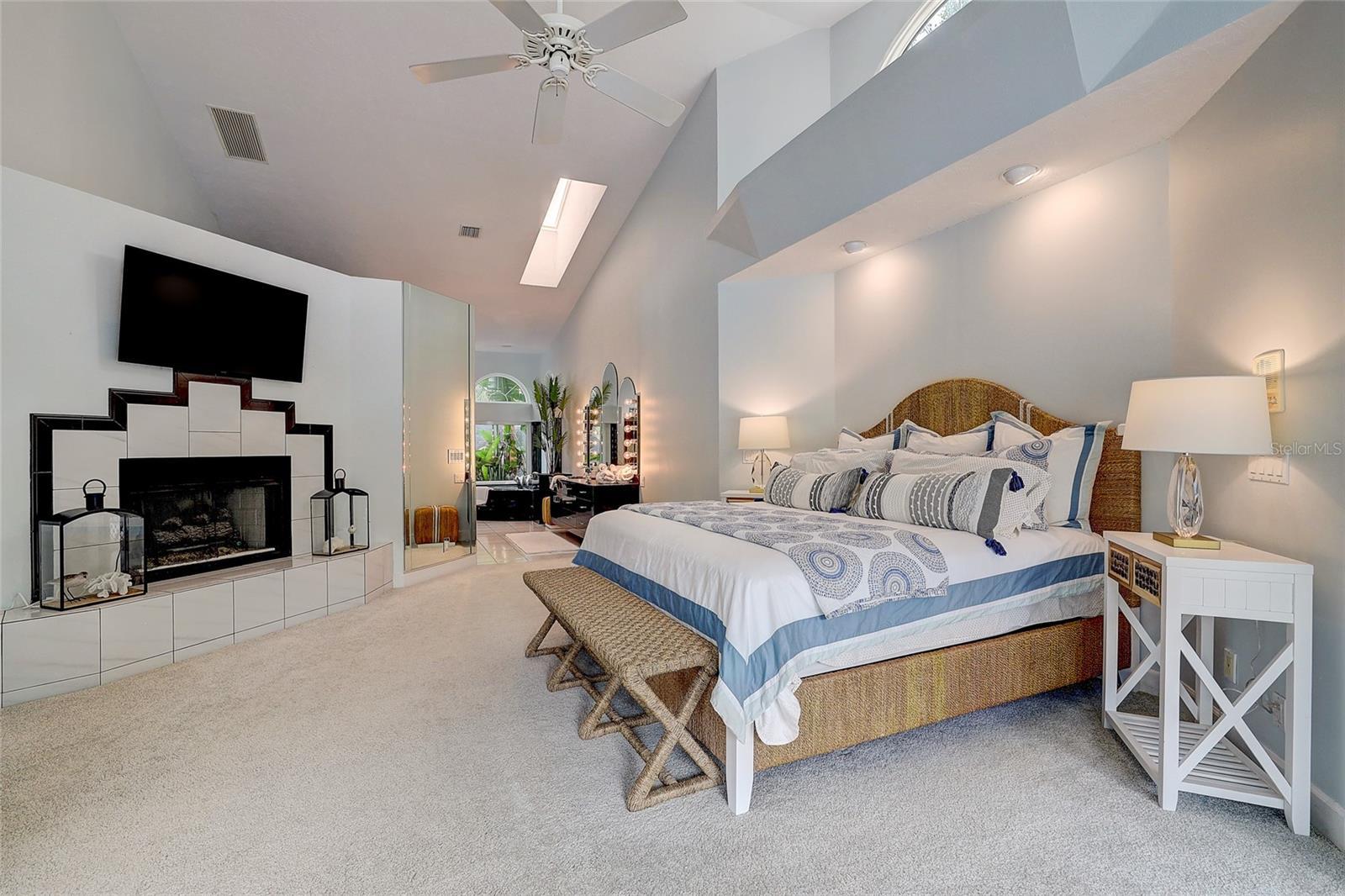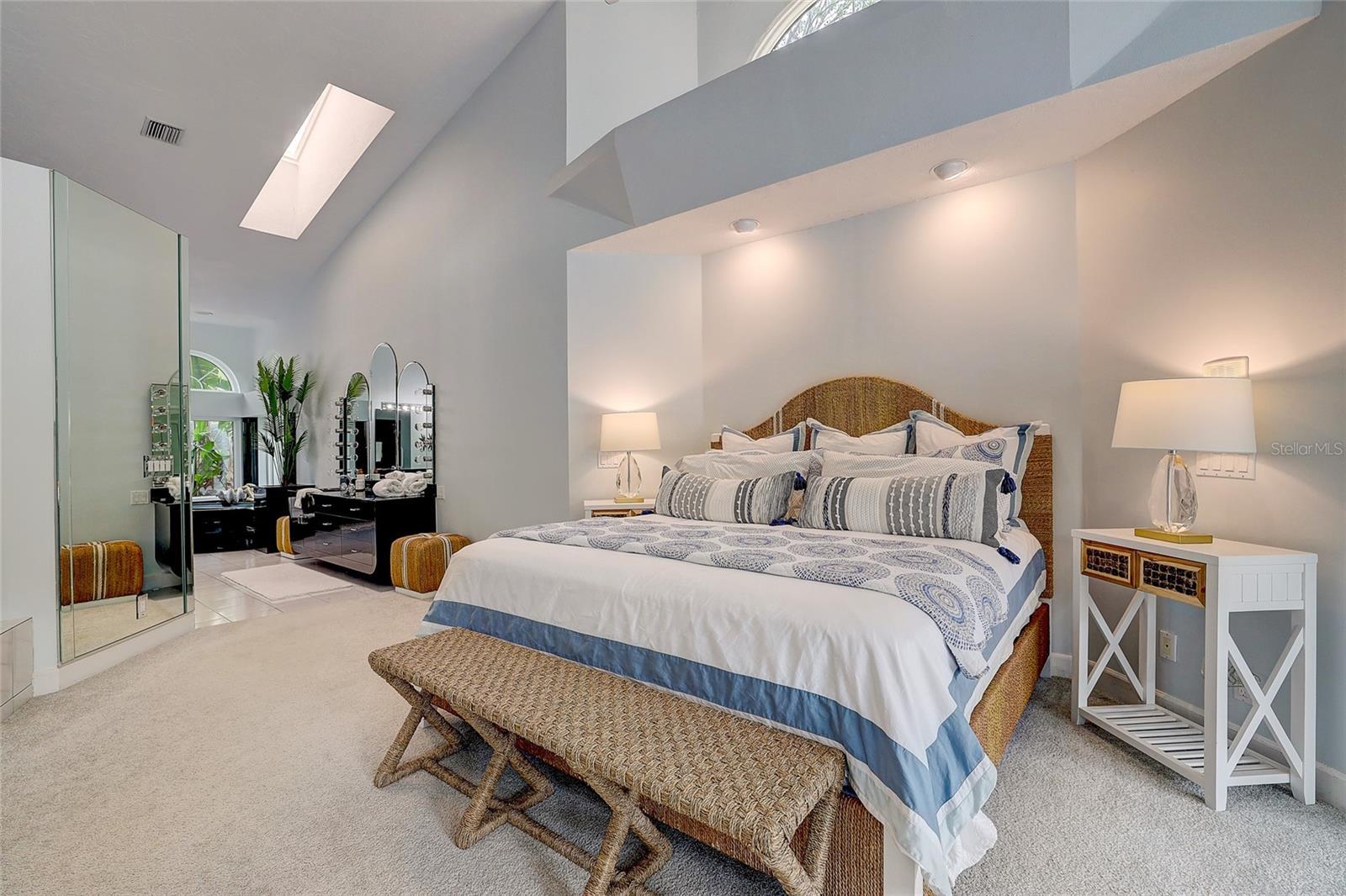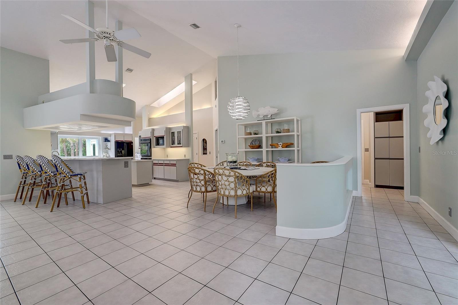 - Cathedral Ceiling(s), Ceiling Fans(s), Central Vaccum, Eat-in Kitchen, High Ceilings, Kitchen/Family Room Combo, L Dining, Open Floorplan, Primary Bedroom Main Floor, Solid Surface Counters, Split Bedroom, Thermostat, Vaulted Ceiling(s), Walk-In Closet(s)