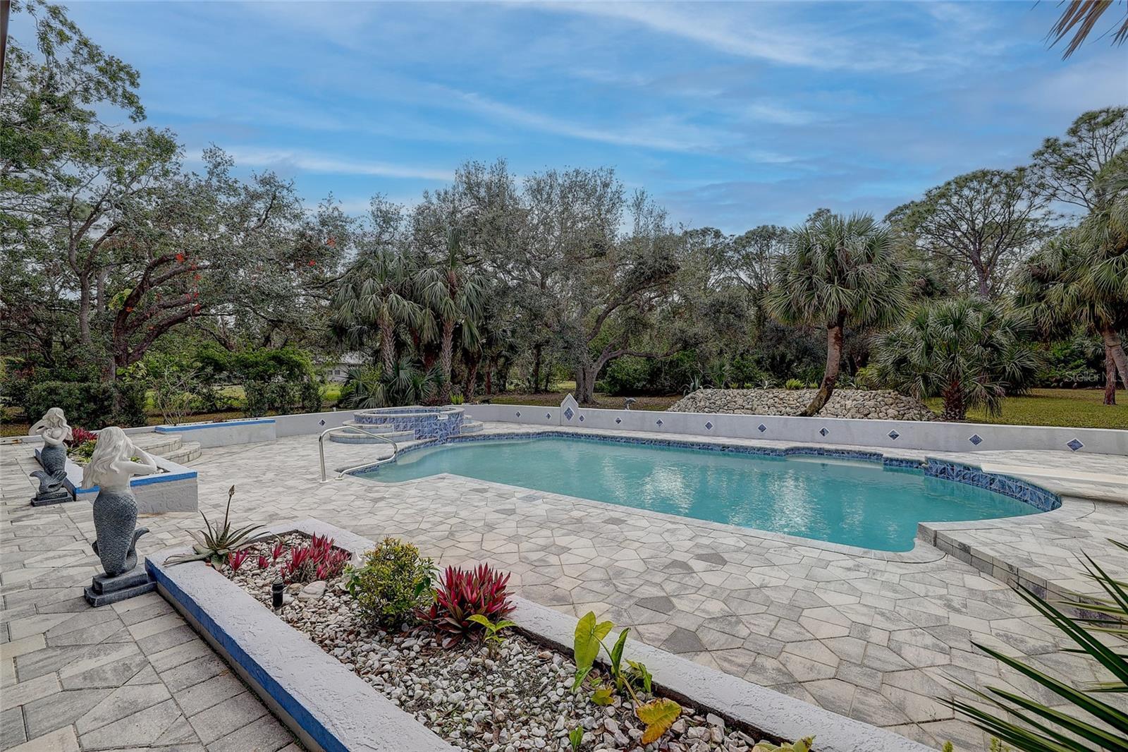 Experience Unmatched Luxury on 5 Serene Acres in Venice, Florida. Welcome to your private oasis—an exquisitely renovated estate offering the perfect blend of elegance, comfort, and space. Situated on 5 lush acres in beautiful Venice, FL, this 4-bedroom, 5-bathroom residence has been fully updated with a high-end design throughout. Here the main house has three bedrooms, each with private attached baths, and four full bathrooms. The detached guest house offers an additional bedroom and bathroom. Each spacious bedroom in this home offers its own en-suite bath, creating a true retreat for family and guests alike. Step inside to discover a light-filled, open-concept layout featuring soaring ceilings and loads of natural light. The chefs kitchen has endless countertops with brand new quartz stone surface, ample cabinetry and opens up into the massive great room. This oversized great room has cathedral ceilings, stacked stone and marble fireplace and a large entertaining area. The primary bedroom is a true retreat with vaulted ceilings, large walk-in closet, soaker tub and double vanity. There is an oversized glass door leading to the pool area. Here you will find true relaxation morning or night! Outdoors, enjoy Florida living at its finest. The expansive grounds are beautifully landscaped for privacy and tranquility, while the resort-style pool and spa provide a serene setting for relaxation or entertaining. Outside you have covered lanai, outdoor kitchen area, in-ground salt water pool with raised hot tub featuring a cantilever warerdall. And an expansive decorative paver area for hosting your friends and family. Whether you’re sipping coffee on the patio or hosting under the stars, this estate delivers the luxurious lifestyle you’ve been dreaming of—just minutes from beaches, golf, and downtown Venice. Horses and other livestock are permitted at this location. In the past three years this home has a new 30 year roof, impact windows and sliding doors, garage doors, three zones of new HVAC, and a completely rebuilt pool and spa. The list of upgrades goes on and on. Call today for your comprehensive list of upgrades or to schedule a showing today!