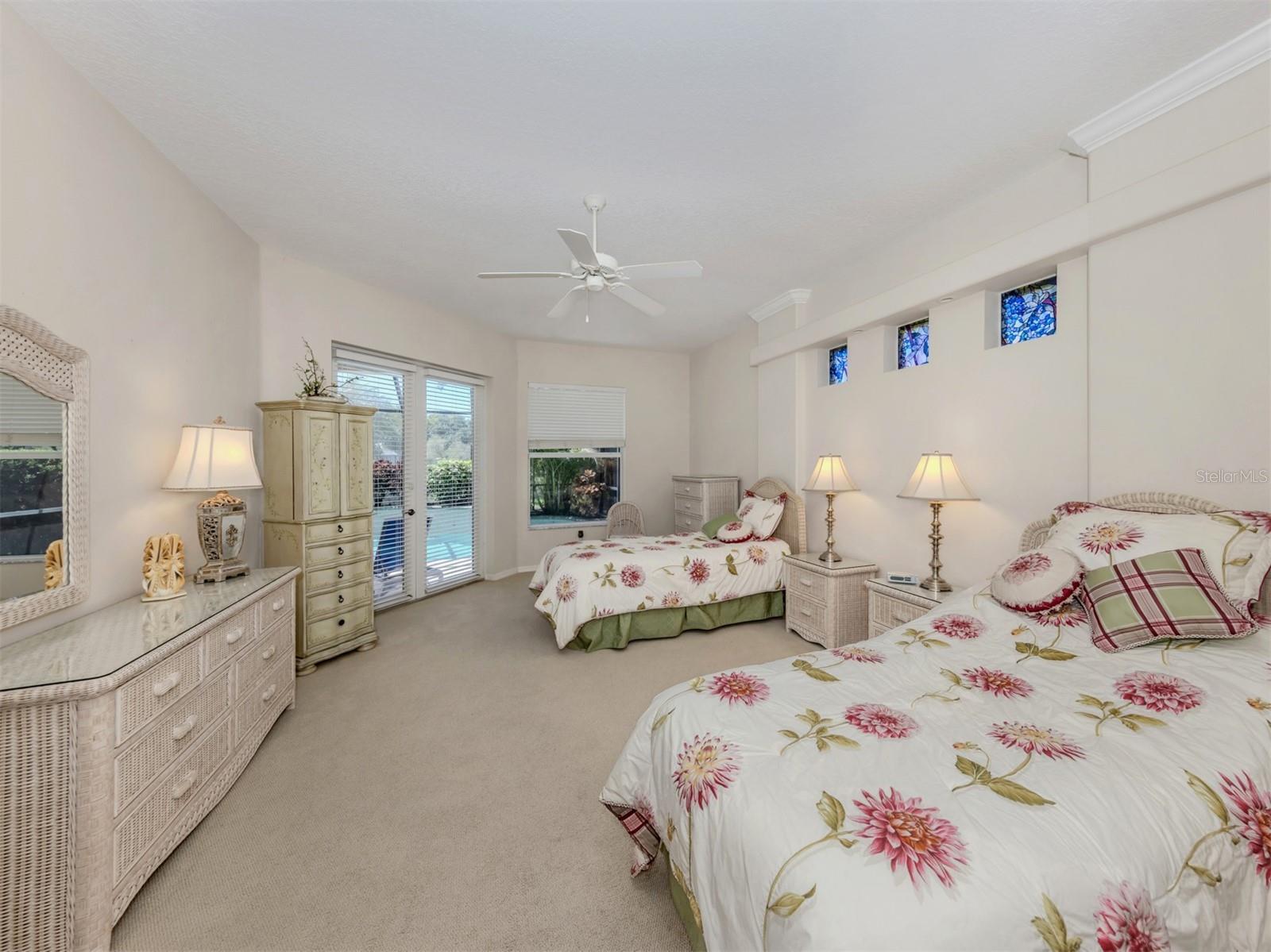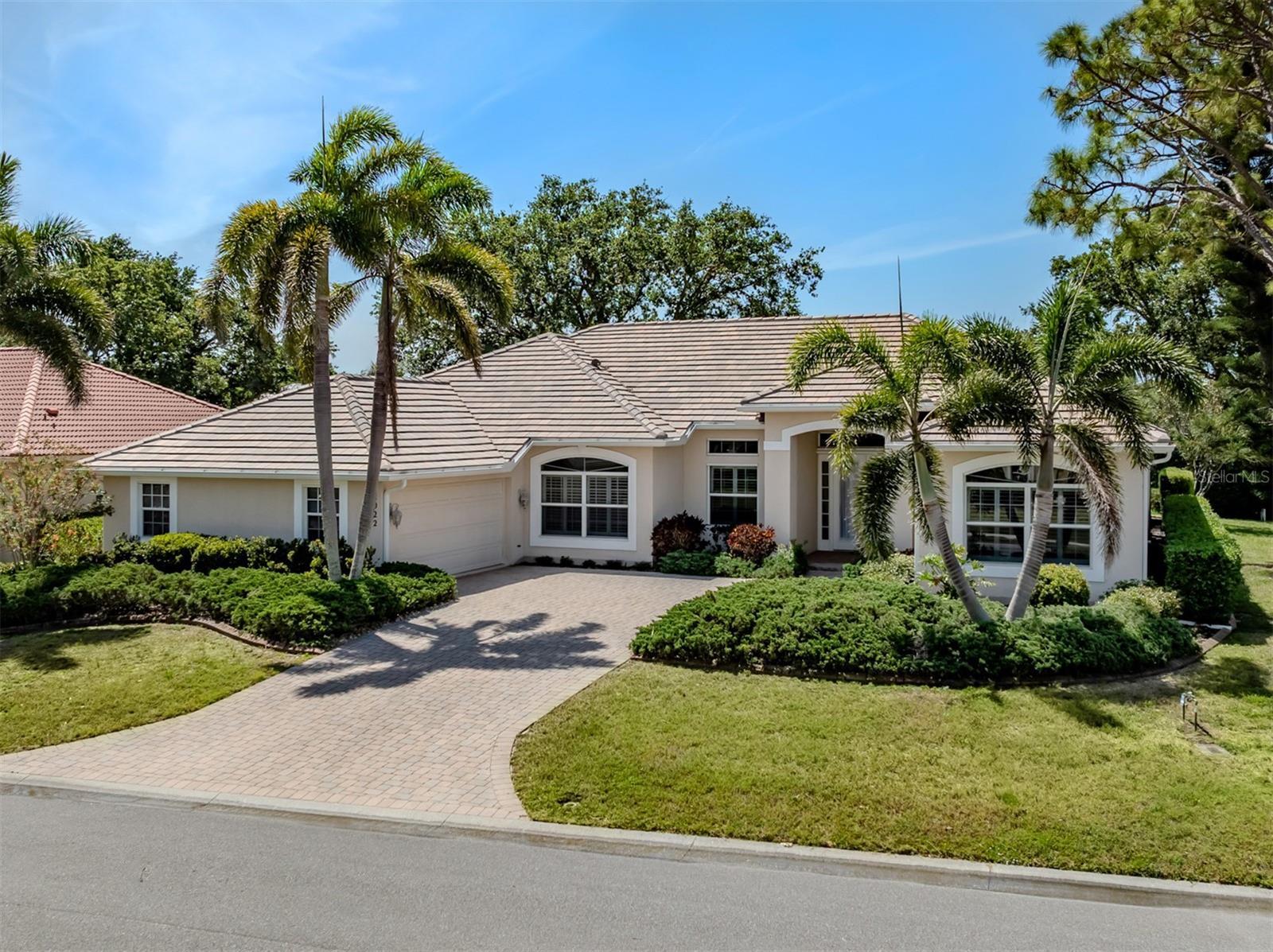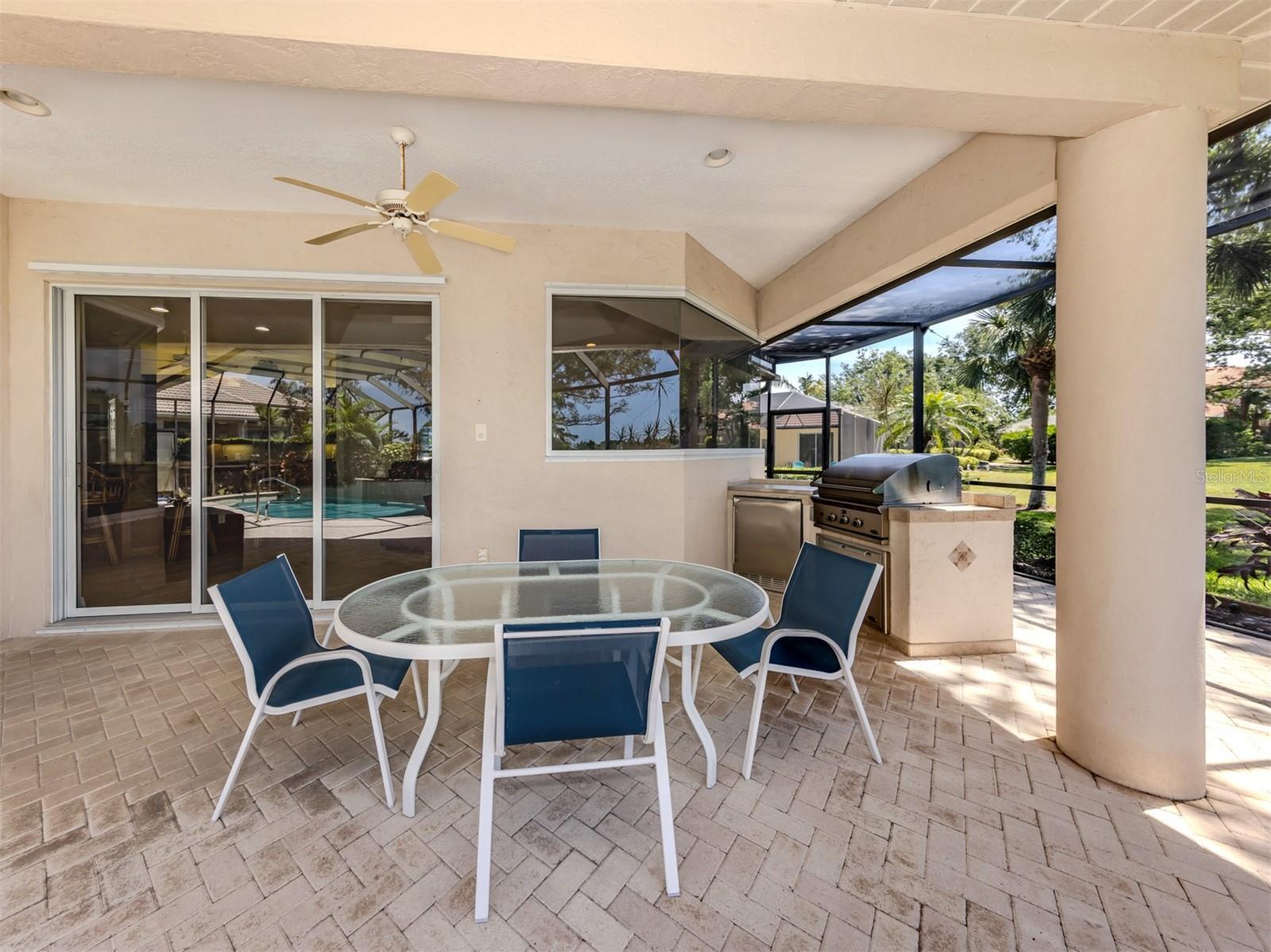 Experience luxury living in this beautiful custom home, positioned with serene views down the 11th fairway and a peaceful lake. Boasting spacious bedrooms, a private study, versatile bonus room and a split floor plan ensuring privacy, this residence offers comfort and flexibility. Notable features include volume and tray ceilings, crown molding, and a new roof in 2024. The well-designed kitchen is a chef's dream, featuring maple cabinetry, granite countertops, walk-in pantry, built-in desk and breakfast bar. It opens seamlessly to the breakfast nook with its aquarium windows and a welcoming family room, highlighted by sliding glass doors that lead out to the lanai. For formal occasions, enjoy the elegant dining room and living room with slider access to the lanai. Entertain effortlessly outdoors with a sparkling pool and spa, complemented by a fully equipped outdoor kitchen. The primary suite is set apart behind French doors and offers direct access to the lanai. Its luxurious bath includes a Roman shower, dual vanities, a garden tub and French doors opening to an attached bonus room. The driveway and lanai deck are beautifully finished with pavers for added curb appeal. In the gated community of Calusa Lakes, this home offers access to tennis courts, social activities, and is just minutes from the beach. Golf membership is optional, adding flexibility to your lifestyle.