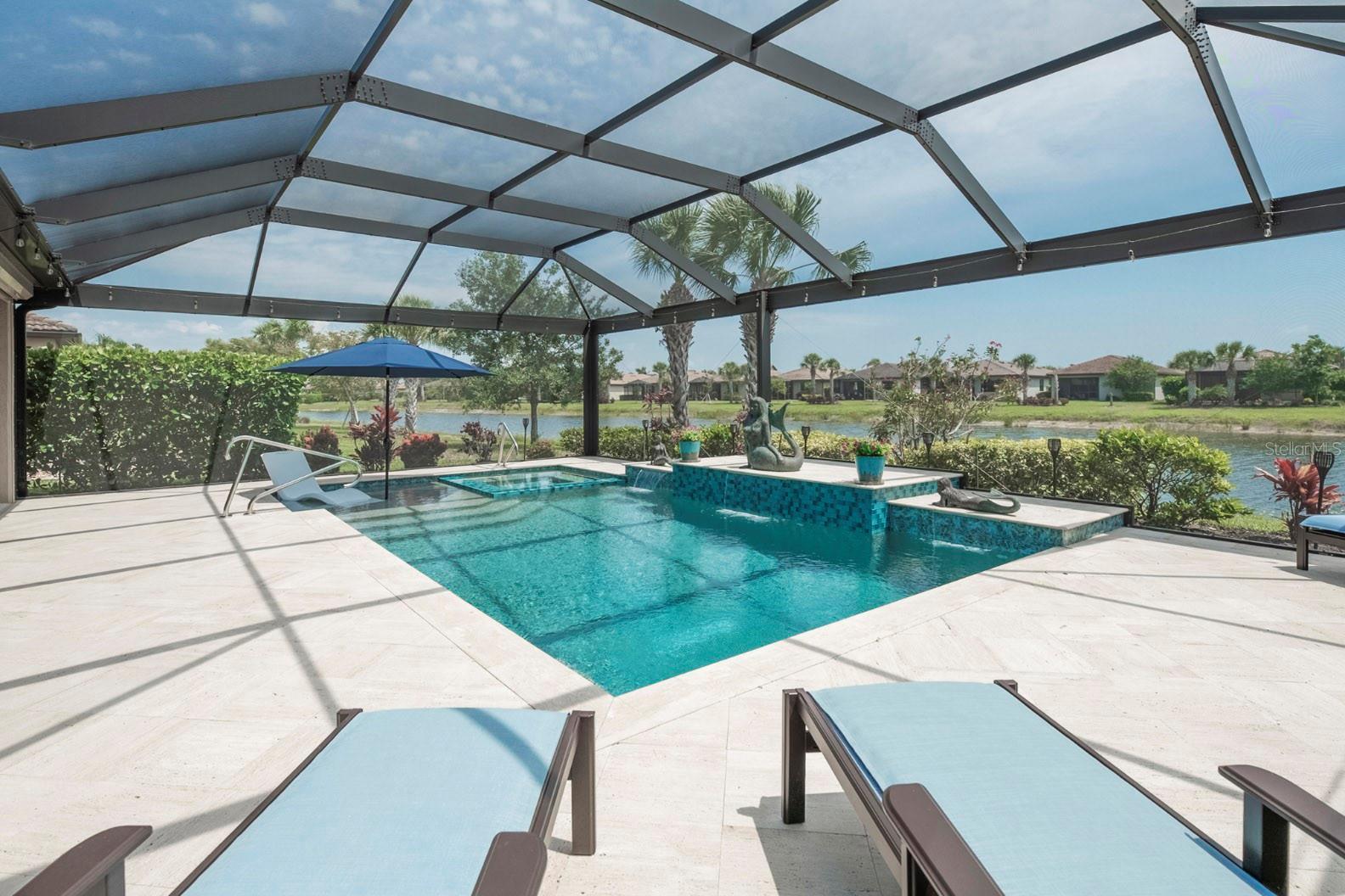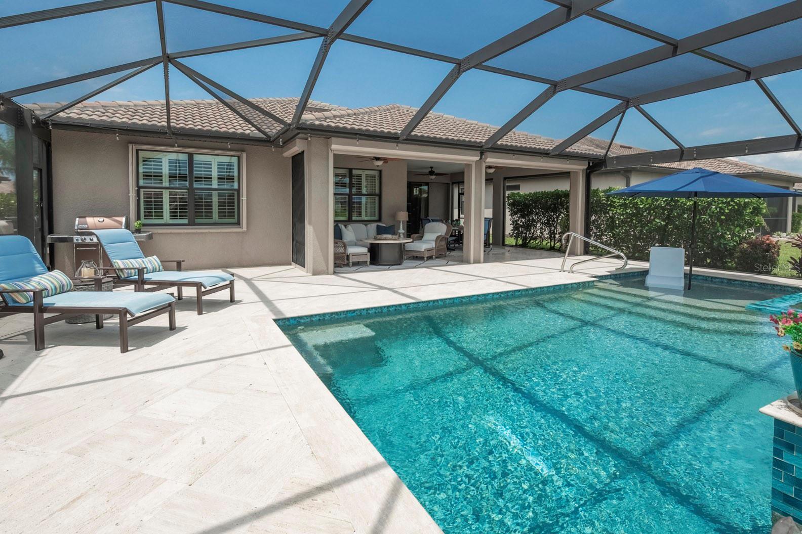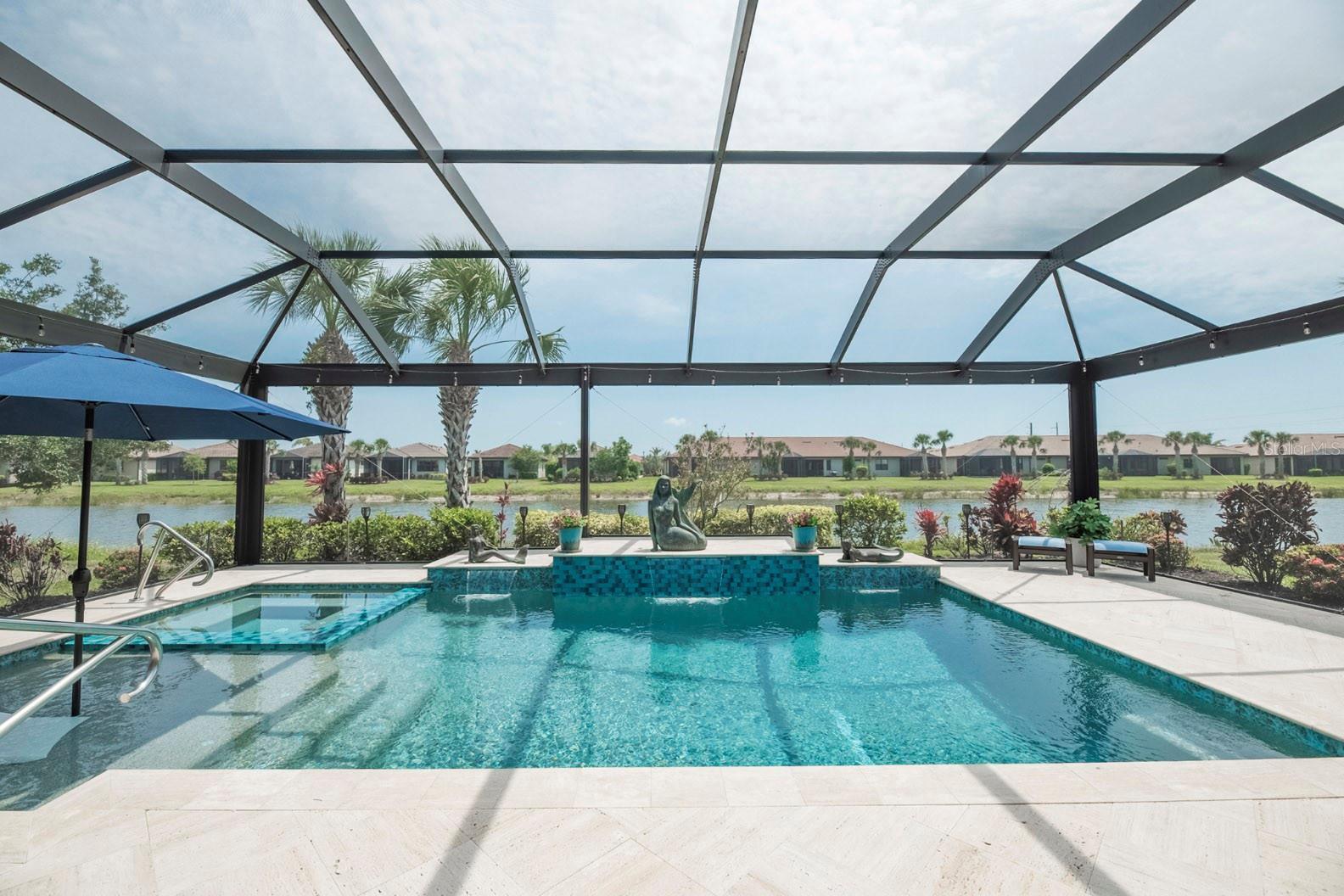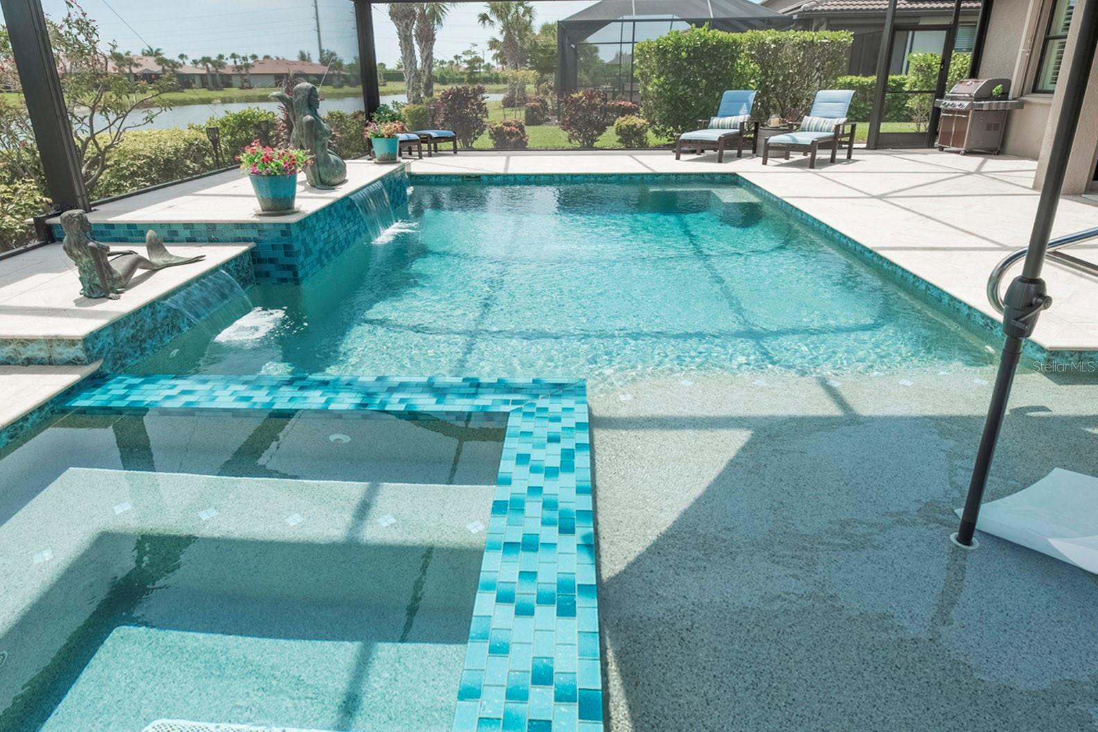 Under contract-accepting backup offers. If outdoor living is at the top of your wish list, this exceptional home in Islandwalk at Wellen Park delivers in every way. Designed to showcase Florida’s indoor–outdoor lifestyle, this residence features one of the most private and impressive outdoor retreats in the community—a true must-see. Set on a serene water-view lot with breathtaking sunset views, the expansive travertine lanai and pool are the showpieces of the home. Thoughtfully designed for both relaxation and entertaining, it offers an oversized covered patio, heated saltwater pool with sunshelf and elegant water features, and a luxurious spa—all surrounded by lush landscaping and rare privacy. Storm Smart hurricane screens on the lanai allow you to enjoy the space year-round, while accordion shutters on all windows provide added peace of mind. Inside, this open-concept Summerwood model seamlessly connects to the outdoor space, making hosting effortless. The light-filled kitchen features new quartz countertops with a waterfall backsplash, shaker-style cabinetry, stainless steel appliances, a large new island, and designer lighting—perfect for gathering before stepping outside to enjoy the views. The living and dining areas are enhanced by 8-foot doors, upgraded tile flooring, recessed lighting, and plantation shutters throughout. The private owner’s suite is a tranquil retreat with tray ceilings, a peaceful water view. The spa-inspired en-suite bathroom offers a frameless glass shower, dual vanities, and a custom walk-in closet. A split-bedroom layout, along with a versatile den/office, ensures comfort and privacy for guests. Besides the 3 spacious bedrooms, this home boasts a versatile den/office. Located in the golf cart–friendly, gated community of Islandwalk, residents enjoy two resort-style amenity centers, three pools, tennis and pickleball courts, a state-of-the-art fitness center, dog park, and miles of scenic walking trails—all supported by a maintenance-free HOA that includes landscaping, high-speed internet, and 24-hour staffed gate security. Just minutes from Wellen Park, CoolToday Park, shopping, dining, Gulf beaches, and historic Downtown Venice, with a private resident-only back gate providing quick access to the Town Center, this home offers a rare combination of luxury, privacy, and exceptional outdoor living. For those who believe the best part of home is lived outside, this Islandwalk property truly stands apart.