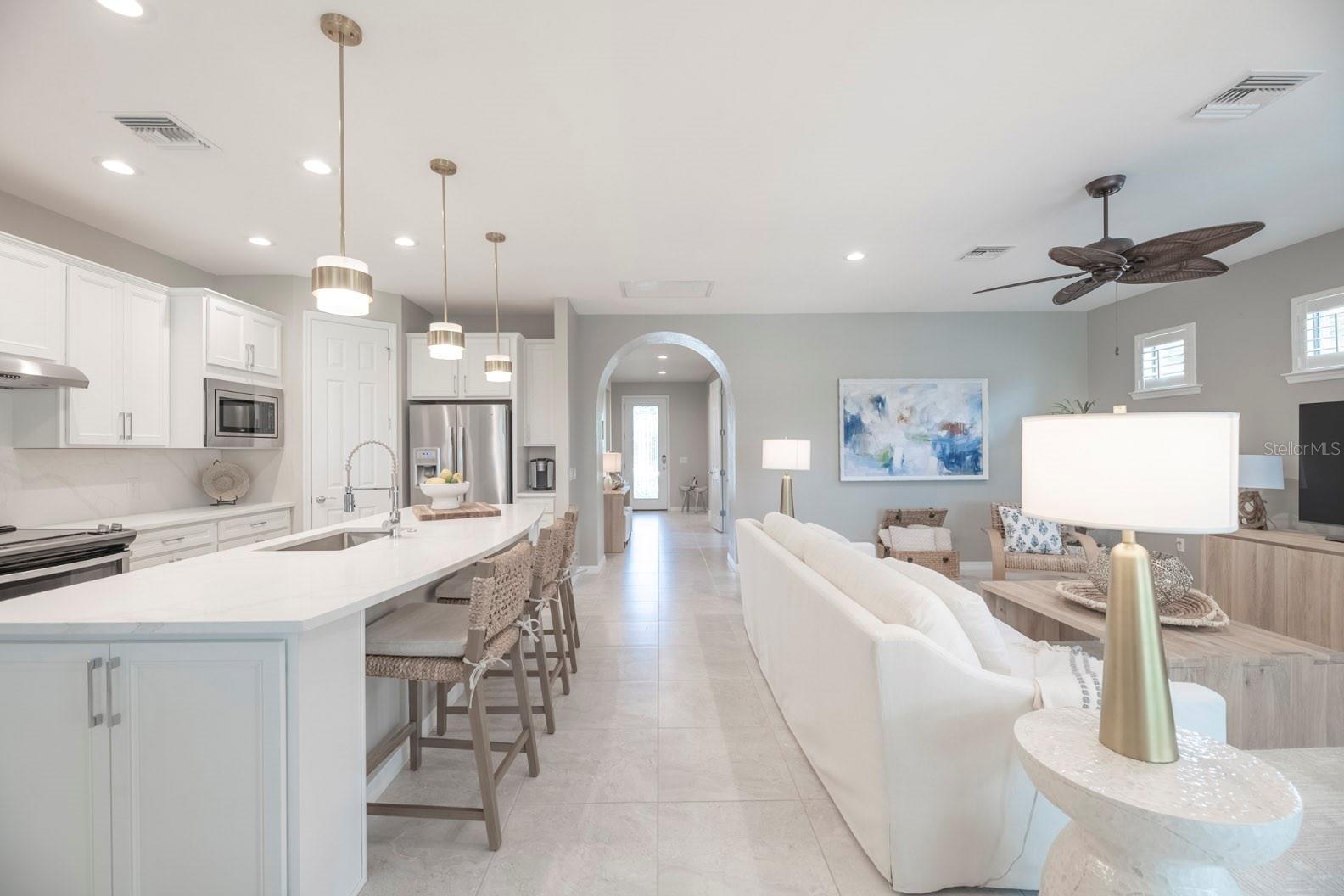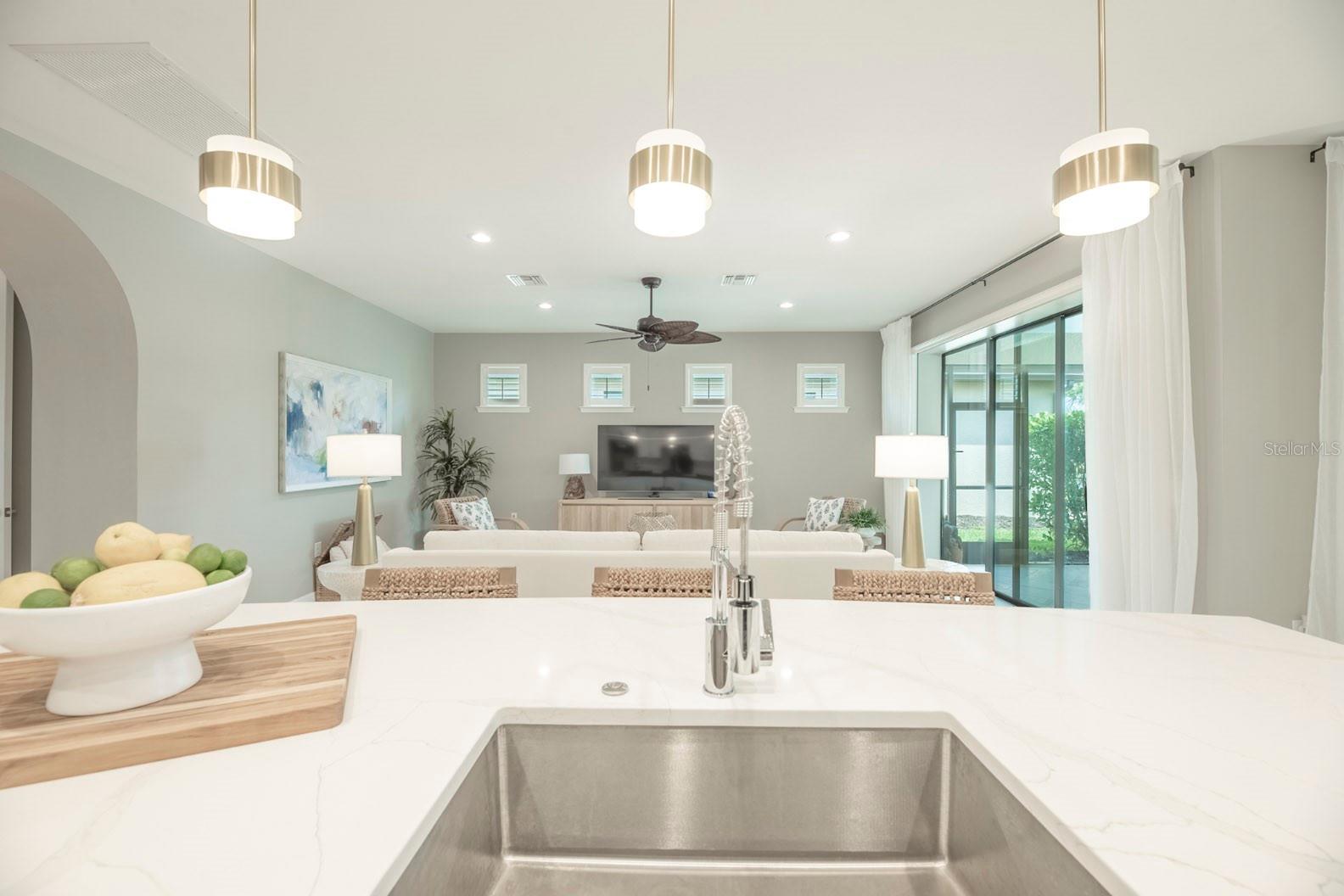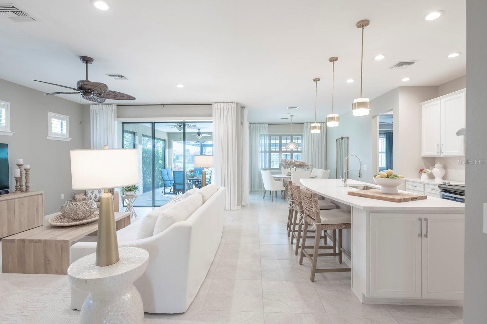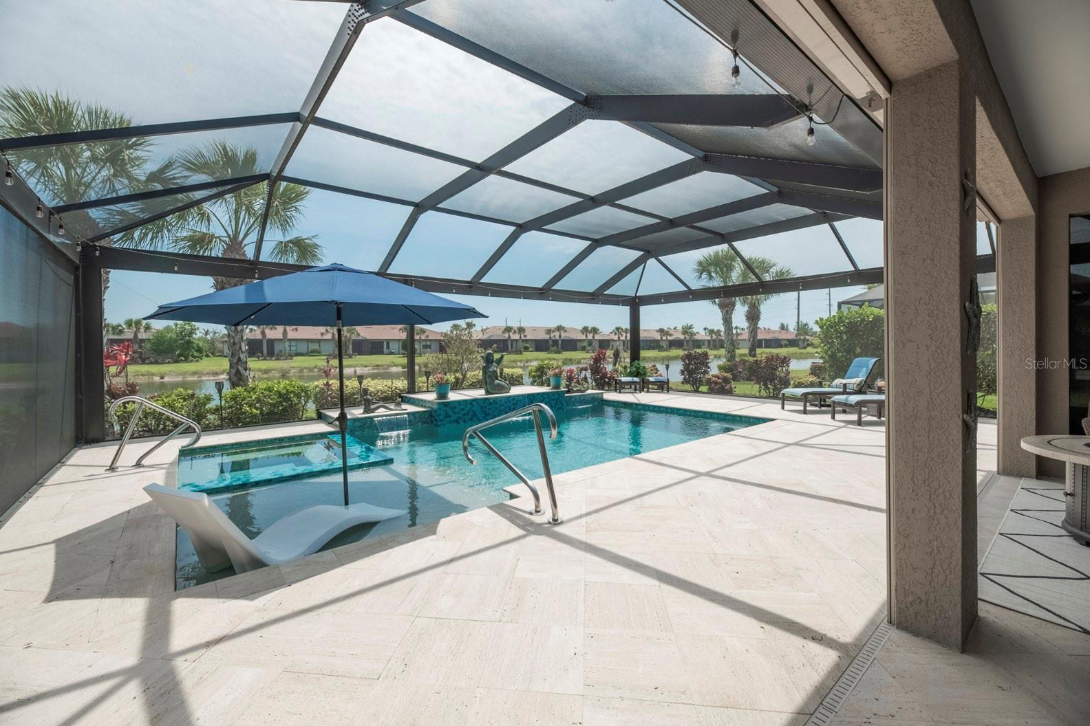 Under contract-accepting backup offers. If outdoor living is at the top of your wish list, this exceptional home in Islandwalk at Wellen Park delivers in every way. Designed to showcase Florida’s indoor–outdoor lifestyle, this residence features one of the most private and impressive outdoor retreats in the community—a true must-see. Set on a serene water-view lot with breathtaking sunset views, the expansive travertine lanai and pool are the showpieces of the home. Thoughtfully designed for both relaxation and entertaining, it offers an oversized covered patio, heated saltwater pool with sunshelf and elegant water features, and a luxurious spa—all surrounded by lush landscaping and rare privacy. Storm Smart hurricane screens on the lanai allow you to enjoy the space year-round, while accordion shutters on all windows provide added peace of mind. Inside, this open-concept Summerwood model seamlessly connects to the outdoor space, making hosting effortless. The light-filled kitchen features new quartz countertops with a waterfall backsplash, shaker-style cabinetry, stainless steel appliances, a large new island, and designer lighting—perfect for gathering before stepping outside to enjoy the views. The living and dining areas are enhanced by 8-foot doors, upgraded tile flooring, recessed lighting, and plantation shutters throughout. The private owner’s suite is a tranquil retreat with tray ceilings, a peaceful water view. The spa-inspired en-suite bathroom offers a frameless glass shower, dual vanities, and a custom walk-in closet. A split-bedroom layout, along with a versatile den/office, ensures comfort and privacy for guests. Besides the 3 spacious bedrooms, this home boasts a versatile den/office. Located in the golf cart–friendly, gated community of Islandwalk, residents enjoy two resort-style amenity centers, three pools, tennis and pickleball courts, a state-of-the-art fitness center, dog park, and miles of scenic walking trails—all supported by a maintenance-free HOA that includes landscaping, high-speed internet, and 24-hour staffed gate security. Just minutes from Wellen Park, CoolToday Park, shopping, dining, Gulf beaches, and historic Downtown Venice, with a private resident-only back gate providing quick access to the Town Center, this home offers a rare combination of luxury, privacy, and exceptional outdoor living. For those who believe the best part of home is lived outside, this Islandwalk property truly stands apart.