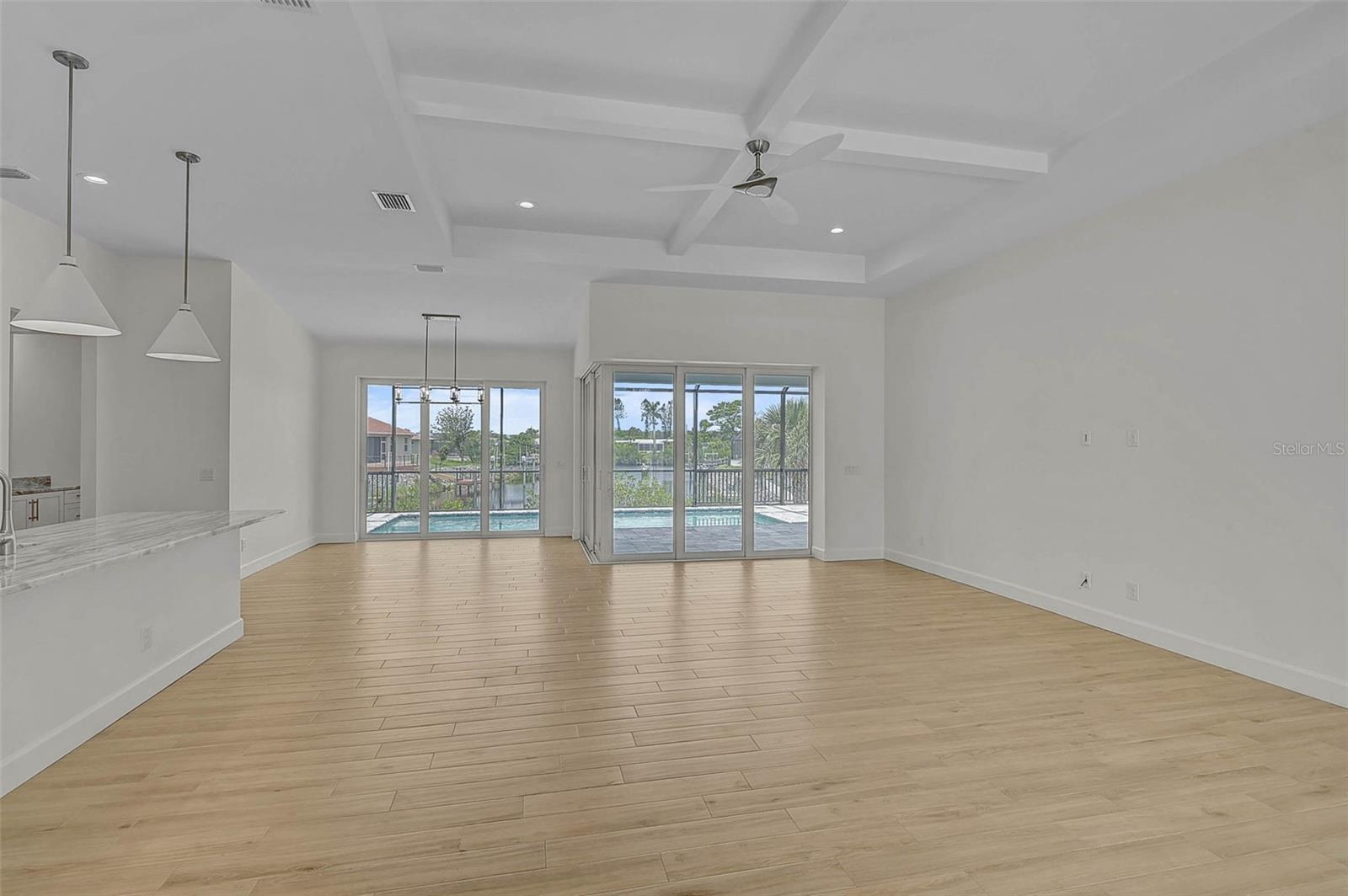 Discover this BEAUTIFULLY crafted, high quality waterfront home offering the perfect blend of luxury, comfort, and durability. With direct water access and dock-ready capability, this home is a boater's dream. Enjoy outdoor living at its finest with a sparkling pool, expansive paver lanai, and a fully landscaped yard featuring lush St. Augustine grass and a full irrigation system. Inside you'll find soaring high ceilings, tile flooring throughout, and energy efficient Low-E insulated impact windows and doors that fill the home with natural light. The spacious layout includes an office/den, an oversized garage, and a kitchen outfitted with solid stone countertops, soft-close Craftsman-style cabinetry, and premium finishes throughout. Built by a reputable local builder with attention to structural excellence, the home includes spray foam insulation, wire mat and fiber mesh reinforcement in the foundation, and is connected to city water and city sewer. This home offers the ideal Florida lifestyle-luxurious, efficient, and built to last!