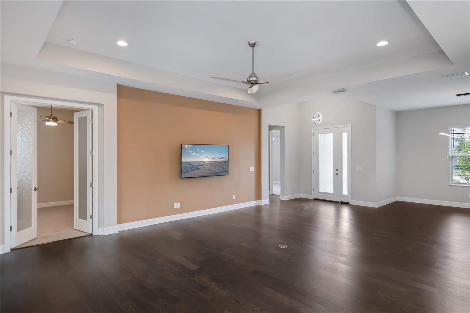 Under contract-accepting backup offers. One or more photo(s) has been virtually staged. ** Great New Price ** Welcome to refined Florida living in this beautiful four-bedroom, three-bath residence where modern luxury, comfort, and thoughtful design converge. From the oversized three-car garage to the resort-style heated saltwater pool and spa, every detail has been curated for effortless everyday living and memorable entertaining. The heart of the home is an expansive great room that seamlessly opens to a chef-inspired kitchen designed to impress. Features include a five-burner natural gas cooktop, built-in convection oven and microwave, a large center island with seating, statement pendant lighting, quartz countertops, designer tile backsplash, shaker-style cabinetry with abundant storage, and a spacious walk-in pantry—perfect for both casual meals and hosting gatherings. Retreat to the elegant primary suite, offering two generous walk-in closets and a spa-like en-suite bath with dual vanities, a luxurious soaking tub, and an oversized walk-in shower. Throughout the home, upscale finishes abound, including ten-foot ceilings, eight-foot doors, engineered hardwood flooring, five-inch baseboards, coffered ceilings, recessed lighting, and ceiling fans that enhance both style and comfort. Built with peace of mind in mind, the home features hurricane impact-resistant windows and sliders, a tankless gas water heater, and a high-efficiency five-ton Carrier A/C system. Step outside to your private backyard oasis, where the heated saltwater pool and spa take center stage. Designed for relaxation and entertaining, this outdoor retreat offers inviting lounge areas, low-maintenance landscaping, and the perfect setting to enjoy warm Florida evenings under the stars. Located in the sought-after gated community of **Rivo Lakes**, with just 107 homes, residents enjoy low HOA fees, no CDD fees, a welcoming neighborhood atmosphere, and community favorites like Food Truck Fridays. Ideally situated near Siesta Key’s award-winning beaches, Twin Lakes Park, top-rated schools, shopping, dining, hospitals, downtown Sarasota, UTC, I-75, and area airports, this exceptional home delivers the ultimate blend of luxury, convenience, and lifestyle.