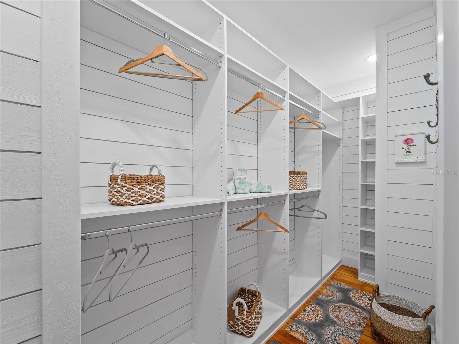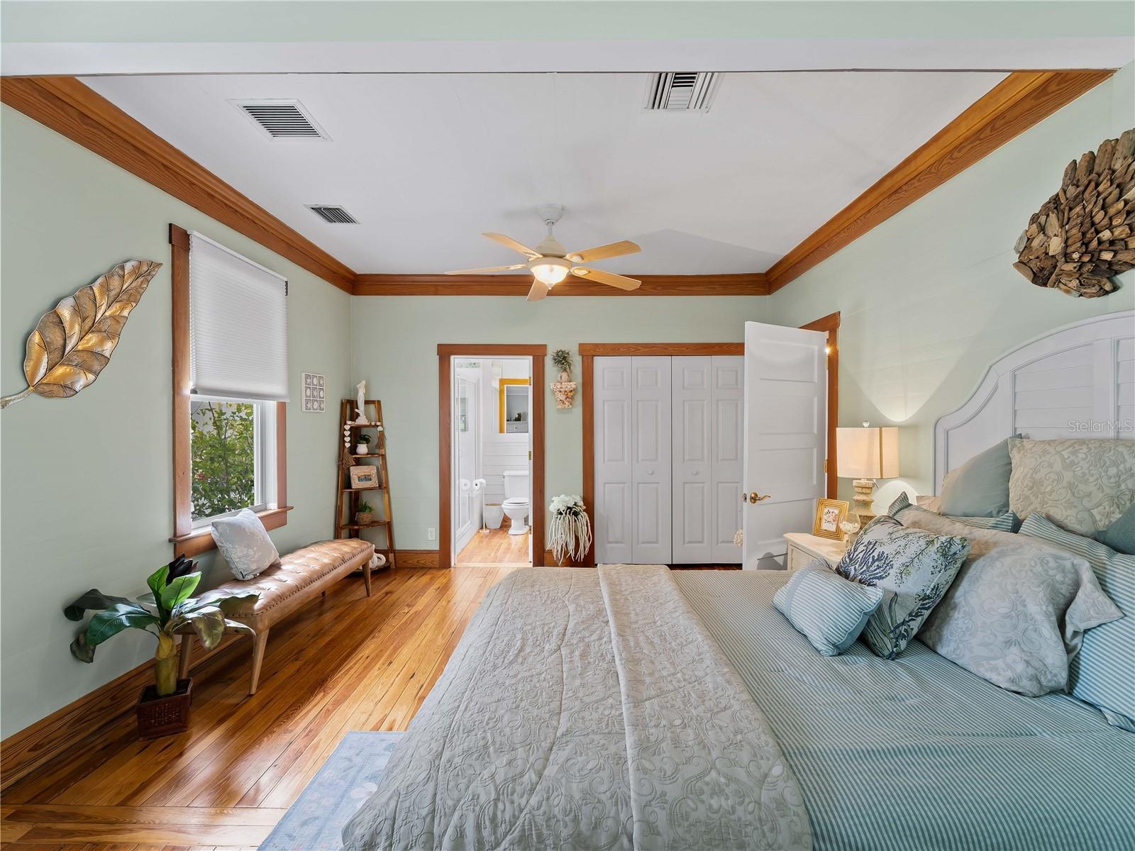 - Ceiling Fans(s), Coffered Ceiling(s), Crown Molding, Eat-in Kitchen, Primary Bedroom Main Floor, Solid Surface Counters, Solid Wood Cabinets, Vaulted Ceiling(s), Walk-In Closet(s), Window Treatments