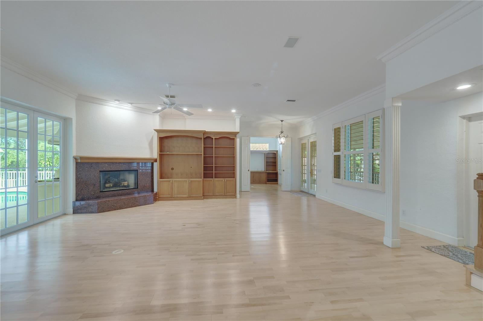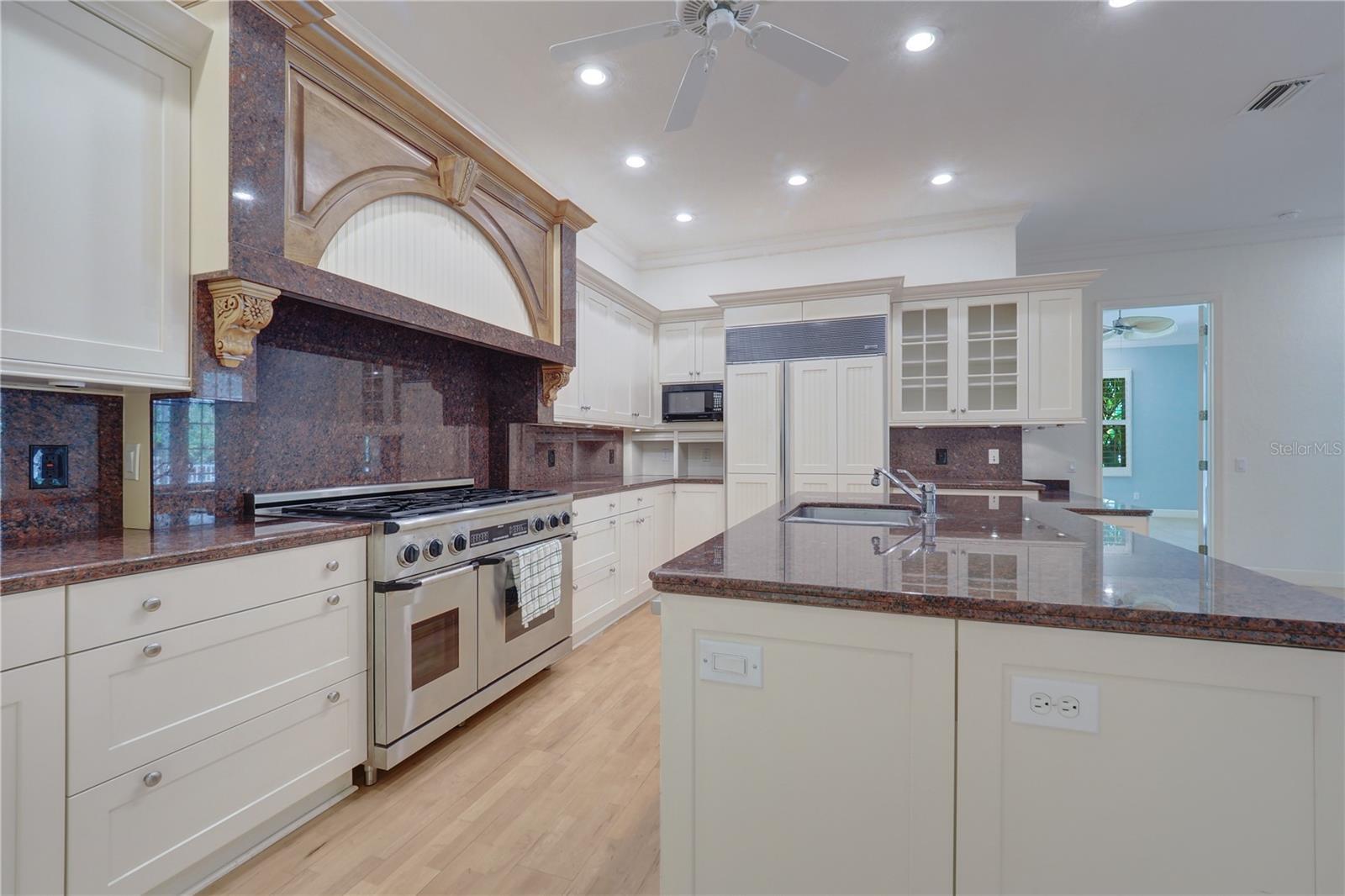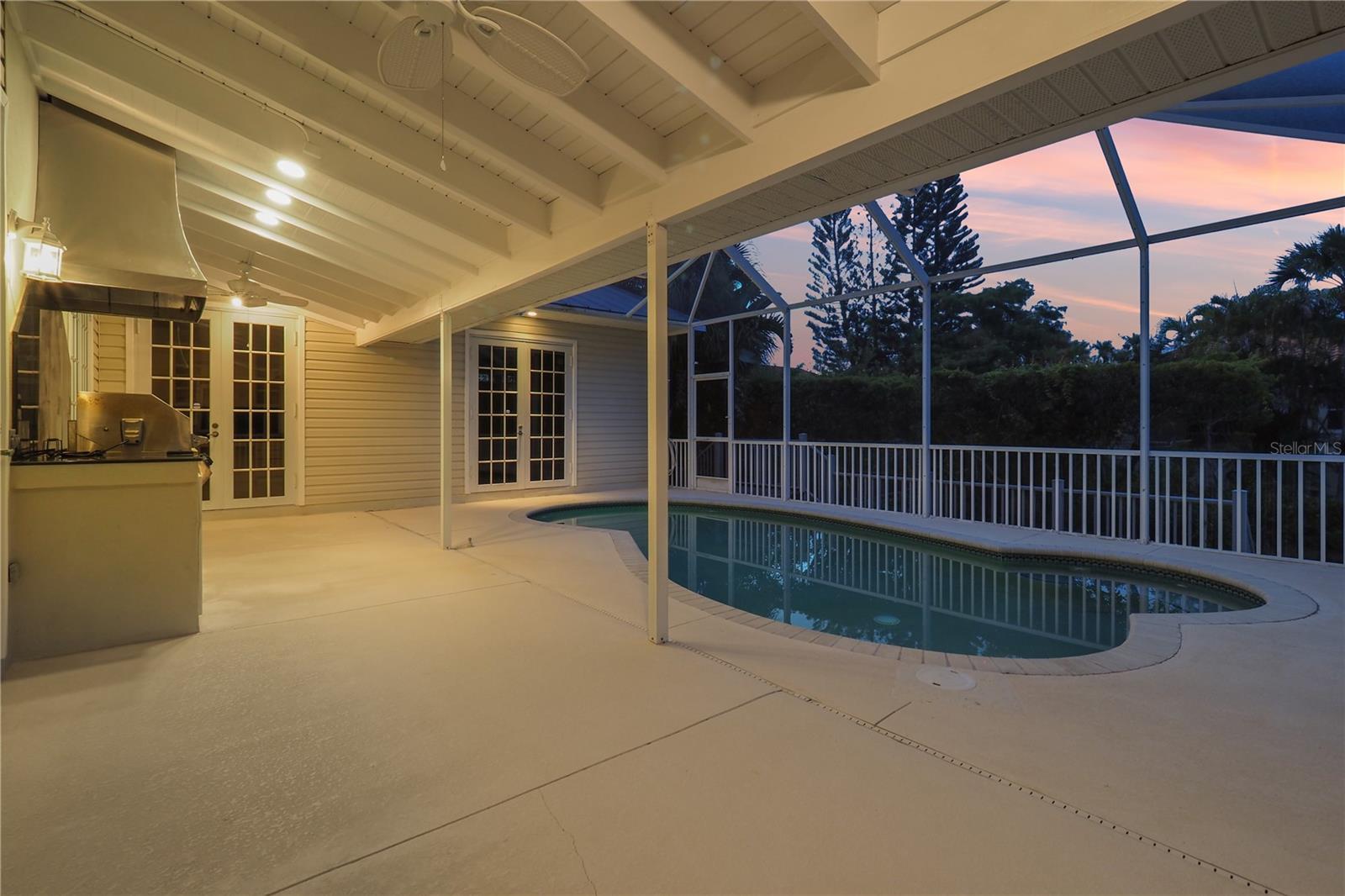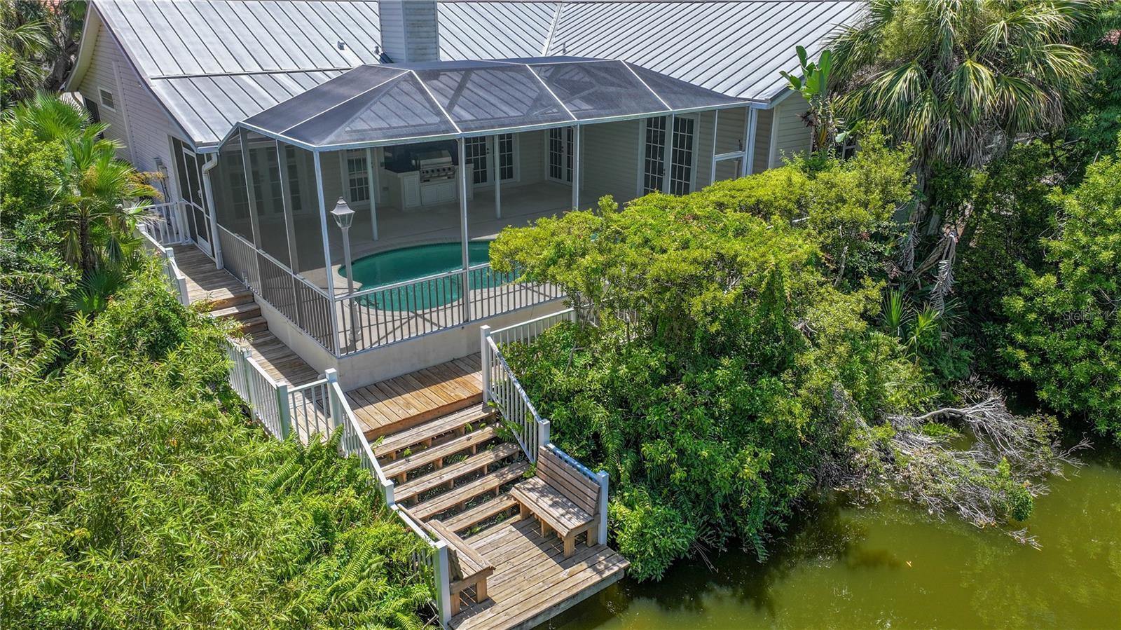 One or more photo(s) has been virtually staged. Lakefront home. Thoughtfully designed and meticulously built, this stunning custom residence offers an open floor plan, premium finishes, and a wealth of high-end features—all set on a beautiful lakefront lot. Built with durable Ytong Block and boasting Impact Windows & Exterior Doors, this home combines elegance with peace of mind. Additional construction upgrades include Icynene Insulation, a Standing Seam Metal Roof, and plaster crown molding throughout. The home is equipped with a whole-house generator, wood floors and 10-foot ceilings in every room, and plantation shutters for timeless charm. The heart of the home features a true chef’s kitchen with abundant counter space and custom cabinetry. Highlights include: Natural gas 6-burner Dacor stove with double ovens and large exhaust hood. Sub-Zero refrigerator and freezer. Built-in ice maker. Bosch dishwasher (new in June 2025). Natural gas powers the kitchen range, outdoor Altima grill, water heater, pool heater, and fireplace. Each bedroom has its own full bathroom for comfort and privacy: Primary Suite: Lake and pool views, French doors to the pool area, jetted tub, separate shower, bidet, and a large walk-in closet with custom shelving. Second Bedroom: French doors to the pool with lake views. Third Bedroom (Upstairs): Spacious suite with its own living area, compact kitchen, and full bath—ideal for guests, extended family, or a caregiver. The open living area features a cozy fireplace, custom built-ins, and French doors leading to the pool and lakefront. The private office/den includes built-in cabinetry and French doors for quiet work-from-home space. Enjoy Florida’s outdoor lifestyle with: Screened front porch (8’ x 32’). Screened pool area with large covered porch (9’ x 32’), Altima natural gas grill, and stainless-steel exhaust hood. Heated pool (new pump in March 2025). Deck/walkway leading to a private dock overlooking the lake—home to tilapia and abundant wildlife. Additional Features: Laundry room with sink, cabinetry, and extra pantry space. Newer A/C (May 2024) and water heater (Sept 2021). Conveniently located between Sarasota and Venice with easy access to beaches, I-75, shopping, and dining. This home blends quality craftsmanship, luxury amenities, and a serene lakefront setting—perfect for both everyday living and entertaining.