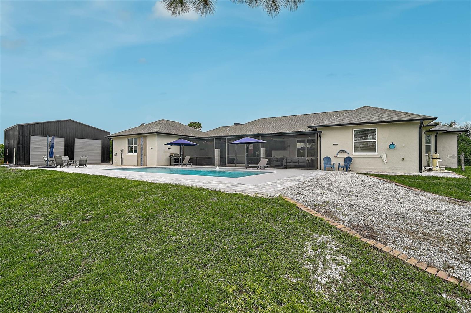 Discover the best of country living with this beautifully updated estate, NO HOA, Magnolia Hill. Nestled on 5 acres, this gated property offers both privacy and convenience, located just a short drive from Lakewood Ranch and Sarasota. The 3,100+ sq. ft. home has been extensively renovated since 2019, featuring 5 bedrooms most with walk-in closets, and a spacious bonus room, and an open-concept design ideal for everyday living and entertaining. The chef’s kitchen showcases dual sinks, wall ovens, an island prep station, a walk-in pantry, and abundant storage. Recent upgrades include a dog wash station in the garage, making the home functional and thoughtfully designed. Outdoor living shines with a sparkling pool, fire pit, and a stocked pond with bass, tilapia, bluegill, and crappie. Additional highlights include RV electric hookup, metal canopy storage bay for equipment, pole barn for the boat, metal building that could be finished for additional living or entertainment space and ample space to add stables. Magnolia Hill is an equestrian-friendly neighborhood with estate-sized parcels, allowing room for horses, cattle, and more. This property blends modern comfort with classic Florida charm—ready to enjoy today. For those needing extra space, the property includes a 32' x 36' metal building with oversized 12' x 12' doors, plus a 20' x 30' boat pole barn standing 11.5' high—perfect for storing boats, toys, vehicles, or outdoor gear.