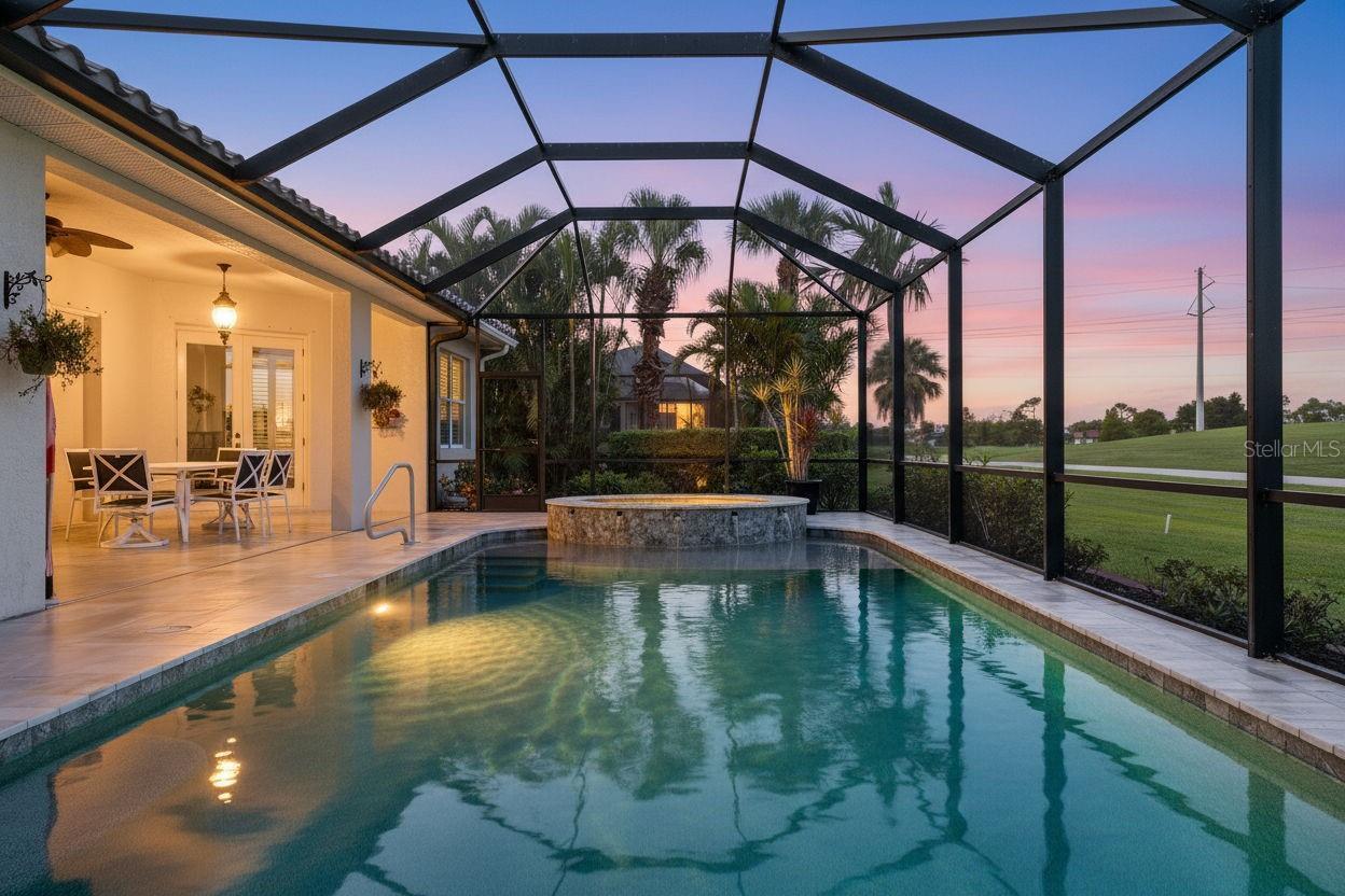 Golf Course Luxury with a Private Resort-Style Lanai Experience the perfect combination of elegance, updates, and lifestyle in this stunning Francesca estate home at Venetian Golf & River Club. With 3,136 sq. ft. of living space, this 3-bedroom, 3-bath residence with a den and office is designed for comfort, entertaining, and everyday luxury. From the moment you arrive, the freshly sanded and sealed paver driveway, new curbing around manicured planter beds, and lush landscaping create incredible curb appeal. Inside, freshly painted interiors and soaring ceilings set a bright, airy tone, while an open great-room floor plan seamlessly connects the living spaces. Wall-to-wall sliders open to the lanai, blending indoor and outdoor living in true Florida style. The chef’s kitchen is the heart of the home, featuring brand-new appliances, light cabinetry, granite countertops, and a breakfast bar with views of the golf course. The spacious split-bedroom layout offers privacy and convenience, with well-positioned bathrooms for family and guests. Step outside to your personal paradise: a gorgeous PebbleTec pool and spa (2020) surrounded by premium marble pavers, a fully equipped summer kitchen with a natural gas grill and fridge, and a cozy gas fire table—perfect for entertaining or relaxing after a round of golf. The three-car garage with a new epoxy floor provides plenty of room for cars, storage, or a golf cart. Recent updates bring peace of mind, including a new tile roof (2024), newer HVAC (2023), and a whole-house water filtration system. Living at Venetian Golf & River Club means resort-style amenities at your fingertips—lap and resort pools, a fitness center, tennis and pickleball courts, a tiki bar, clubhouse dining, and scenic trails along the Myakka River. Optional golf memberships offer access to the private 18-hole championship course and its exclusive clubhouse. Ideally located in North Venice, you’re just minutes from I-75, pristine Gulf beaches, downtown Venice, and the new Sarasota Memorial Hospital campus. This home isn’t just a place to live—it’s the lifestyle you’ve been waiting for.