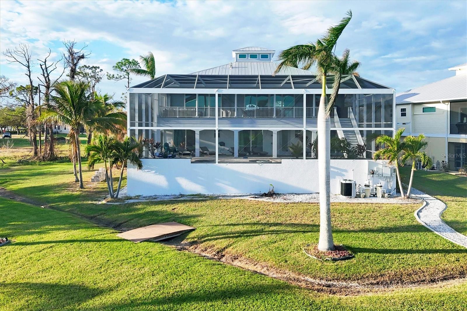 Motivated Seller! A Luxury Statement of Waterfront Living! POOL HOME! FULLY FURNISHED! Public Water and Public Sewer! GREAT ELEVATION! GATED!ONE OF THE KIND!It is located in Hidden Waters, a gated waterfront subdivision on Oyster Creek. NEW impeccable 2-Story Key West Style Beauty nestled along Oyster Creek behind the gates of the exclusive Hidden Waters Subdivision. Spacious custom 4 BR, 3½ BA home with contemporary flair built to the newest hurricane and energy efficiency standards. Solid concrete foundation with fully enclosed 2+ car garage. Elegant split entry stairs leading to spacious, wide open living area with gas fireplace and glass sliders opening to the huge 56x13 ft. A 2-story cage embraces the heated 34-foot pool, Jacuzzi & outdoor gas fire pit. Kitchen with bar island next to dining area. Also on main floor: office with French doors, powder room, large laundry and a spacious master suite with drop-dead gorgeous bath w/shower & tub, plus two custom WICs. Downstairs are 3 guest bedrooms, 2 bath & a lounge. All downstairs bedrooms with custom WIC & direct access to pool & large sundeck. Same neutral 20” tile throughout the whole house, all doors and sliders 8 ft. high, & all bedrooms with tray ceilings. There is a little beach area with Coconut Palms, a bond fire pit, & a long walk way leading through a mangrove belt to the private boat dock with a new 7000 LB boatlift. Short 3600-foot boat ride to the Intracoastal Waterway & beaches. Discover the nearby pristine Gulf beaches, where you can bask in the sun, partake in water activities, or simply relish the tranquility of the ocean. Embark on nautical adventures from the conveniently located marinas, allowing you to explore the region's captivating waterways and nearby islands. Fishing enthusiasts will delight in the world-class fishing opportunities, while golf enthusiasts can indulge in a variety of renowned golf courses.Englewood is known for its thriving shopping and dining scene, featuring a diverse range of retail centers, boutiques, and restaurants. Immerse yourself in the vibrant downtown area, boasting charming shops, art galleries, and entertainment venues. The city hosts numerous cultural events, festivals, and community gatherings throughout the year, ensuring there's always something exciting happening. Beyond the city's amenities, this vacant lot offers proximity to breathtaking nature parks and preserves. Englewood also boasts excellent educational institutions, reliable medical facilities, and convenient transportation options. The city's welcoming community and strong sense of belonging make it an ideal place to establish roots and create lasting memories. Experience the best of Florida living, with nearby beaches, golf courses, and outdoor recreational activities just a short drive away. Don't miss out on the chance to own this extraordinary home.