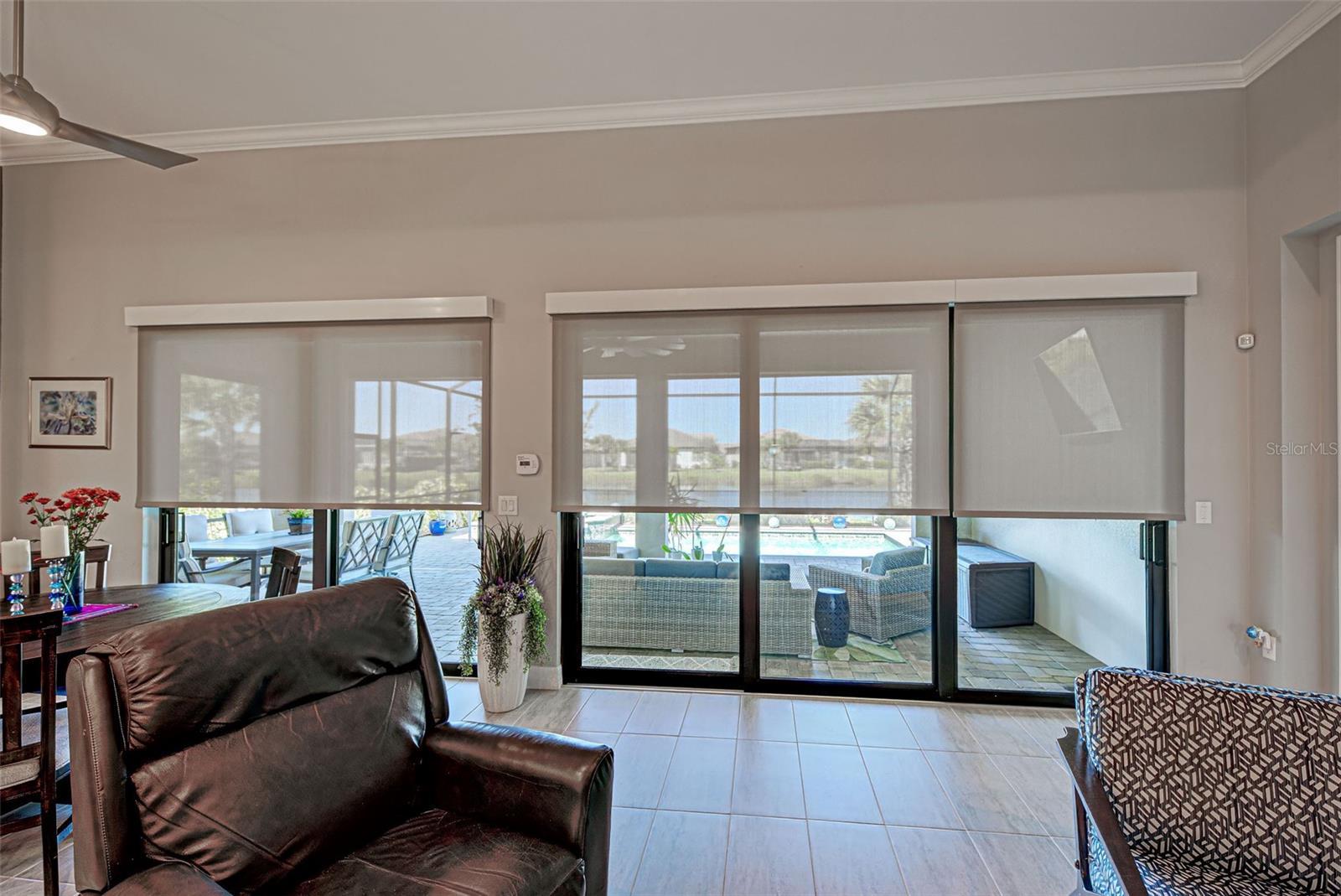 Welcome to this exceptional STONEWATER POOL estate home, where design meets modern comfort in Islandwalk, one of Wellen Park’s most sought-after communities. This beautifully appointed residence offers 3 bedrooms, 3 bathrooms, a versatile den, and a spacious 3-car garage. Step inside to discover HIGH CEILINGS, elegant CROWN MOLDING throughout the main living areas, seamless PLANK TILE flooring—no carpet—and CUSTOM LUTRON REMOTE-CONTROL SHADES in the great room and primary bedroom. The open-concept layout centers around a gourmet kitchen with crisp white cabinetry, high-quality stainless steel appliances, a generous CUSTOM WALK-IN PANTRY, and a large island with pendant lighting. Adjacent to the kitchen, a breakfast nook offers tranquil water views through TWO SLIDER DOORS and flows into the NATURAL LIGHT-FILLED great room. Here, COFFERED CEILINGS, recessed lighting, a WINDMILL CEILING FAN, and TRIPLE SLIDERS create an inviting space for entertaining or relaxing, seamlessly connecting to the expansive COVERED and SCREENED lanai. Step outside to your private oasis featuring a HEATED SALTWATER POOL with SPA, ceiling fan, remote-controlled STORM SHADES, and peaceful WATER VIEWS—perfect for year-round enjoyment. The luxurious primary suite showcases a TRAY CEILING with crown molding, tile flooring, ceiling fan, and en suite bathroom behind DUAL SOLID DOORS. Inside, enjoy a generous tiled shower, dual vanities, and a CUSTOM WALK-IN CLOSET designed for style and storage. The guest bedroom offers comfort with a ceiling fan, built-in closet, CUSTOM WINDOW SHADES and access to a bathroom with bathtub, linen closet, and soft neutral tones. The third bedroom is bathed in natural light from turret windows and is near a third bathroom with tiled tub and white cabinetry. A versatile flex room adds functionality—ideal for a home office, craft space, or extra bedroom—and includes a BARN DOOR, crown molding, CUSTOM WINDOW TREATMENT, and ceiling fan. The spacious laundry room features LG washer and dryer, vanity sink, and crown molding for a polished finish. For peace of mind, the home includes IMPACT WINDOWS THROUGHOUT and a 500-GALLON PROPANE TANK for the GENERATOR. All mounted TVs convey! The 3-CAR GARAGE boasts EPOXY FLOORING and OVERHEAD STORAGE RACKS for optimal organization. Living in Islandwalk means enjoying resort-style amenities year-round: geothermal pools, Har-Tru tennis courts, pickleball, bocce ball, lap pools, spas, playground, basketball court, dog park, two state-of-the-art fitness centers, a 24-hour staffed gate, and on-site HOA staff seven days a week. Residents also enjoy a pavilion with BBQ grills, a library, and a vibrant social calendar. Golf carts are permitted and can travel beyond Islandwalk into Wellen Park via a resident-only gate, offering exclusive access to Downtown Wellen Park. There, enjoy a lively Marketplace anchored by Publix, the Atlanta Braves Ballpark, restaurants, and entertainment. Conveniently located just four miles from I-75, this home offers easy access to pristine Gulf beaches, regional airports, and the charm of Historic Venice Island with its boutique shopping, dining, and cultural events.