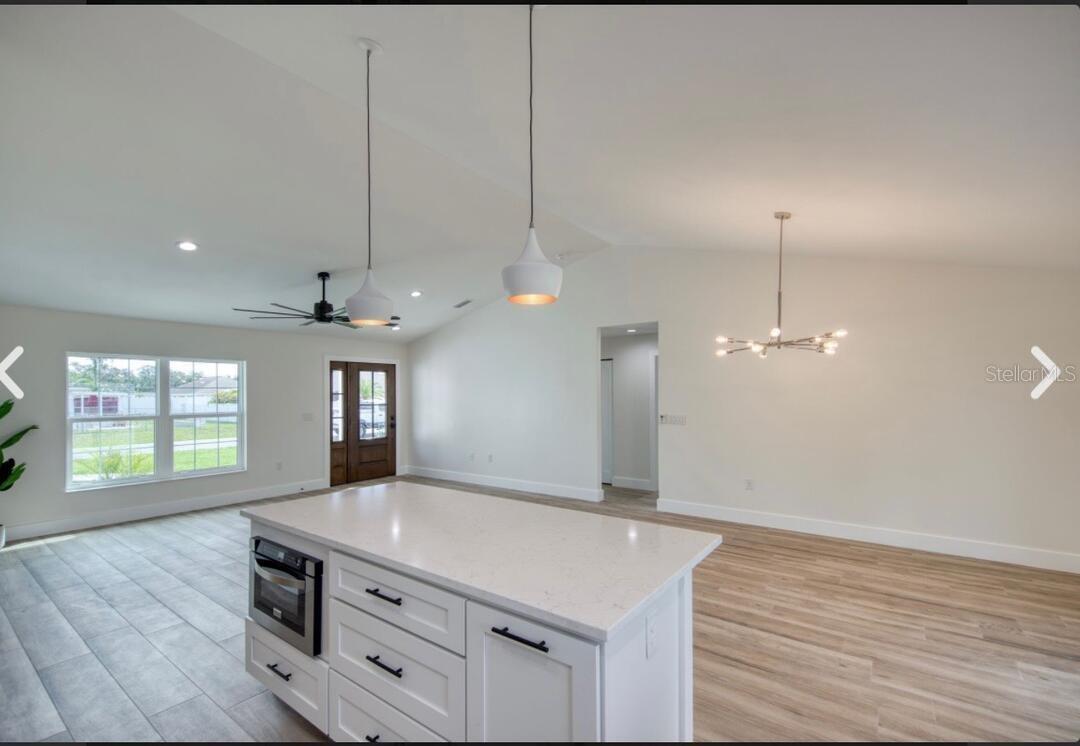 - Ceiling Fans(s), Eat-in Kitchen, High Ceilings, Living Room/Dining Room Combo, Open Floorplan, Primary Bedroom Main Floor, Solid Wood Cabinets, Split Bedroom, Stone Counters, Thermostat, Tray Ceiling(s), Walk-In Closet(s), Window Treatments