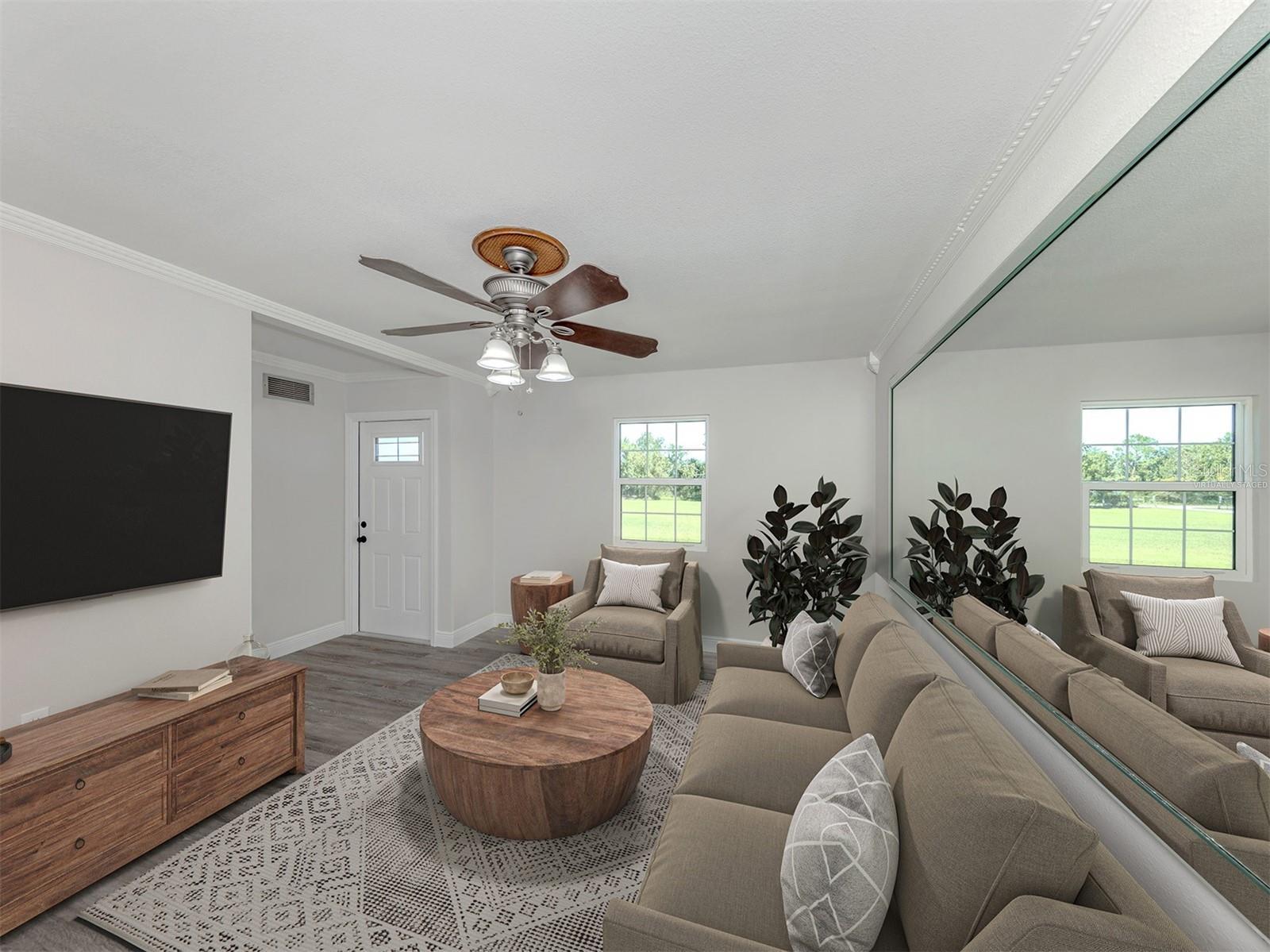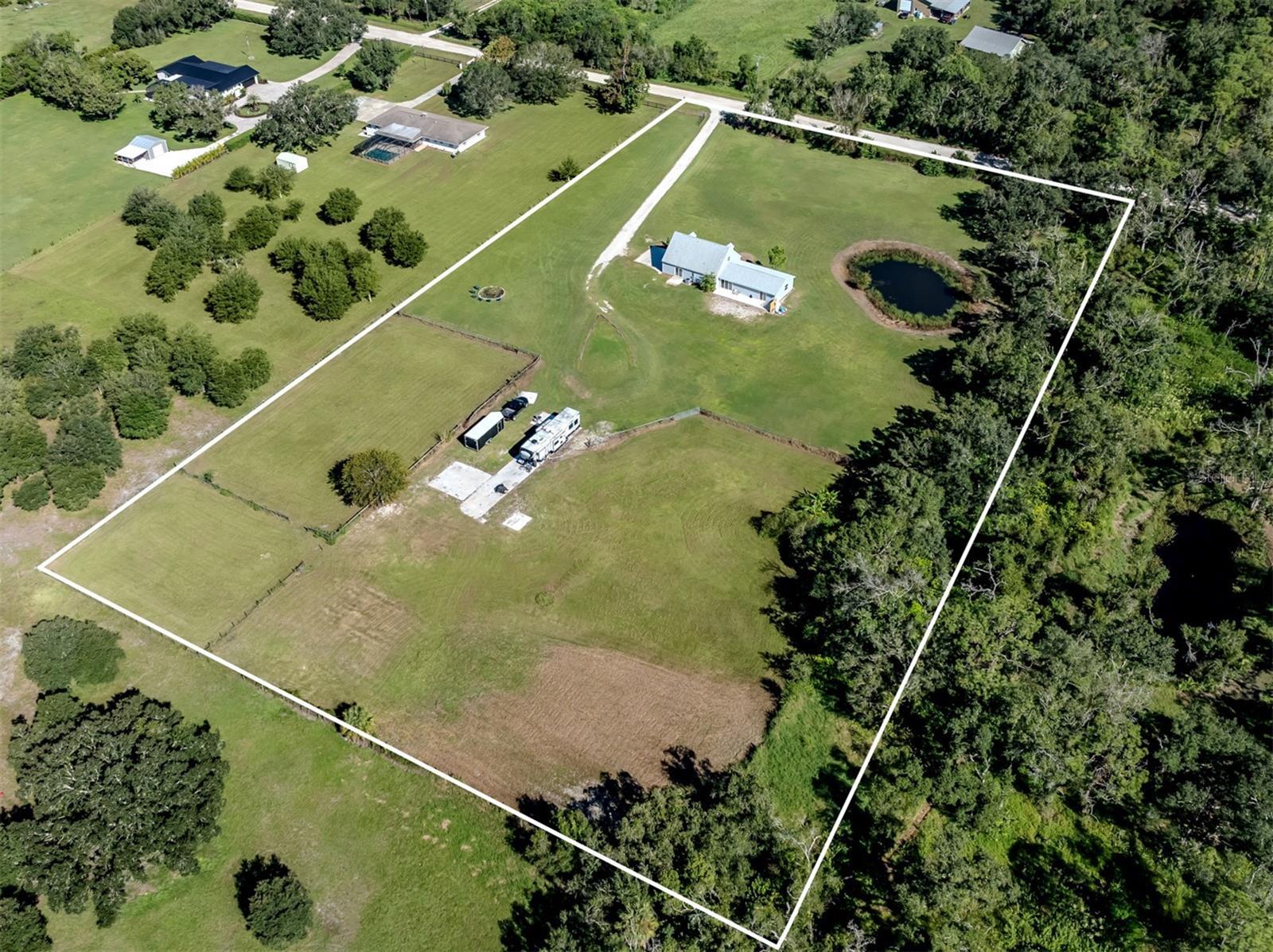 One or more photo(s) has been virtually staged. Highly desirable and rarely available. Be the first to enjoy this FULLY REMODELED and updated high and dry five-acre, four-bedroom, four-full-bath home. Rainbow Ranches is the perfect neighborhood if you are looking to enjoy daily visits from the resident wildlife. Enjoy a quiet cup of coffee while you watch deer, wild turkey, crested caracara, numerous hawk species and endless others as you stroll through or hang out in your own piece of heaven. Invite all your friends and enjoy a huge fire pit as you gaze up at the endless star-filled night sky, free from the city lights. The property also features a full 50-amp RV hookup with its own separate septic. A large concrete pad is in place, easily expanding this area into your dream RV location, workshop/garage, additional house/apartment or barn. The opportunities are endless. Recent updates include new PGT hurricane windows and sliders, all new interior and exterior doors, new AC units (2021/2024), a new roof, new vinyl siding, an updated kitchen, new flooring, updated baths, a full-house replumb, full electric upgrade, dual primary bedrooms, both with beautiful walk-in showers and frameless glass, new gutters facia and soffit, new interior paint, brand new well pump and the list goes on. This highly sought-after location in a friendly and quiet neighborhood has much to be desired. Bring your horses, cows, donkeys, bee farms or whatever your heart desires while still being close to all that Sarasota and Lakewood Ranch have to offer. Schedule your private showing today. You will be glad you did! This home does qualify for USDA financing!