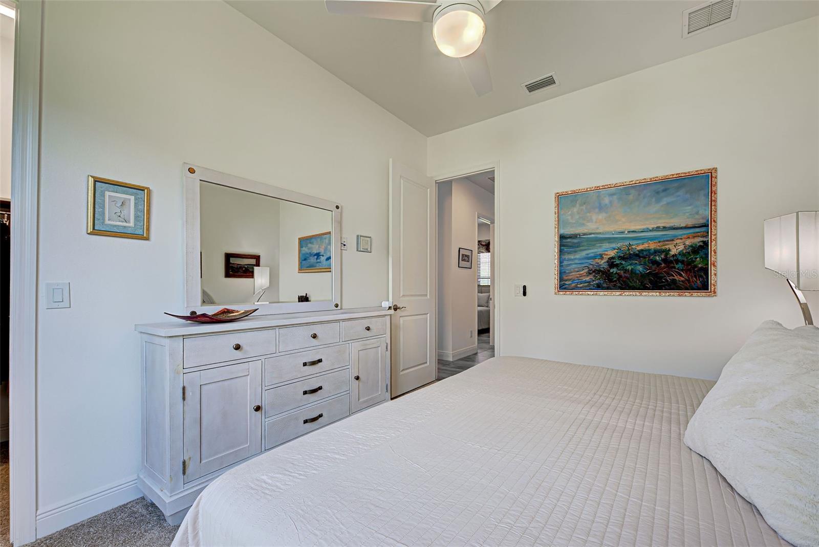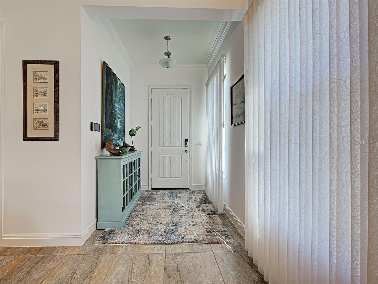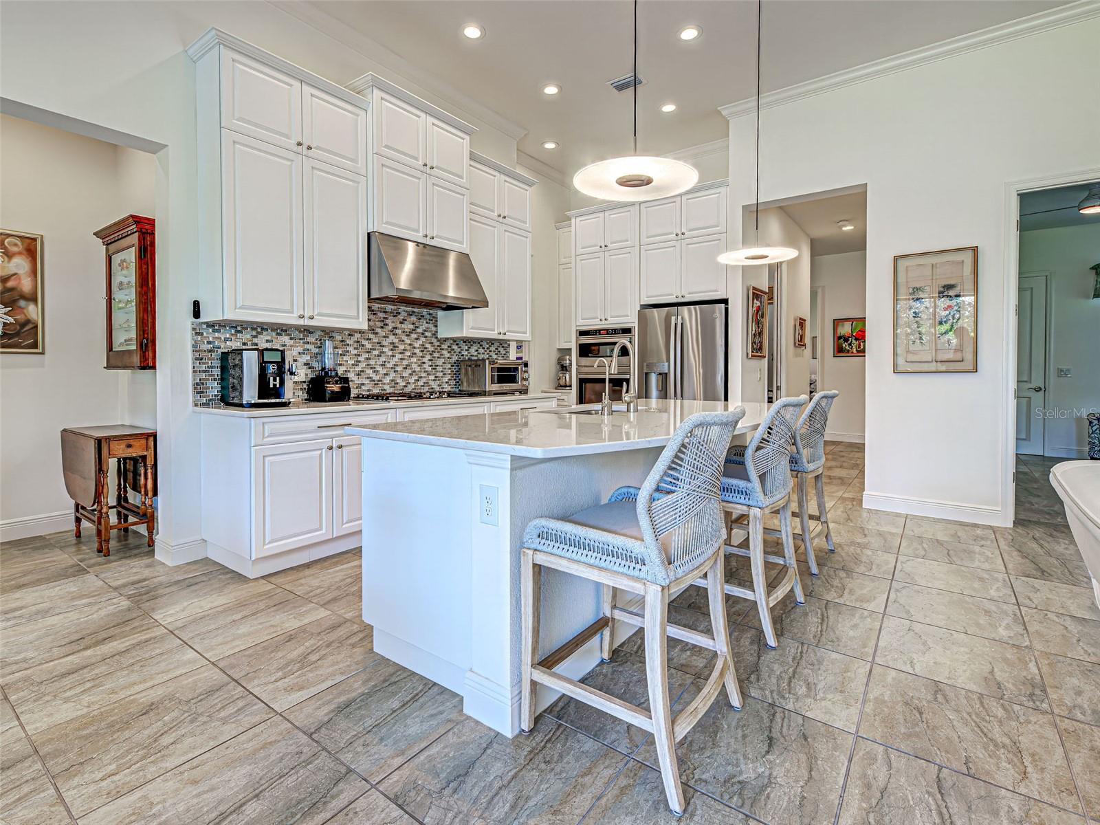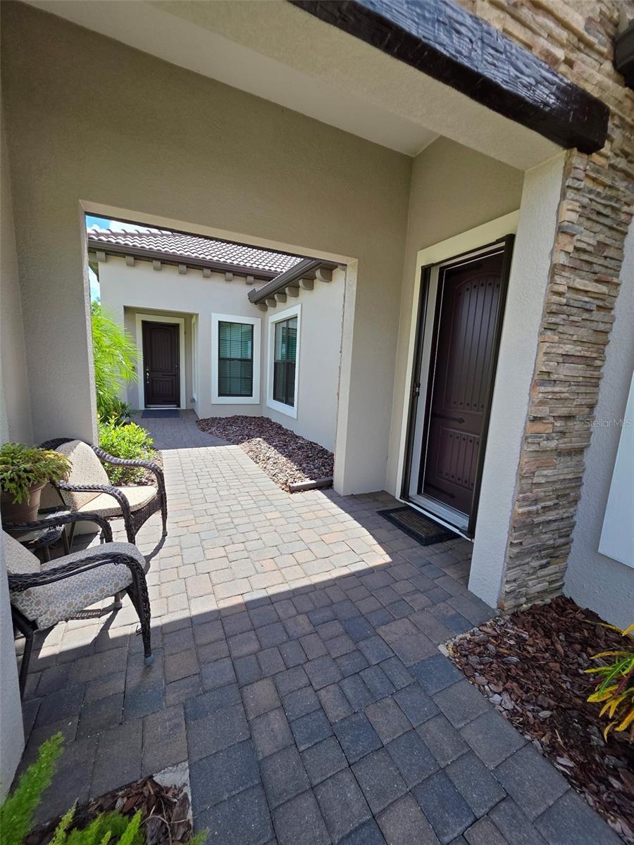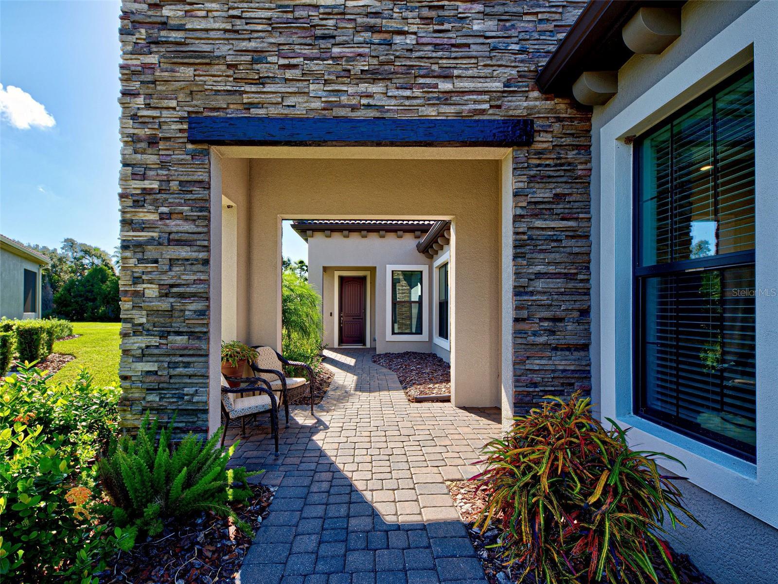 Welcome to ARIA in lovely Nokomis, Florida. Developed by Neal Signature Homes. A deed restricted, gated community with gorgeous resort style amenities including clubhouse, pool, state of the art fitness center, pickleball and entertainment area that overlooks lake and fountain. On-site community manager. Presenting the beautiful Vicenzo Model, built in 2022 with 2667 sq. ft., (heated and cooled) 3576 sq. ft. total. 3/BEDROOMS, 3/BATHROOMS, OFFICE, and 2-CAR GARAGE. FEATURING A PRIVATE IN-LAW/GUEST SUITE W/SEPARATE ENTRANCE. BEING OFFERED FURNISHED (or unfurnished-buyers preference). Great room boasts 14 ft. ceilings, crown molding, ceramic tile flooring throughout most of the home (primary bedroom and guest bedroom have carpet). Push back the great room fully collapsing sliders and enjoy the 28ft. brick pavered lanai, overlooking large backyard. Kitchen includes custom pantry, quartz counters, gas cooktop, stainless appliances and ample cabinetry. Larger center island with power w/room for 3 barstools. Dining area adjacent to kitchen. Dedicated office could be tailored to your needs. Primary Bedroom, En-Suite and Walk-In closets are a true trifecta! Crown molding, room darkening shades. En-Suite sports granite, dual sinks, free standing tub and a HUGE shower. HIS/HER closets are amazing. So big it’s like having 2 additional rooms! Large 2nd bedroom w/walk-in closet and room darkening shades. The 3rd Bedroom/In-law suite boasts bedroom with built-in closets that span one wall, custom bathroom, custom kitchenette with quartz counter and a family room. Great area for guests, Mom and Dad, in-laws, college student or a live-in. Don’t forget it’s own dedicated entrance! 2 Car Garage has built-in storage, extra refrigerator/freezer and 2 ceiling storage units. The entire home has IMPACT WINDOWS. Exterior is a handsome combo of block with stone accents. Lush landscaping/ mature plants and trees. ARIA is located close to beaches, Venice Island, I-75, shopping, restaurants and the new Sarasota Memorial Hospital. Make a great decision-come tour this home, IT IS ONE OF A KIND!