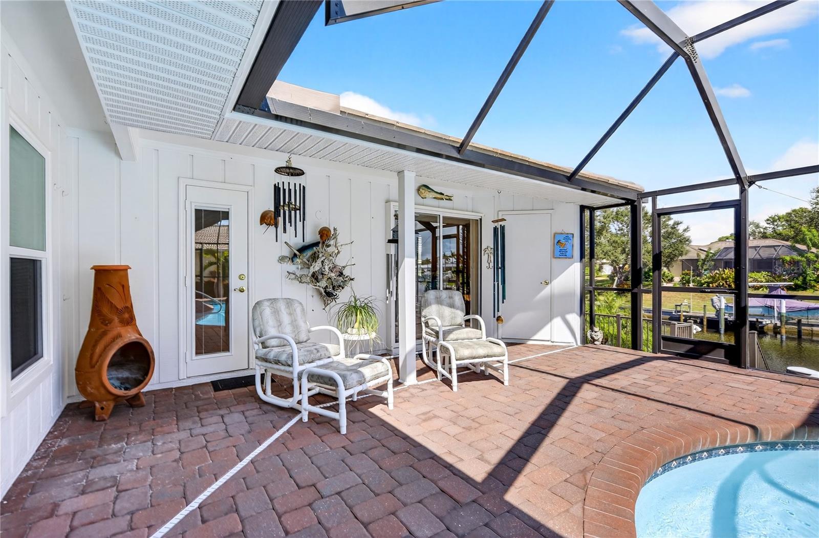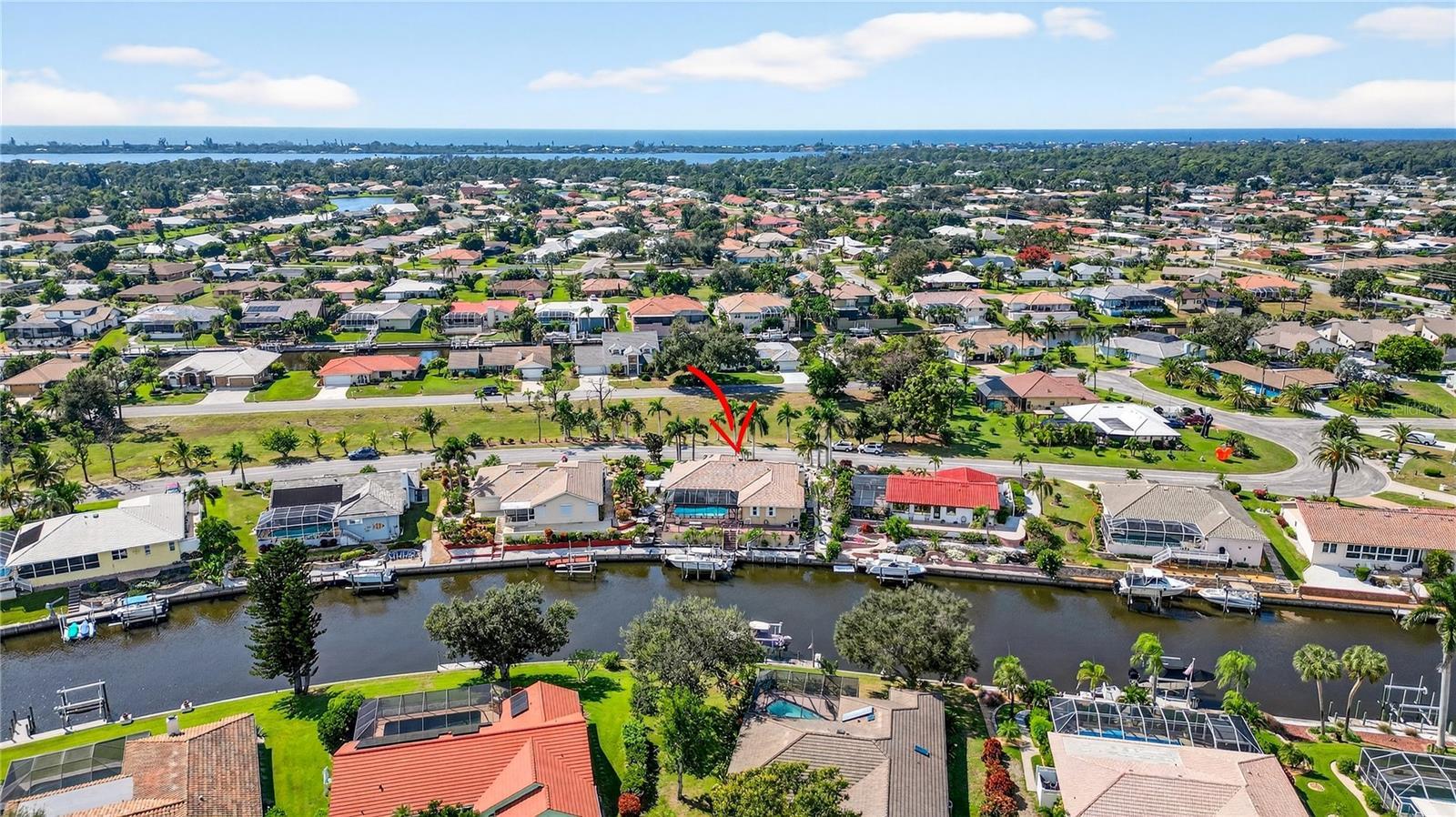Under contract-accepting backup offers. PRICE ADJUSTMNET--WATERFRONT PARADISE ON SALTWATER CANAL WITH ONE-BRIDGE ACCESS TO THE INTRACOASTAL complete with a NEW ROOF and HURRICANE IMPACT WINDOWS. Live the ultimate boating lifestyle in this beautifully maintained waterfront home in the desirable boating community of Englewood Isles where you can reach Lemon Bay and the Gulf within minutes. Step outside to your private backyard oasis featuring two patios, an extended dock, a 15,000-lb boat lift (new motor 2024), and 9,000-lb davits—perfect for powerboats, jet skis, or kayaks. This property is in an X Flood Zone, and combines peace of mind with beautiful water views. The Fibre Tech freshwater heated pool with a new pump and heater (2024) overlooks the canal, offering a serene setting to unwind after a day on the water. Recent upgrades include a new roof, facia, and soffits; aluminum lanai; and circular paver driveway with underground wiring ready for future landscape lighting, along with an updated 200-amp electrical panel that is hardwired for a generator (2024), and Impact-rated garage door (2025). Inside, enjoy high ceilings, ceramic tile flooring throughout, granite countertops, a walk-in pantry, breakfast bar with seating for four, and four sets of pocket sliding glass doors that open to the lanai for seamless indoor-outdoor living. The primary suite offers dual walk-in closets and a spa-like ensuite with a rain showerhead and abundant storage. Each additional bedroom offers walk-in closets and ceiling fans for ultimate comfort. This home abounds with comfort and space, with its split floorplan, great room with fireplace, and both a formal living room and formal dining room. With western front exposure, native royal palms, motion-sensor lighting, and thoughtful updates throughout, this home blends coastal comfort with effortless functionality. Whether you’re an avid boater or simply love Florida’s waterfront lifestyle, this Englewood Isles gem delivers move-in ready living with quick access to open water. Schedule your private showing today!