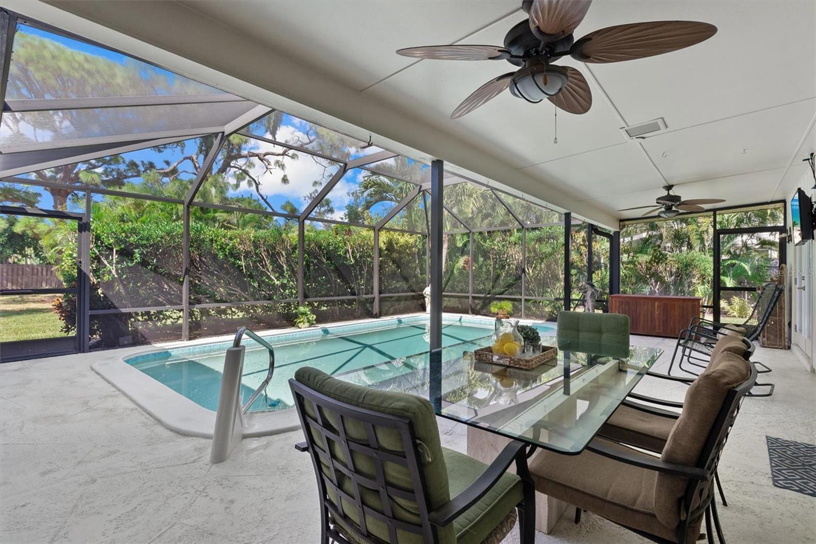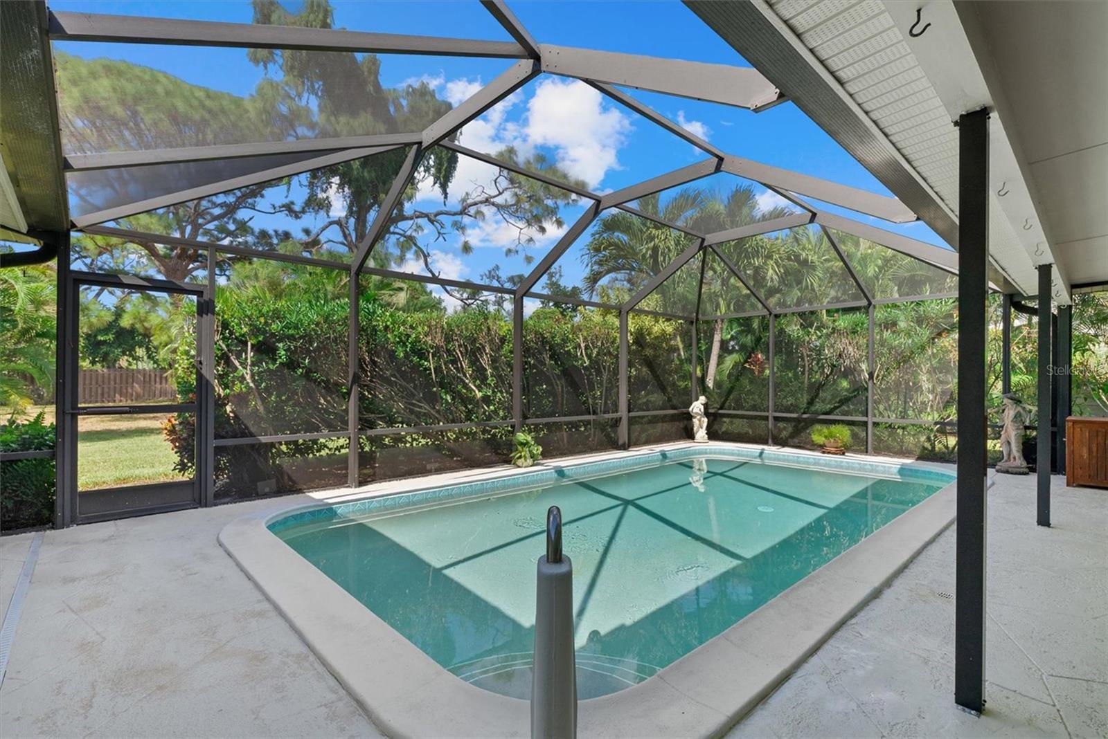 Under contract-accepting backup offers. Just minutes from Venice Beach and the charming downtown shopping and dining district, this four-bedroom, two-bath pool home with a three-car garage blends comfort, style, and convenience as well as a beautiful sunset at days end. Go inside to find a light-filled layout designed for relaxed Florida living. The beautifully remodeled kitchen is the centerpiece of the home, showcasing Cambria quartz countertops, a professional-grade Thermador six-burner gas range, high-end stainless appliances, and two dual-zone wine coolers, ideal for casual meals and entertaining. A thoughtfully reimagined pantry adds storage and function. The primary suite feels like a private retreat with hurricane-rated French doors that lead out to the pool for a little moonlight swim. For those who like it a little cooler while sleeping, there is a separate mini split for the primary bedroom, so you don't have to cool the whole house. The updated primary bath features marble-topped double vanity and spa-inspired Roman shower with built-in seating. The additional bedrooms offer flexible space for family, guests, or a home office, each filled with natural light and designed for comfort. For added closet space, one bedroom has built-in closet system, making it a huge walk-in closet if needed, otherwise remove and use as a fourth bedroom. Go outside to enjoy a private backyard retreat with lush landscaping and an extended pool deck, ideal for entertaining. The pool is designed for year-round enjoyment with a pool heater for the winter months and chiller for summer. A 12-by-10-foot Tuff shed with windows and shelving adds extra room for storage or hobbies. Terrazzo floors throughout the home preserve its mid-century character and timeless appeal. Whether intended as a primary residence, seasonal retreat or investment, this home offers exceptional versatility with features that support full-time living, extended stays or seasonal rental. With recent updates including a new roof (2024), HVAC (2022), Kohler 20-kilowatt generator with 500-gallon LP tank, new pool pump and filter (2024), and updated plumbing, this home is move-in ready, offering peace of mind and the relaxed coastal lifestyle you’ve been dreaming of.
