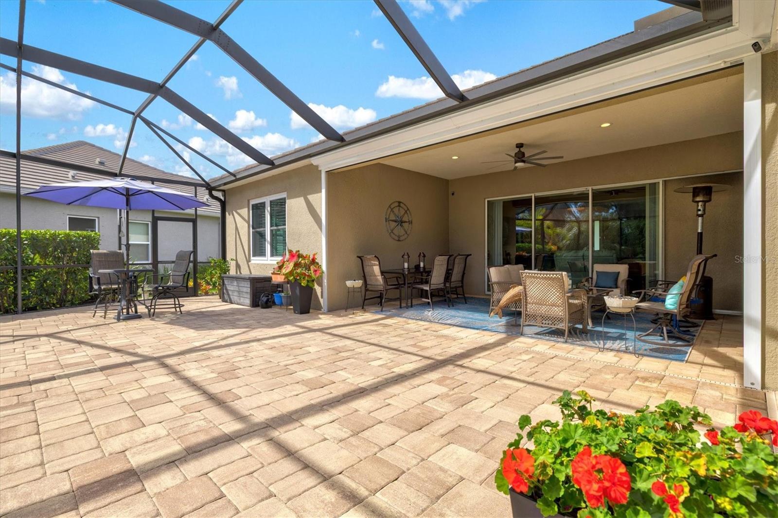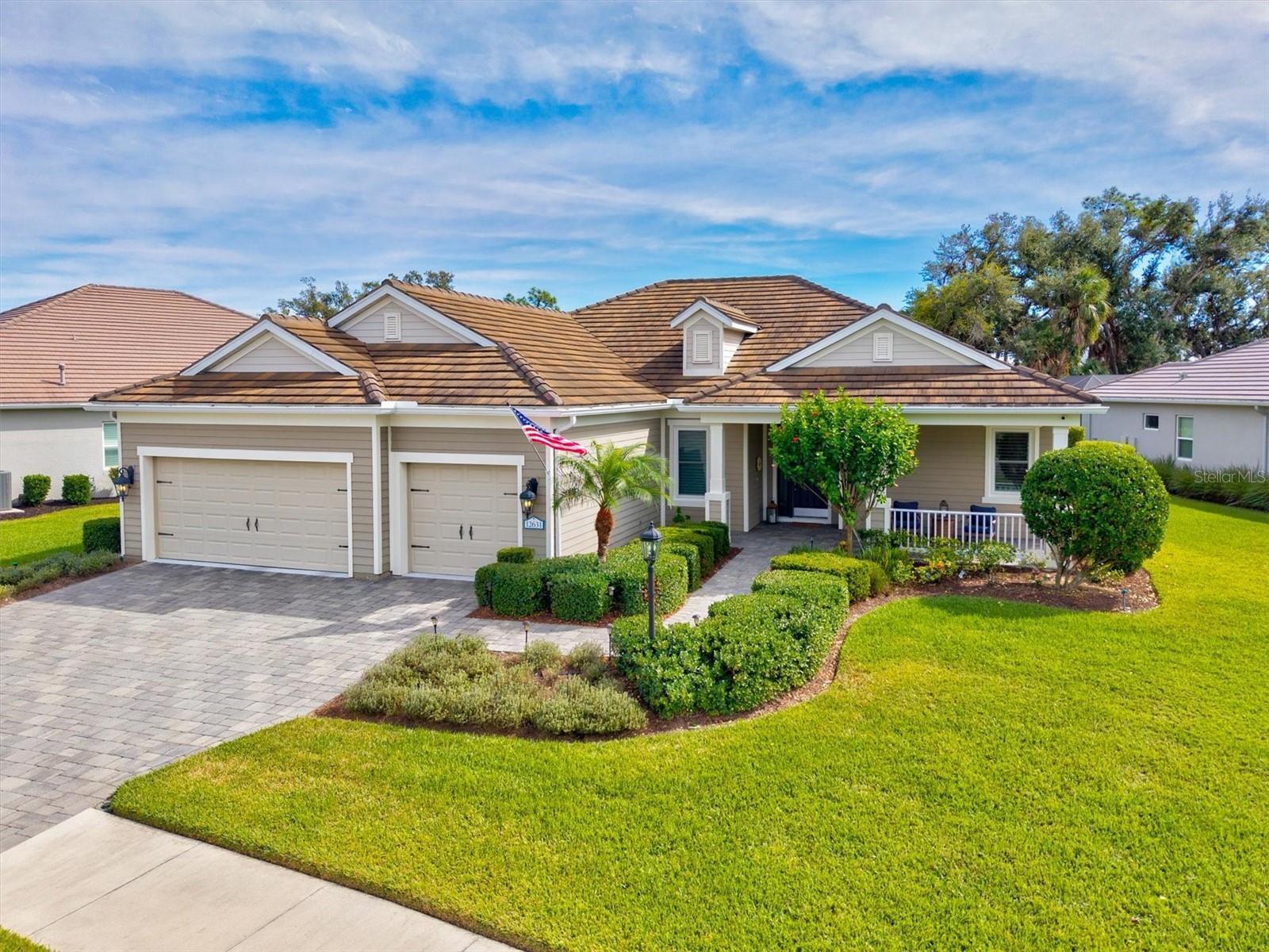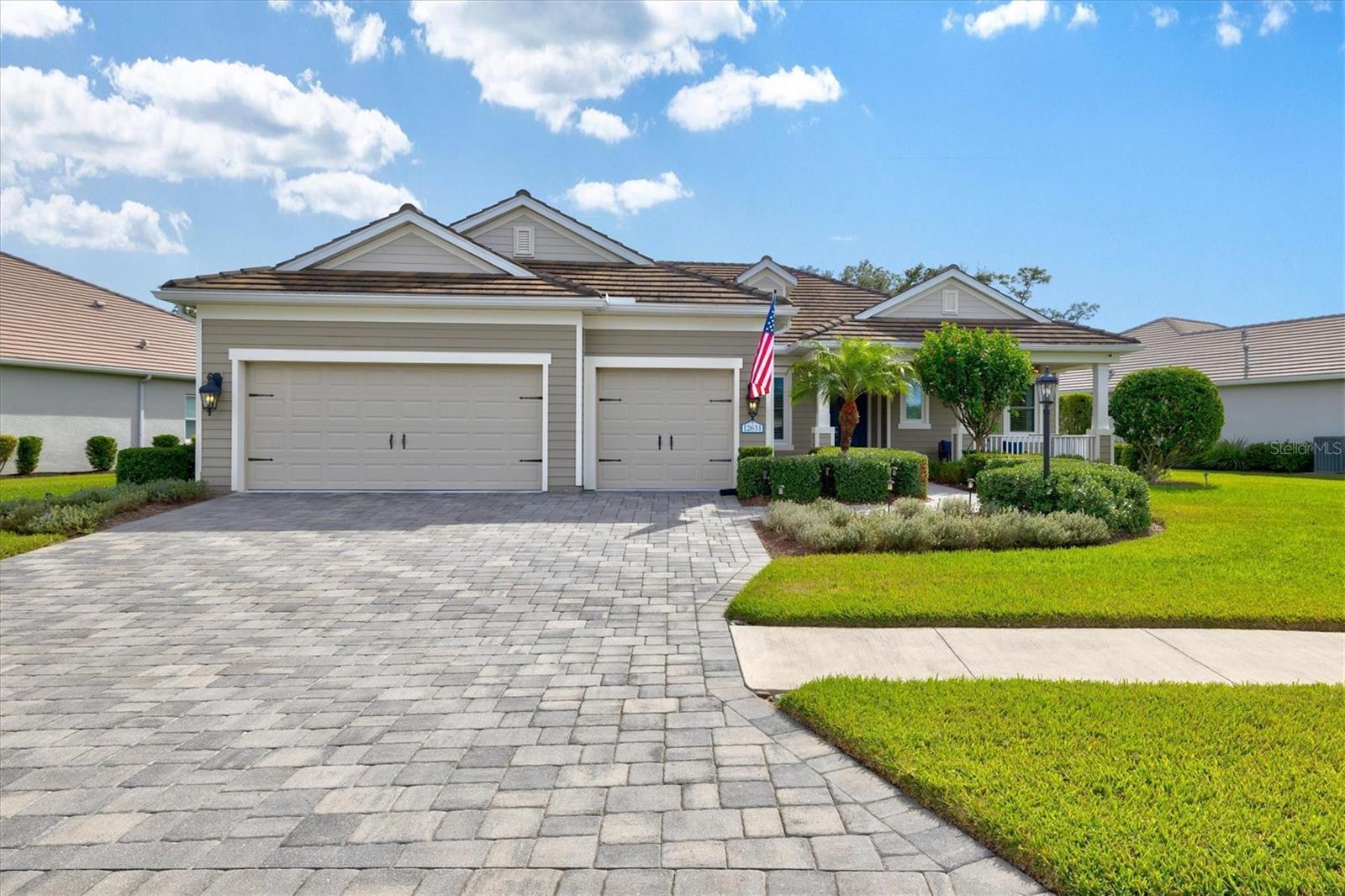 Under contract-accepting backup offers. Welcome to Grand Palm, a premier resort-style, natural gas community just minutes from Historic Downtown Venice, Gulf beaches, Wellen Park, and I-75. This original-owner home sits on an oversized, private lot and is not in a flood zone. One of Neal Communities’ most desired floor plans, the Sanibel, offers just over 2,500 interior square feet and 3,883 total square feet under roof, featuring three bedrooms, three full bathrooms, and a club room or den with an open and functional design. Curb appeal stands out with beautiful landscaping, a paver driveway and walkway, a covered front porch sitting area, a tile roof, and perfectly manicured grounds. Inside, the gourmet kitchen showcases quartz countertops, a tile backsplash, 42-inch shaker cabinets, soft-close drawers, pull-out shelving, a natural gas range with stainless vent hood, convection oven, motion-activated faucet, stainless steel appliances, and a walk-in pantry with custom shelving. The spacious primary suite features two large walk-in closets, dual vanities, a soaking tub, a walk-in shower, and elegant finishes. Custom closets are found throughout the home, including the pantry, providing exceptional organization and storage. Step outside to your private outdoor retreat featuring a fully screened lanai built in 2020 with a custom WaterScapes pool and spa, both gas heated and surrounded by pavers, overlooking a peaceful preserve and pond with mature landscaping that provides complete privacy. The lanai is also plumbed for an outdoor kitchen, perfect for entertaining or relaxing with your morning coffee. Additional highlights include plantation shutters, custom window treatments, roller and accordion blinds, ceramic tile flooring, engineered hardwood in the den, overhead storage in the three-car garage, new hurricane-impact windows, power Kevlar storm screens on the lanai, and a whole-house natural gas generator. This home has been impeccably maintained and is move-in ready, offering the perfect blend of luxury, comfort, and peace of mind. Residents enjoy a vibrant, amenity-rich community with a fitness center, dog park, splash pad, tennis, pickleball, bocce, volleyball, kayaking, fishing, and miles of walking and biking trails. The on-site activities director plans regular events including live music, food trucks, trivia nights, and movie nights, creating a true sense of connection and fun.
