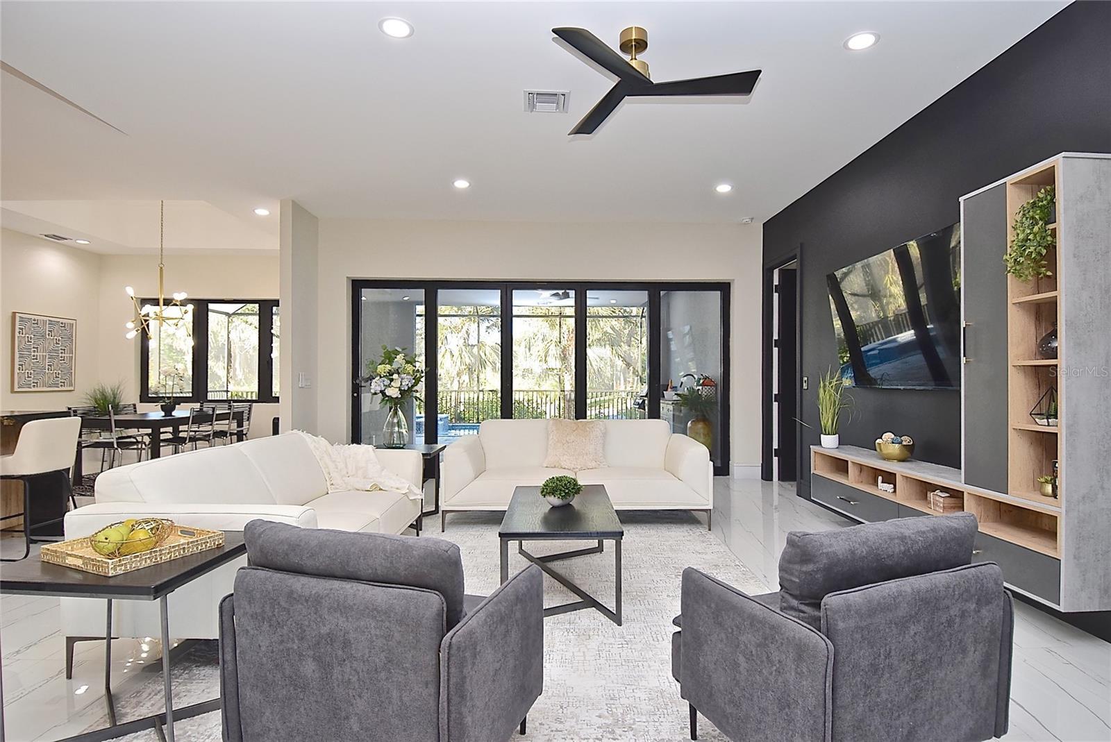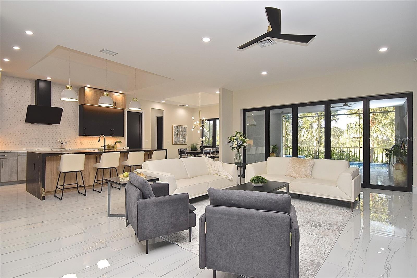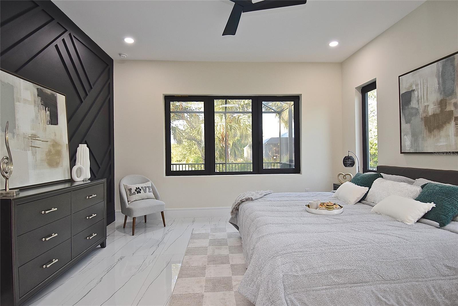 One or more photo(s) has been virtually staged. JUST STAGED WITH NEW PRICE REDUCTION AS WELL! MOTIVATED SELLER-BUILDER. A MUST SEE! Stunning BRAND-NEW Custom-Built Home in the gated Blackburn Estates on the Bay! Welcome to 4980 Top Sail Drive, a meticulously designed custom-built residence in the luxurious gated waterfront community of Blackburn Estates on the Bay. This modern coastal home showcases exceptional craftsmanship, elegant architectural detail, thoughtfully curated high-end finishes throughout and truly one-of-a-kind designer finishes throughout. Featuring three ensuites—two guest suites and a luxurious primary—plus a fourth bedroom and full bath at the front of the home, along with a true half bath off the lanai for easy pool access. The gourmet kitchen offers Bosch built-in convection oven and microwave, Bosch cooktop with range hood, custom floor to ceiling cabinetry, slate custom stone island with Kraus Kore stainless-steel sink, Bosch built-in dishwasher, and KitchenAid hidden cabinet refrigerator. A stylish butler’s pantry includes stone counters, Kraus stainless-steel sink, cabinetry and Frigidaire Chez Vous side-by-side refrigerator. Enjoy the expansive lanai with built-in outdoor kitchen, grill, and includes a Whynter 24” dual-zone wine and beverage cooler—perfect for entertaining, located under the covered lighted area and ceiling fan, directly beside the serene custom lap pool with attached spa overlooking the lake. Premium details throughout this home include Moen bath sinks, quartz and high-end stone countertops, Hansgrohe showers with floor to ceiling tile walls and framed glass doors, ALUPROF impact sliders, DDRUTEX impact windows, epoxy garage floor, LG Smart washer/dryer, Yale smart lock on custom front door, and York HVAC system. This is an extremely rare opportunity to own such a high-end custom home in the most desirable of locations, surrounded by multi-million-dollar custom homes along the Intracoastal Waterway, complete with private kayak launch, fishing dock, and kayak/canoe storage. A modern coastal masterpiece, this brand-new home defines Florida's waterfront luxury living. Call today for your private showing before it’s gone!