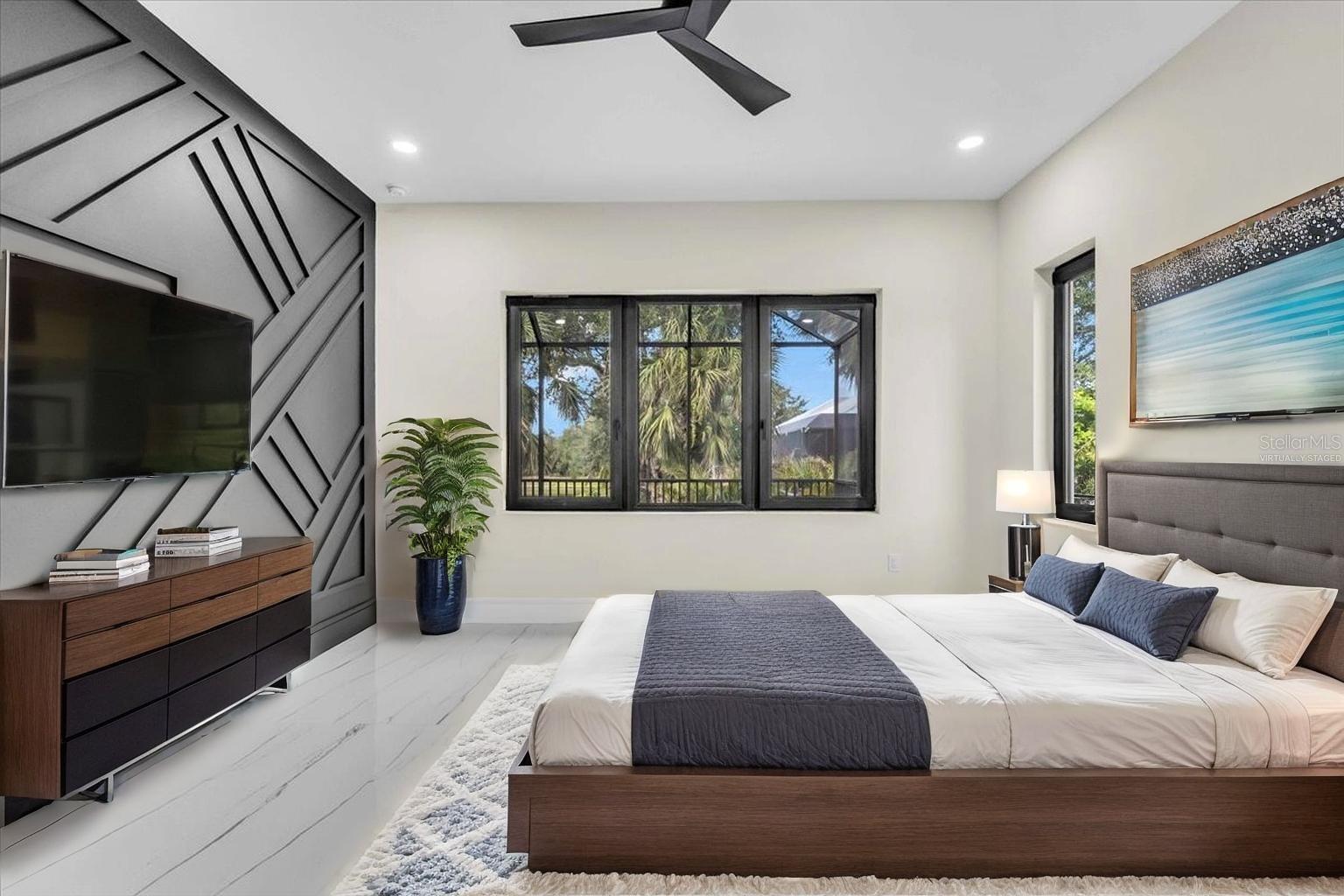 One or more photo(s) has been virtually staged. MOTIVATED SELLER-BUILDER. NEW PRICE!! Stunning BRAND-NEW Custom-Built Home in the gated Blackburn Estates on the Bay! Welcome to 4980 Top Sail Drive, a meticulously designed custom-built residence in the luxurious gated waterfront community of Blackburn Estates on the Bay. This modern coastal home showcases exceptional craftsmanship, elegant architectural detail, thoughtfully curated high-end finishes throughout and truly one-of-a-kind designer finishes throughout. Featuring three ensuites—two guest suites and a luxurious primary—plus a fourth bedroom and full bath at the front of the home, along with a true half bath off the lanai for easy pool access. The gourmet kitchen offers Bosch built-in convection oven and microwave, Bosch cooktop with range hood, custom floor to ceiling cabinetry, slate custom stone island with Kraus Kore stainless-steel sink, Bosch built-in dishwasher, and KitchenAid hidden cabinet refrigerator. A stylish butler’s pantry includes stone counters, Kraus stainless-steel sink, cabinetry and Frigidaire Chez Vous side-by-side refrigerator. Enjoy the expansive lanai with built-in outdoor kitchen, grill, and includes a Whynter 24” dual-zone wine and beverage cooler—perfect for entertaining, located under the covered lighted area and ceiling fan, directly beside the serene custom lap pool with attached spa overlooking the lake. Premium details throughout this home include Moen bath sinks, quartz and high-end stone countertops, Hansgrohe showers with floor to ceiling tile walls and framed glass doors, ALUPROF impact sliders, DDRUTEX impact windows, epoxy garage floor, LG Smart washer/dryer, Yale smart lock on custom front door, and York HVAC system. This is an extremely rare opportunity to own such a high-end custom home in the most desirable of locations, surrounded by multi-million-dollar custom homes along the Intracoastal Waterway, complete with private kayak launch, fishing dock, and kayak/canoe storage. A modern coastal masterpiece, this brand-new home defines Florida's waterfront luxury living. Call today for your private showing before it’s gone!