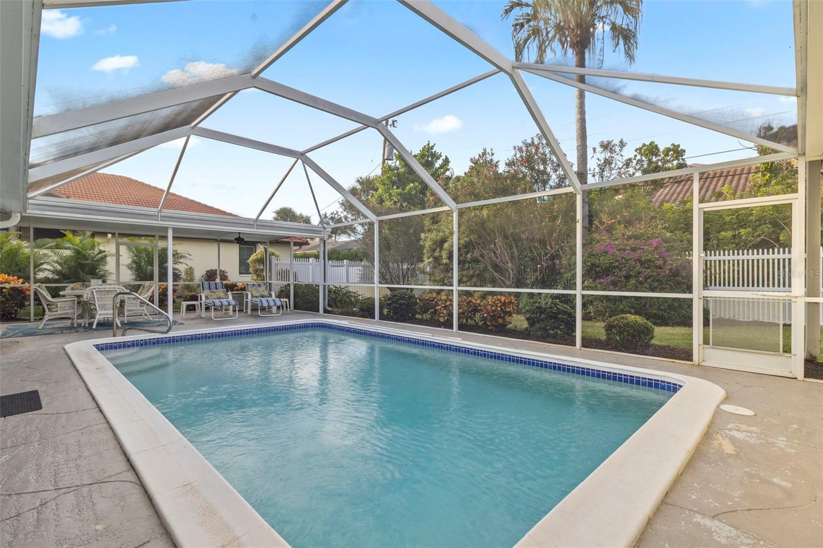 Welcome to 440 Darling Drive, a beautiful 3-bedroom, 3-bath pool home perfectly positioned on Venice Island — just steps from the Gulf of Mexico. Offering a seamless blend of coastal comfort and island charm, this home makes an exceptional beach retreat, winter getaway, or year-round residence. From the moment you arrive, the circular driveway and lush tropical landscaping create a warm, welcoming impression. Inside, enjoy dual living spaces that provide flexibility for entertaining or relaxing. The kitchen and main living area open directly to the screened-in pool and patio, where you can unwind in privacy within the fenced backyard. The pool was resurfaced in 2020, offering a sparkling outdoor centerpiece for endless sunshine and relaxation. The primary suite is a tranquil escape featuring a large walk-in closet and a sitting area overlooking the pool, perfect for morning coffee or quiet evenings. Both guest bedrooms are generously sized, with one offering a private en-suite bathroom — ideal for visitors seeking their own space. Beyond the home itself, the location is unbeatable. You’re just one mile from the iconic Venice Fishing Pier, home to two popular waterfront restaurants and ample beach parking for easy access to sun and surf. Only 1.5 miles away lies Lake Venice Golf Club, where you can enjoy a round of golf surrounded by ocean breezes — because golfing on an island truly is as good as it sounds. Living on Venice Island means you’re moments from historic downtown Venice, lined with boutique shops, local cafés, and fine dining. You’ll also find scenic walking and biking trails, charming parks, and cultural attractions like the Venice Theatre, all within easy reach. Best of all, this home is not in a flood zone, offering peace of mind and everyday convenience. Whether you’re dreaming of a coastal cottage, a seasonal retreat, or your forever home, 440 Darling Drive captures the essence of island living at its finest — where every day feels like a vacation.