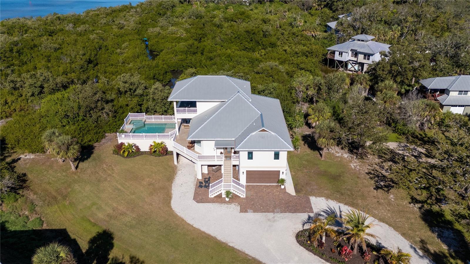 STUNNING COASTAL RETREAT WITH TWO BUILDABLE LOTS & GORGEOUS WATER VIEWS! Experience the best of coastal living in this newer construction Englewood home, offering breathtaking water views and an unbeatable location just ½ mile from Manasota Beach. This property includes two buildable lots totaling 0.81 acres - the adjoining vacant lot has already been cleared and upgraded with $30,000 in professional landscaping and site work, all included in the sale. This dream retreat blends modern design, luxury finishes, and thoughtful 2024 upgrades, including a new garage door, new elevator, fresh interior paint, and new bedroom flooring (no carpet!). Impact windows and doors, a central vacuum system, motorized screens on the 3rd floor, and quality finishes throughout elevate the home even further. On the ground level, the oversized garage accommodates multiple vehicles and includes a separate storage area that’s already plumbed and wired - perfect for converting into an additional bedroom and bathroom if desired. The second level features a bright open-concept layout connecting the kitchen, living, and dining areas. The chef’s kitchen offers a large island with breakfast bar, quartz countertops, high-end appliances, and a gas range - ideal for cooking and entertaining. This level also includes a half bath, a hobby room, and two spacious bedrooms, each with its own en suite bath for optimal privacy and comfort. The entire third level is a dedicated primary suite with incredible water views from a covered balcony overlooking the heated pool and spa. This private sanctuary includes a spacious bedroom, walk-in closet, and a spa-like bathroom with a beautiful shower. Step outside to your private outdoor oasis, featuring a heated pool with spa and sun shelf, motorized screens, a stunning outdoor fireplace, and a fully equipped outdoor kitchen - perfect for year-round indoor-outdoor living. Just minutes from the pristine sands and turquoise waters of Manasota Beach, this home offers endless opportunities for swimming, boating, snorkeling, and enjoying Florida sunshine. One mile away is the Manasota Key boat ramp for water access and only minutes for access to the Gulf! This property delivers the full Florida lifestyle: luxury living, modern updates, and the rare bonus of two buildable lots for added privacy, flexibility, and long-term value. Don’t miss the chance to own this exceptional Englewood coastal retreat where comfort, tranquility, and water views come together in perfect harmony. A must-see in person to truly appreciate!