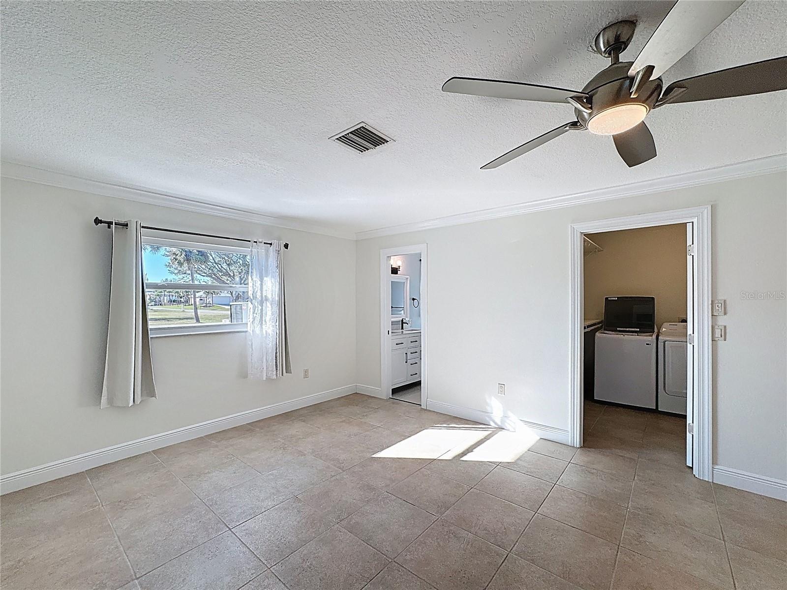 - Ceiling Fans(s), Kitchen/Family Room Combo, Primary Bedroom Main Floor, Solid Wood Cabinets, Split Bedroom, Stone Counters, Thermostat, Walk-In Closet(s), Window Treatments