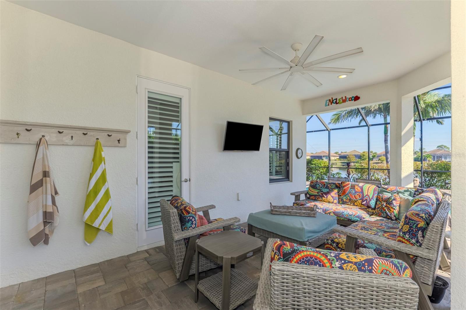 Some homes make an impression. This one makes a statement—quietly, confidently, and with unmistakable refinement. From the moment you arrive, the brick-paver drive, mature palms, and sculpted coastal landscaping set a tone that feels more like a private resort than a residential street. Inside, the atmosphere is immediate: light-filled, serene, and impeccably finished. Large-format tile, soft coastal palettes, and clean architectural lines create a modern, elevated aesthetic that feels both current and timeless. The open great room plan flows effortlessly through the living area, dining space, and chef’s kitchen—ideal for everyday living yet designed with the scale and polish to host with ease. The kitchen is a true centerpiece, featuring premium cabinetry, luminous quartz countertops, a high-end gas appliance suite, and a breakfast nook positioned to capture tranquil morning light over the water. Just beyond, a Butler’s Pantry provides discreet prep and staging space—an entertainer’s asset that keeps the main living areas pristine during gatherings. A thoughtfully placed drop zone near the entry maintains organization without interrupting the home’s clean presentation. Fully pocketing triple-panel glass doors dissolve the boundary between indoors and out, revealing an expansive covered lanai and a private, resort-style setting. The heated pool with sun shelf, soothing water features, and lush tropical landscaping create a sense of seclusion and movement, while the outdoor kitchen allows seamless poolside dining and entertaining. With the lake as a backdrop, the views at sunrise and dusk are nothing short of cinematic. The owner’s suite occupies its own tranquil wing, offering plantation shutters, custom wardrobe systems, and a spa-inspired bath with oversized glass shower and dual quartz vanities—an elegant retreat designed for restoration. The guest accommodations echo the same level of finish, with two beautifully appointed bedrooms, custom closets, and a refined full bath. A dedicated office with built-in features provides a sophisticated workspace that blends function and design. Practical luxury is equally well addressed: an oversized laundry with additional storage, an extended 20x22 garage suitable for a golf cart or workshop, impact-rated doors and windows throughout, whole-house water filtration, and a full-house generator—features rarely found together and invaluable in both daily living and storm season. Set within the gates of Boca Royale Golf & Country Club, residents enjoy access to championship golf, tennis, pickleball, fitness, dining, social clubs, and a resort-style pool, all just minutes from Venice, Englewood, Boca Grande, and the Gulf’s renowned beaches. This is a home defined by composure and quality—never ostentatious, always intentional. For buyers seeking polished design, privacy, and true move-in-ready luxury in one of Southwest Florida’s most desirable communities, this residence stands apart.