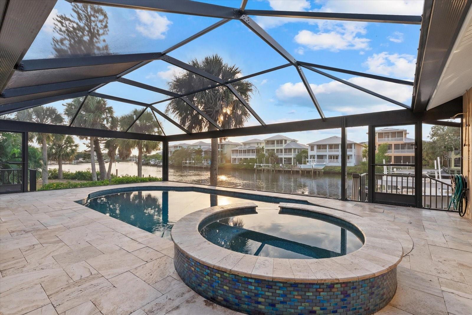 DOCK AND 16,000 LB BOAT LIFT! GULF ACCESS! PRIVATE POOL! IMPACT GLASS! Experience the Florida lifestyle of coastal living at 1461 Marlin St, Nokomis - an elevated and updated waterfront retreat boasting over $300,000 in enhancements. Highlights include: AC, water heater, pool equipment with WIFI automation (2024); hurricane impact windows and doors, new garage door, new pool cage with panoramic screens, home re-piped and updated bathrooms (2018); METAL roof, pool resurfaced and new travertine pool deck (2017) – the list goes on! Perfectly positioned at the end of a tranquil cul-de-sac, with over a 1/3 of an acre, this Nokomis residence offers an extraordinary blend of sophistication, privacy, and true Gulf-access living along the serene waters of Shakett Creek. Step inside this waterfront 3-bedroom, split floor plan home to discover water views and a bright interior adorned with tile flooring, plantation shutters, and HURRICANE IMPACT GLASS throughout. Every detail has been thoughtfully elevated, including beautifully renovated bathrooms, one of which offers effortless pool access to complement the home’s indoor-outdoor lifestyle. The primary bedroom features water views with sliding glass doors for pool access, large walk-in closet with custom shelving, updated primary bathroom with dual vanities, updated shower with a separate soaking tub and a private water closet. The guest bedroom positioned at the rear of the home also features sliding glass doors for pool access and sunset water views! The updated guest bathroom is complete with easy pool access! Your private outdoor sanctuary rivals a luxury resort—featuring a NEWER pool cage with panoramic screens to enjoy unobstructed water and sunset views, NEWER travertine tiled pool deck, recently resurfaced sparkling solar HEATED pool, and a dock with a 16,000-lb boat lift. Whether you’re relaxing poolside, cruising to the Gulf, launching your paddleboard or kayak, casting a line from your dock or savoring quiet water views, this waterfront setting is unmatched. While the home is on public water, there is a private well for all your irrigation needs. Ideally located near Nokomis Beach, downtown Venice, Venice Beach, Sarasota Memorial Hospital, with easy I-75 access, this GULF ACCESS home offers both exclusivity and unbeatable convenience. With its extensive updates, premier waterfront access, and elevated design, this exceptional residence delivers a rare opportunity to own a true coastal haven.