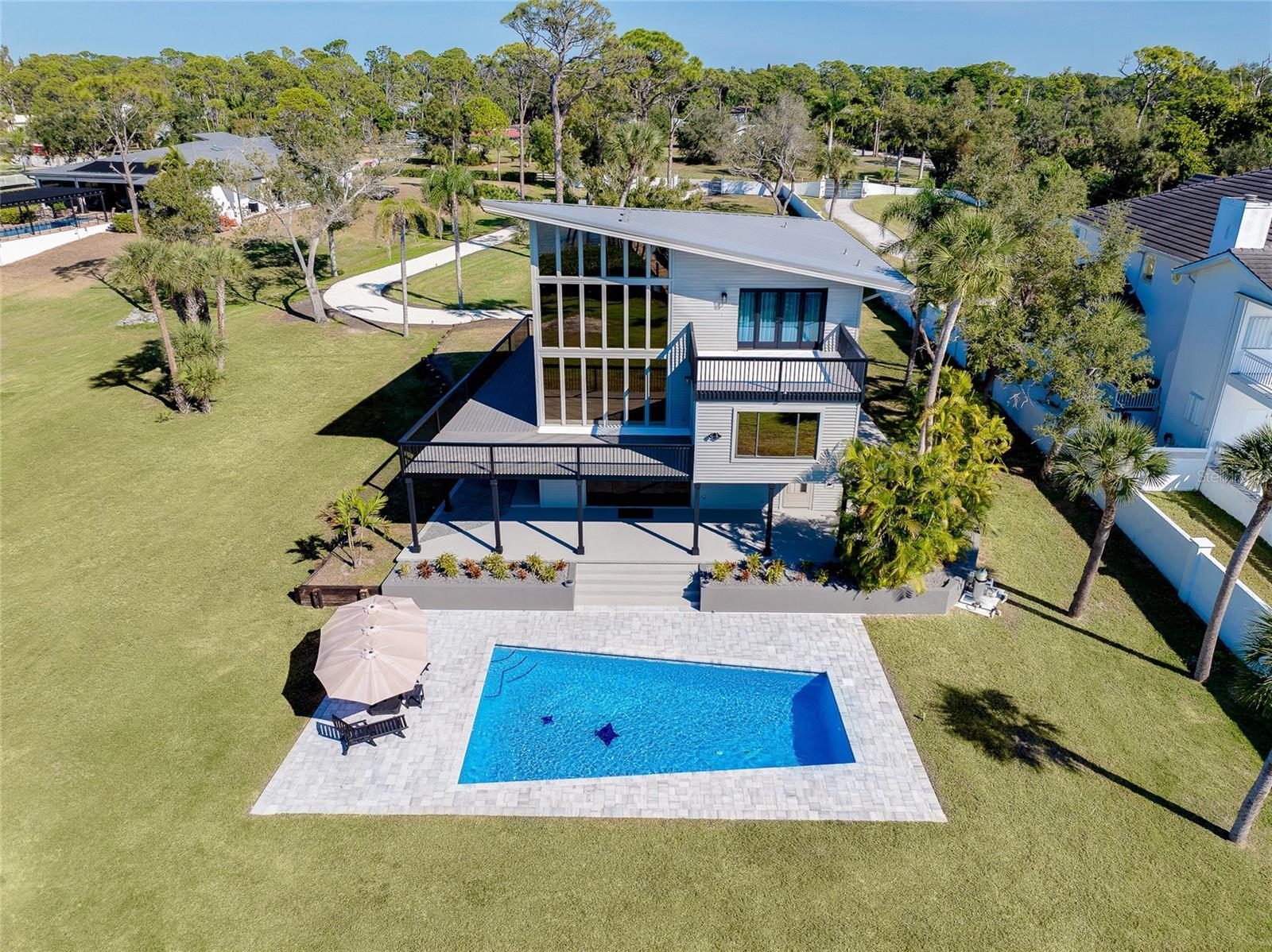 Waterfront Legacy Estate on 1.57 Acres with Dock, Bay Views & Income Potential An extraordinary waterfront sanctuary spanning 1.57 acres with more than 200 feet of pristine Bay frontage, this exceptional estate commands breathtaking views across Lemon Bay and offers a rare blend of privacy, elegance, lifestyle and long-term opportunity. Arrive through a gated entrance and sweeping circular drive to discover a secluded coastal retreat framed by mature, thoughtfully curated landscaping. Fully furnished and impeccably presented, the residence is designed for effortless waterfront living — whether hosting family gatherings, welcoming guests arriving by boat, or enjoying quiet mornings watching the water awaken from your private balcony. Inside, soaring 23-foot floor-to-ceiling windows create a dramatic sense of scale while perfectly capturing the shimmering Bay beyond. The open-concept great room flows seamlessly into the gourmet kitchen and refined dining space, ideal for entertaining on any scale. The chef’s kitchen is a showpiece, featuring brand-new premium appliances including double wall ovens, a warming drawer, wine cooler, French-style refrigerator, granite-adorned center island and bespoke finishes throughout. Four beautifully appointed bedrooms and three luxurious bathrooms include a serene primary suite with its own private water-view balcony — a peaceful haven overlooking the Bay. Outdoor living is equally compelling. Expansive decks spill toward the resort-style pool, newly upgraded equipment and sun-soaked entertaining zones creating a seamless indoor-outdoor experience. A brand-new metal roof provides both architectural finish and long-term peace of mind. At the water’s edge, a newly constructed private dock offers direct Bay access — perfect for cruising Lemon Bay, kayaking at sunrise, or welcoming friends arriving by boat for sunset drinks beside the pool. The lower level features walk-out access to the pool terrace along with a convenient laundry and pool bath, making entertaining and waterfront living completely effortless. A Rare Opportunity for Future Growth & Income Beyond its immediate lifestyle appeal, the expansive acreage presents outstanding potential for long-term wealth creation. The generous grounds invite consideration for a guest residence, subdivision or luxury retreat accommodation — opening the door to Airbnb income streams or multigenerational living in a premier waterfront setting (subject to local approvals). Optional membership to the Englewood Gardens Beach Club further elevates the offering, granting access to a private beachfront clubhouse, gazebo with gas grills, Bayfront kayak launch, storage facilities and complimentary beach parking. From sun-drenched afternoons by the pool to evening cruises across the Bay, every detail of this property has been designed to inspire tranquility, prosperity and lasting memories. This is more than a home. It is a waterfront legacy — a place where lifestyle, luxury and long-term vision converge.