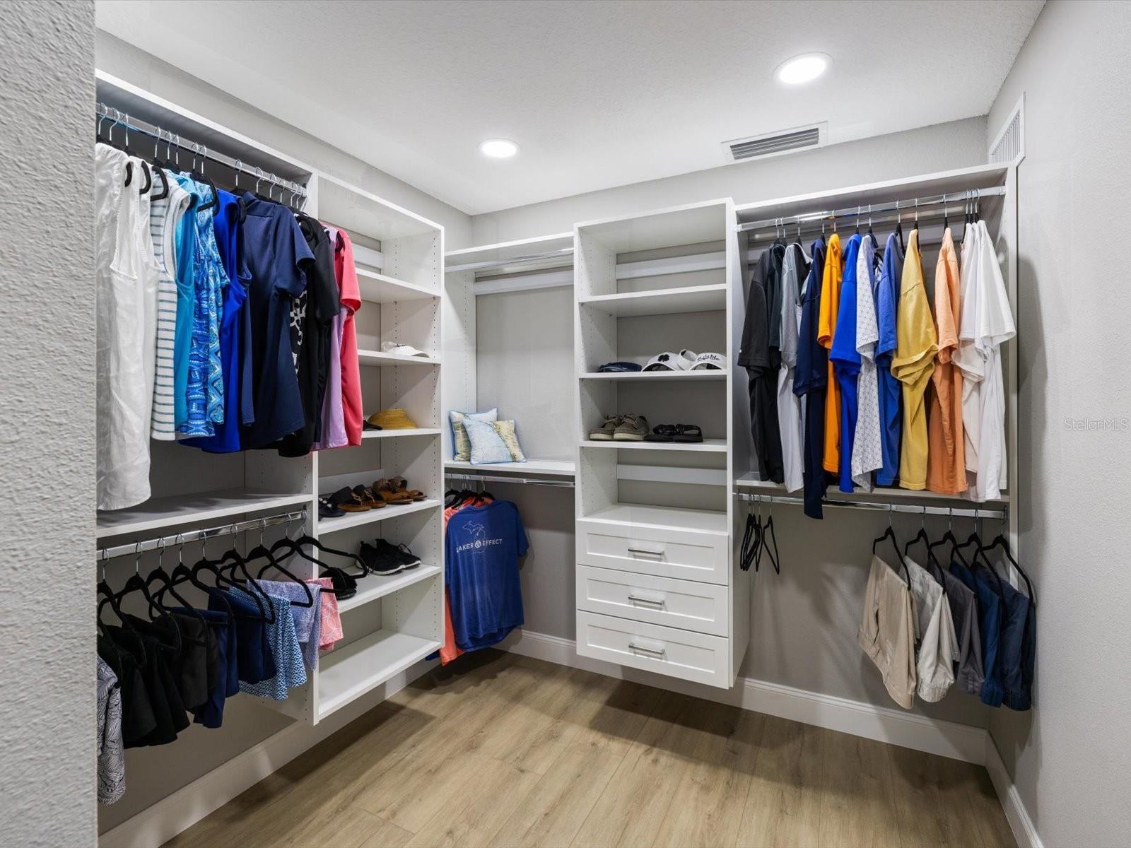 - Built-in Features, Ceiling Fans(s), Eat-in Kitchen, Open Floorplan, Primary Bedroom Main Floor, PrimaryBedroom Upstairs, Solid Wood Cabinets, Split Bedroom, Stone Counters, Thermostat, Walk-In Closet(s)