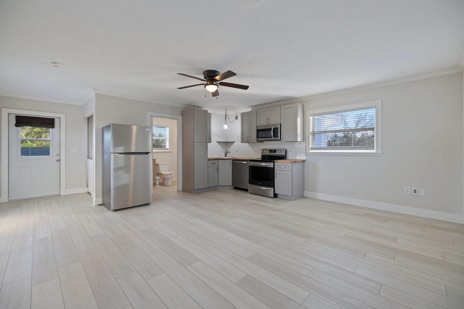 Welcome to your private luxury retreat on Venice Island, where coastal elegance meets exceptional craftsmanship. This stunning residence has been completely remodeled from top to bottom, offering peace of mind, refined finishes, and effortless island living just moments from the beach and downtown Venice. Step inside to discover a show stopping chef’s kitchen designed for both everyday living and entertaining. Custom solid wood cabinetry with dovetail soft close drawers is paired with a spacious walk in pantry and a thoughtfully designed wine and coffee bar. High end KitchenAid stainless steel appliances from 2023 include an induction cooktop, convection oven, microwave, two dishwashers, and a wine refrigerator creating a kitchen as functional as it is beautiful. Every detail of the home reflects quality and sophistication, from luxury finishes and upgraded bathrooms to a cohesive modern design throughout. Major systems have been fully updated, including electrical, air ducts, interior plumbing, drain and water lines, and underground plumbing to the street completed between 2022 and 2023, providing confidence and long term reliability. The primary bedroom is conveniently located on the first floor and features a spacious layout with a spa inspired ensuite bath, offering comfort, privacy, and ease of living. Additional bedrooms provide flexible space for family, guests, or a home office. Convenience is unmatched with two laundry rooms, one on each level, plus an additional laundry area in the fully remodeled studio apartment above the garage. Interior upgrades include moisture resistant luxury vinyl plank flooring, new drywall and paint, LED lighting, solid core interior doors, hurricane rated exterior doors completed in 2023, plantation shutters from 2023, Hunter Douglas VertiGlide shades added in 2024, and custom closet systems by Sunset Closets from 2024. A Ring camera system added in 2023 enhances security and peace of mind. Outside, the property is equally impressive with Hardie Board siding, a 50 year metal roof installed in 2023, PGT hurricane rated Low E windows added in 2023, new gutters from 2023, and a beautifully finished paver driveway completed in 2023. The backyard is a true island oasis featuring a 15 by 28 foot Aquatec saltwater pool with PebbleTec finish, sun shelf, heater, and no see um screened enclosure completed in 2023 perfect for year round enjoyment. Lush landscaping, vinyl fencing, and concrete epoxy finishes in the carport, porch, and garage complete the outdoor spaces. Adding even more value is a fully remodeled studio apartment above the garage ideal for guests, multi generational living, or rental income. A separate gated entrance provides secure storage for a boat or RV, a rare and highly desirable feature on the island. Located in a preferred X flood zone, flood insurance is not required. Just a short walk to Venice’s pristine beaches, charming downtown, dining, and shopping, this exceptional home offers the ultimate combination of luxury, location, and lifestyle.