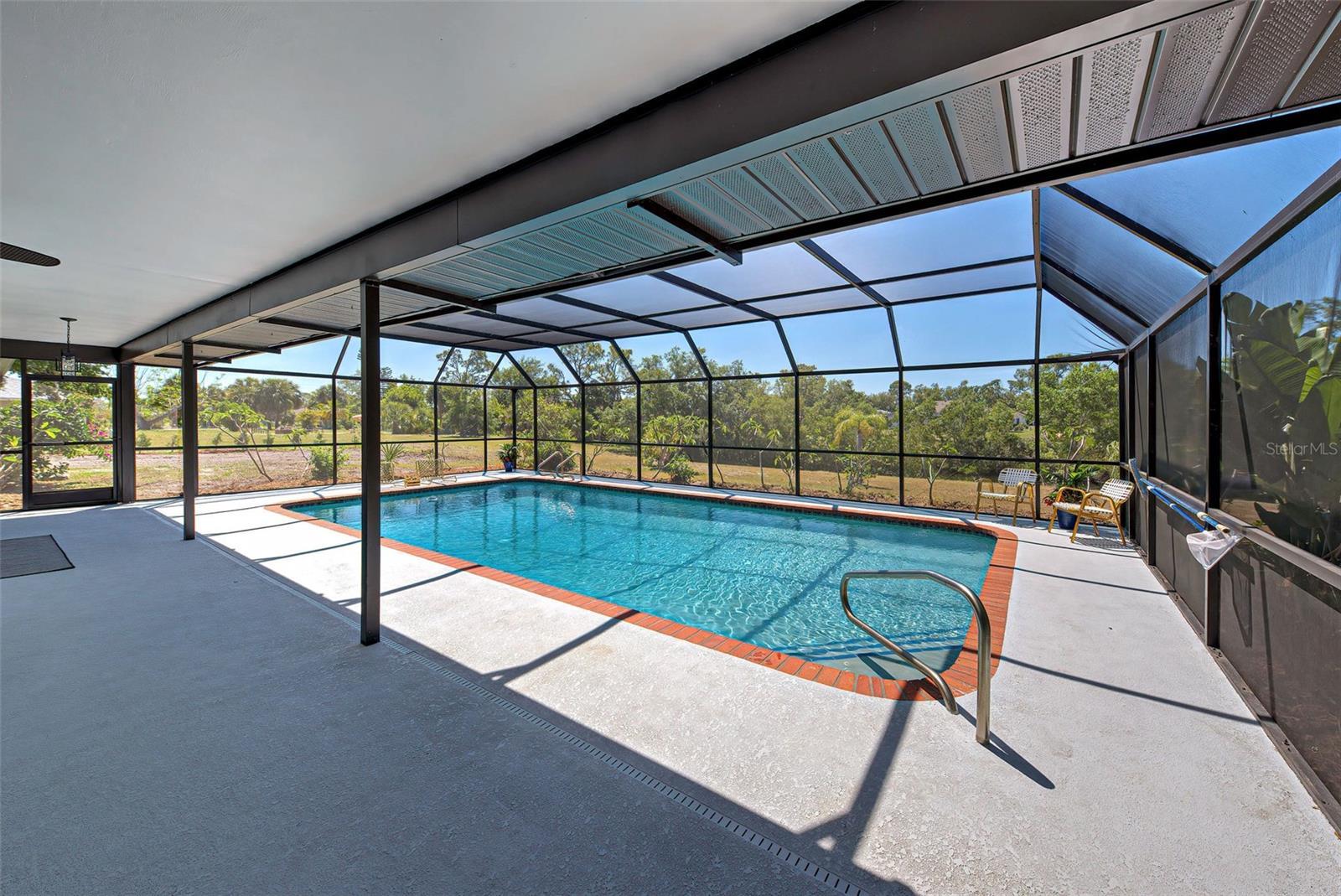 PRICE REDUCTION!! 1+ ACRE HOMESTEAD with MASSIVE 3+ GARAGE. MORE THAN $120k in UPGRADES and improvements makes this home a WINNER. Step away from the hustle and bustle of the city to the tranquility of this newly renovated (2024) Mid-century vibe home situated on a 1+ acre lot in Dale Lake Estates. NO HOA here or restrictions! This cul-de-sac street borders the MANASOTA SCRUB NATURE PRESERVE that is open to the public. Your back yard extends to the waters edge with approximately 200 ft of frontage where you can enjoy fishing, bird watching and you can paddle down to Dale Lake and beyond. When you enter the home you will be drawn right out through to the family room through large sliding glass doors to the large screened lanai and swimming pool (32 x15) with beautiful views of the spacious back yard. ENJOY PEACE OF MIND WITH YOUR NEW POOL CAGE (2/25) with hurricane code rating. Enjoy the glow of the double sided fireplace from the living room and into the family room. This home has been entirely upgraded. (See list of upgrades in the Attachments) The kitchen features all new Solid Maple cabinetry, Stainless appliances and Silestone Quartz countertops. The kitchen has an eat in area for casual dining and access to the formal dining room. Luxury vinyl flooring through the living room, formal dining room and kitchen. This home has freshly painted exterior and interior walls and ceilings. The home features 3 bedrooms and 3 full baths. The 3rd bath has access from the back yard off of the pool and from the garage. The bathrooms have been fully renovated including tile work, sinks, toilets, light fixtures and vanities. Each bedroom has wood parquet floors and large deep closets. The primary bedroom has a large walk in closet (7ft x 6ft) with custom shelving. Plenty of storage in the Massive 3.5-car garage (1053 sq ft) with a new Epoxy floor has an additional bump out area where you can store kayaks, paddle boards and there is even room for a work shop. The washer, dryer and laundry tub are also located in this oversized garage. The home has 2 new AC units and 2 electric hot water heaters. Roof was replaced in 2022. New septic tank and drain field was completed 2023 and the property has a well for outside watering. Public water is supplied by Englewood Water Utilities. This is everything you dreamed of. Close to everything you need! You're close to Englewood or Venice for shopping, restaurants, beaches, hospitals and the new Wellen Park community with the Atlanta Braves Spring Training facility. You can walk or bike the 2.5 miles to Manasota Beach. Schedule your private showing today!