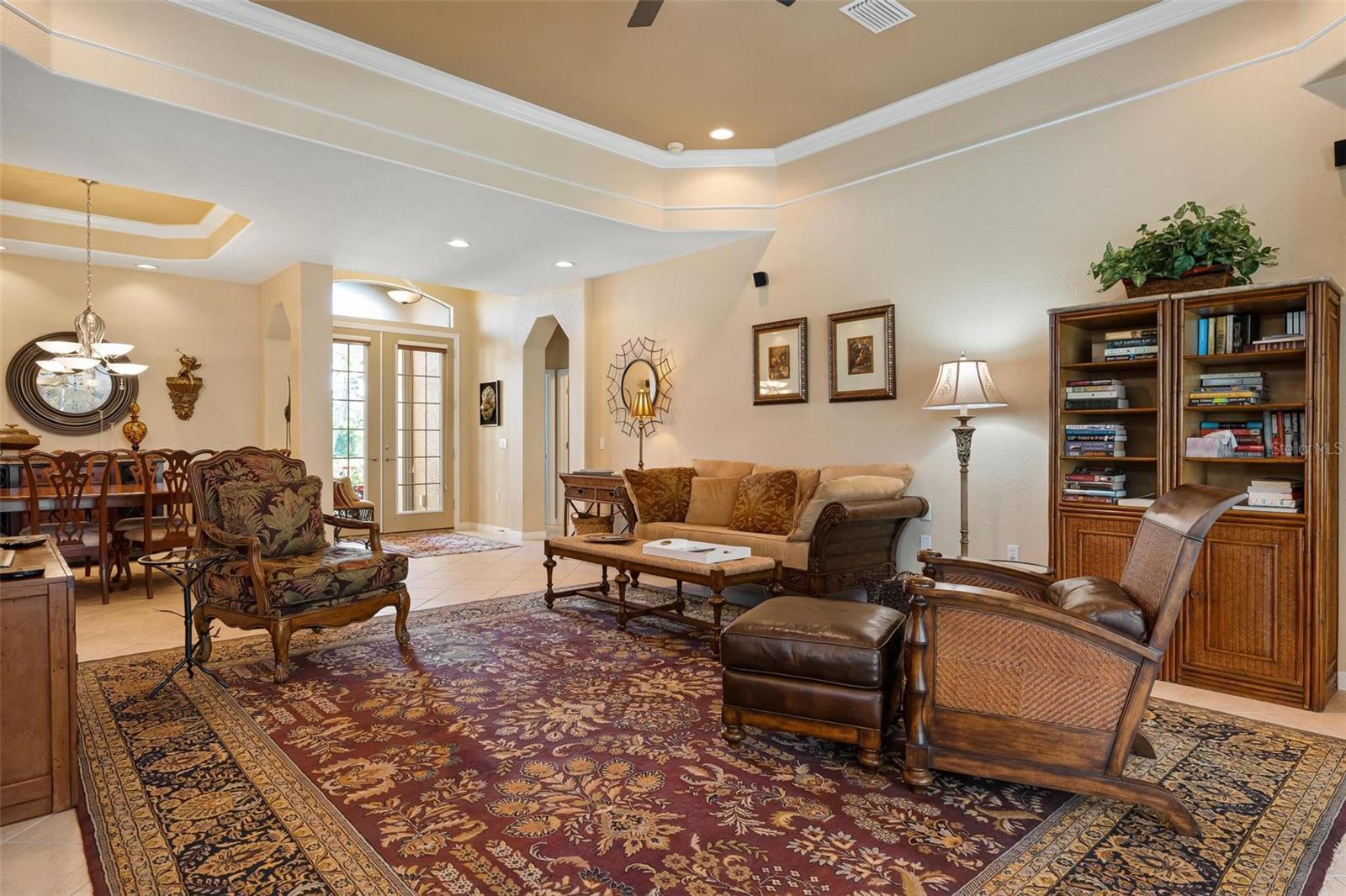 - Ceiling Fans(s), Crown Molding, Eat-in Kitchen, High Ceilings, Kitchen/Family Room Combo, Stone Counters, Tray Ceiling(s), Walk-In Closet(s), Window Treatments