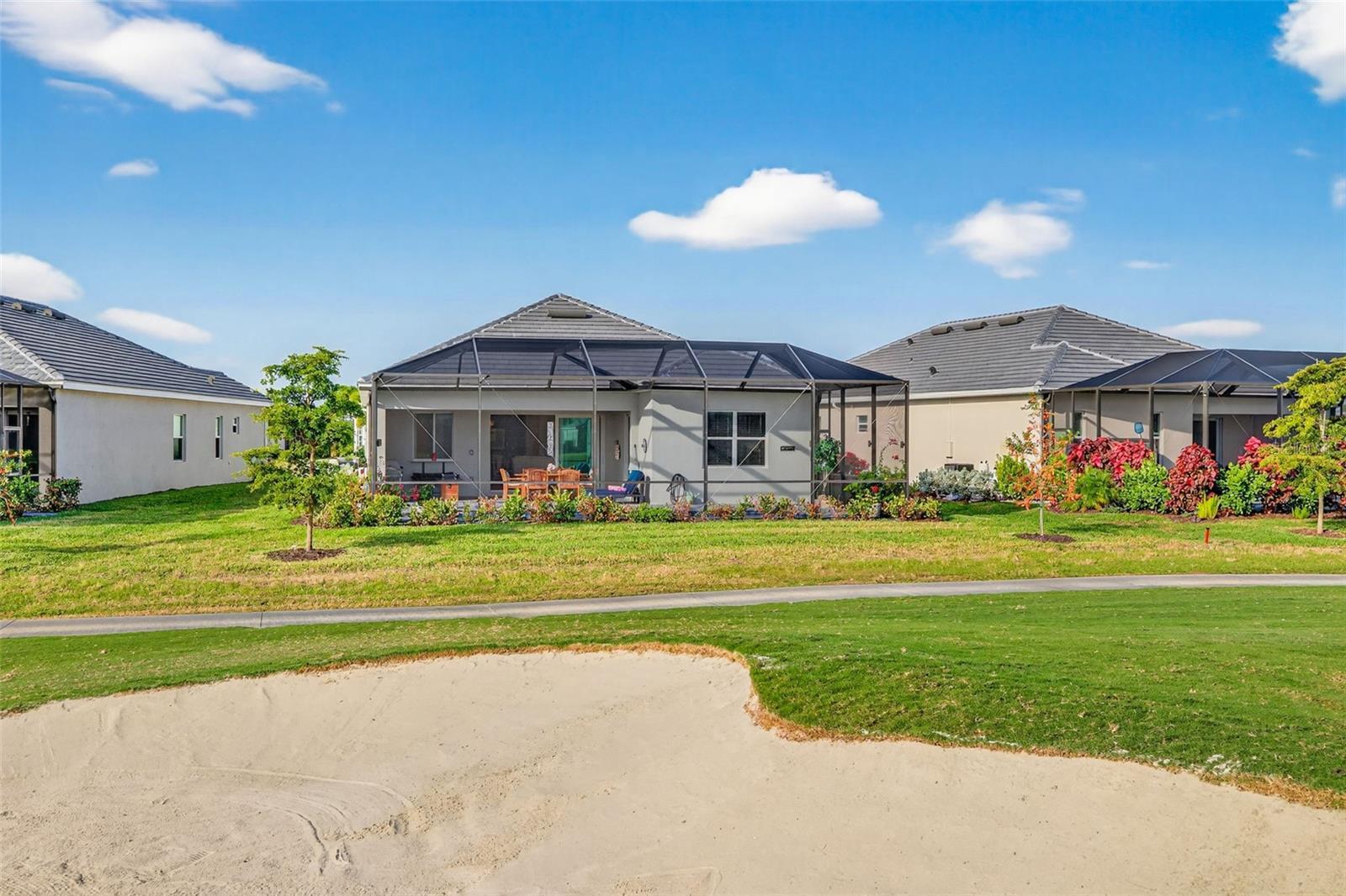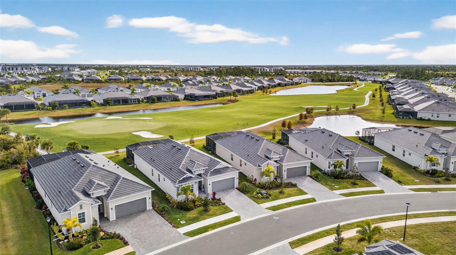 Under contract-accepting backup offers. Golf Course Elegance with Pool & Spa, built in 2024 — Includes Two Golf Memberships! Experience elevated Florida living in this luxury three-bedroom, two-bath residence offering 2,078 square feet of thoughtfully designed living space, ideally positioned on the 3rd green of Wellen Park Golf & Country Club. With sweeping golf course views, refined upgrades, and two golf memberships included, this home delivers the ultimate Southwest Florida lifestyle. A striking custom glass front door opens to an elegant foyer, immediately showcasing the home’s sophisticated design. Eight-foot doors throughout, upgraded paint, designer light fixtures, and four graceful tray ceilings enhance the upscale ambiance, while porcelain tile flooring in every room provides both beauty and durability. A unique decorative tile wall adds a custom architectural touch, and impact-resistant glass throughout offers peace of mind. The chef’s kitchen is a true showpiece, featuring quartz countertops, a distinctive designer marble backsplash with a pass-through window to the lanai, premium appliances, and unique kitchen features that elevate both style and function. Thoughtfully designed cabinetry, an oversized island that seats up to six, refined finishes, and an expansive layout make this kitchen ideal for entertaining and everyday luxury living. The open-concept living areas flow seamlessly through the triple sliding glass doors to the outdoor retreat, where a screened-in pool and spa overlook the 3rd green, perfect for taking in the sunrise and hosting sunset gatherings. The primary suite offers a tranquil escape with generous proportions, custom-designed closets, and a spa-inspired en-suite bath featuring a large walk-in shower, a soaking tub, and sliding glass doors leading to the lanai. At the same time, two additional bedrooms offer flexibility for guests and are conveniently located near the guest bathroom. Further highlights include a spacious laundry room with cabinets and a sink, a two-car garage featuring an epoxy-coated floor and built-in shelving, offering both style and functionality. Beyond the home, residents enjoy the exceptional lifestyle of Wellen Park Golf & Country Club, featuring a championship golf course, Tiki Bar serving food and drinks daily, and a grand clubhouse, resort-style pool, lap pool, state-of-the-art fitness center, yoga room, sauna, tennis, pickleball, bocce courts, full-service spa with nail and beauty services, and a vibrant calendar of social clubs and events. Just minutes away, Downtown Wellen Park offers a lively, walkable destination with waterfront restaurants, boutique shops, cafés, and entertainment set along a picturesque lake. Enjoy scenic walking and biking trails, lakefront paths, outdoor concerts, festivals, farmers' markets, and year-round community events that foster an active, connected lifestyle. This home is a great vacation home, offering low-maintenance luxury living near Downtown Venice, pristine Gulf beaches, shopping, dining, and Atlanta Braves Spring Training. This almost-new home won't last long! Schedule your showing today!