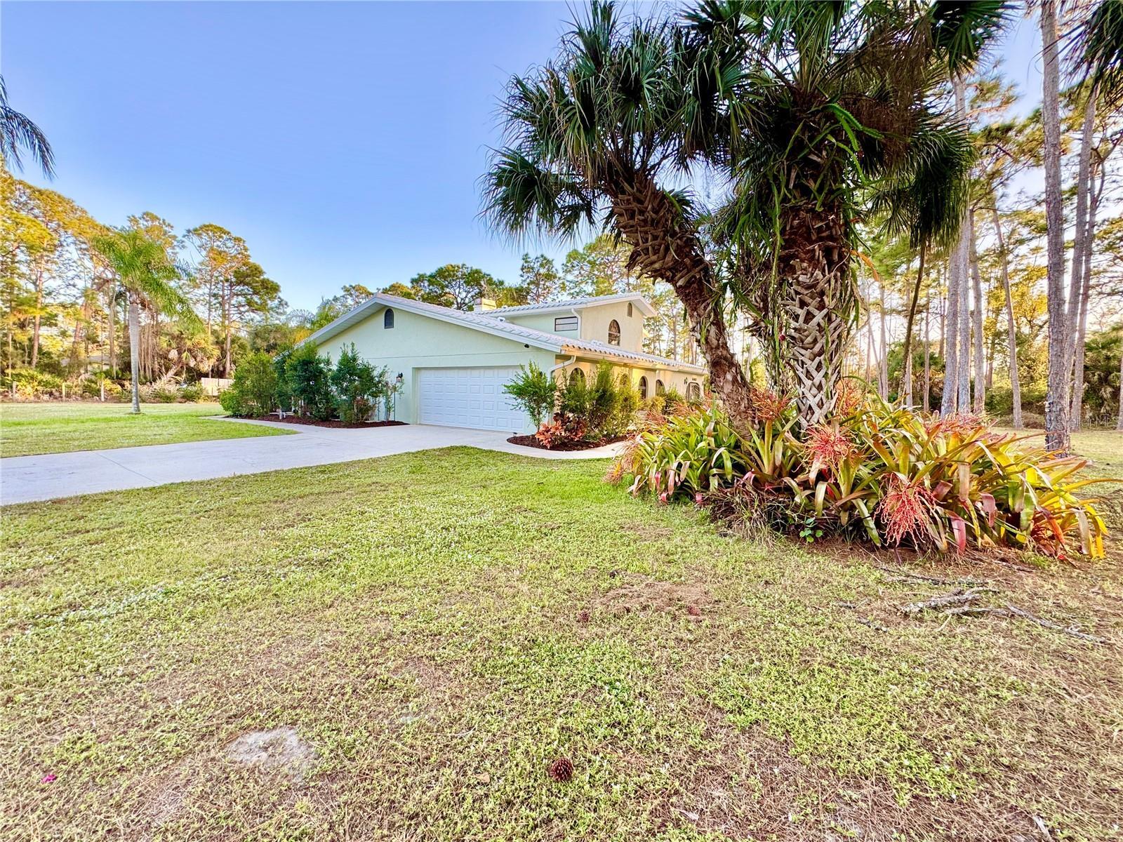 Stunning 4.66 Acre Estate Home in North Port Charlotte Estates – Updated & Move-In Ready!!! This impressive two-story residence in North Port Charlotte Estates offers exceptional privacy, generous space, and numerous high-value upgrades. With 3,388 sq. ft. under air, this home includes 4 bedrooms, 3 bathrooms, and an office that can easily serve as a 5th bedroom or flexible workspace—perfect for modern living. Major Upgrades & Features: • NEW barrel tile roof • Updated electrical panel • Splitzone A/C (one unit newer) • Central vacuum system • Wholehouse speaker system • Newer carpet • Newly Replaced skylights • 6 zone sprinkler system • Ideal location for a homebased business • Zoned AG – bring your horses! Inviting Interior Highlights: Experience a warm, functional layout designed for comfort, gatherings, and everyday enjoyment. • The spacious family room offers large windows that overlook the partially cleared and beautifully landscaped property. • A charming woodburning fireplace anchors the living room, creating a cozy focal point. • The updated kitchen features granite countertops, refreshed cabinetry, a breakfast bar, and seamless flow to the dining area. • Sliding doors from the dining room, living room, and the 12' x 22' cedar room with spa (conveniently located off the primary suite) make indooroutdoor living effortless. Primary Suite Retreat: The expansive primary suite includes a fully renovated bathroom complete with new vanities, a beautifully tiled shower, and modern finishes—your own private sanctuary designed for relaxation. Outdoor Living & Endless Possibilities: Enjoy Florida living from the large screened lanai, perfect for entertaining, unwinding, or taking in the peaceful natural surroundings. With nearly 5 acres of usable land, the options are limitless: • Ideal setting for a homebased business • Plenty of space for horses, gardens, workshops, or additional structures • A private, serene retreat with all the room you need to live, work, and play!