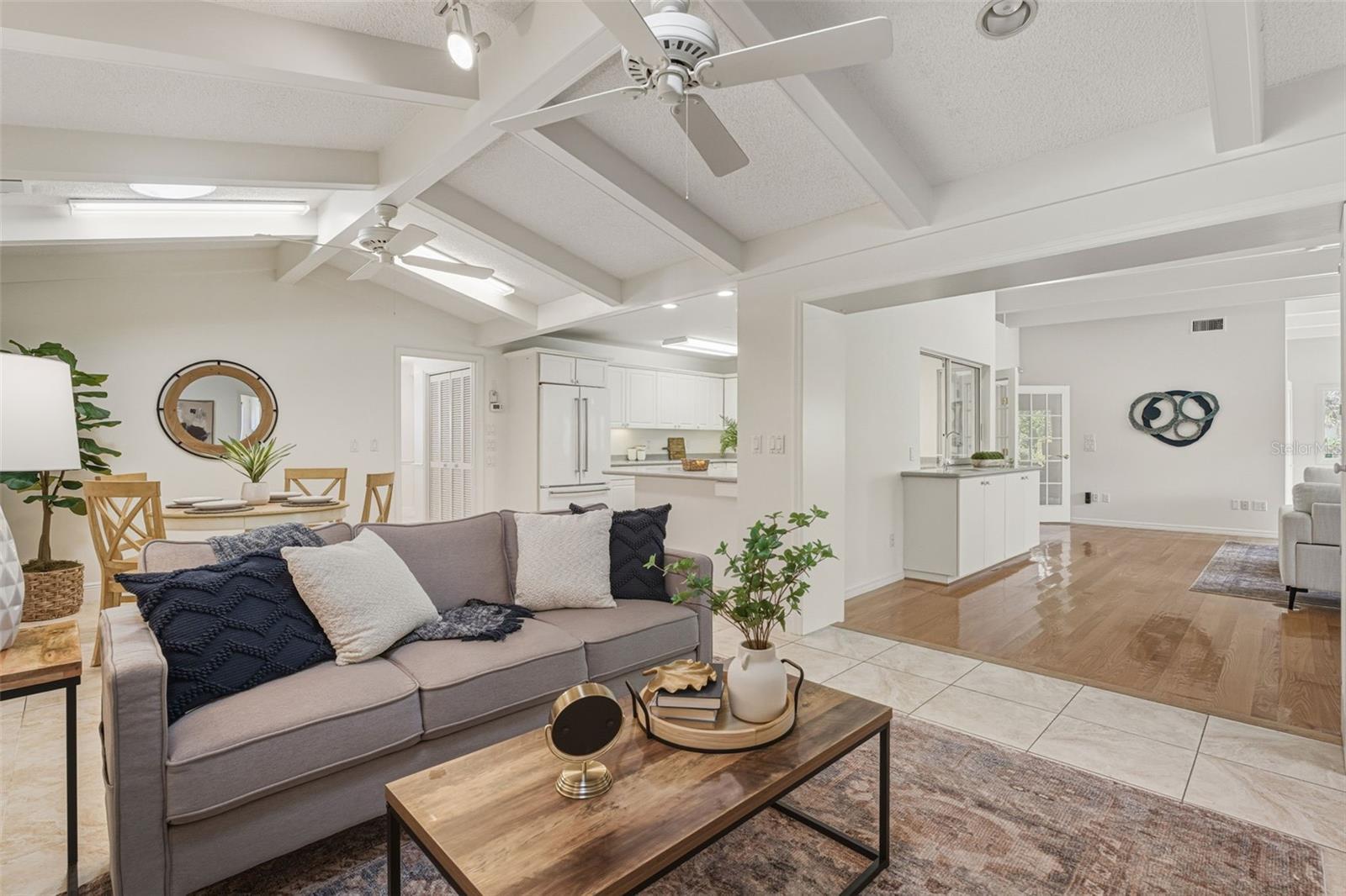 - Cathedral Ceiling(s), Ceiling Fans(s), High Ceilings, Kitchen/Family Room Combo, Living Room/Dining Room Combo, Primary Bedroom Main Floor, Split Bedroom, Thermostat, Vaulted Ceiling(s), Walk-In Closet(s)
