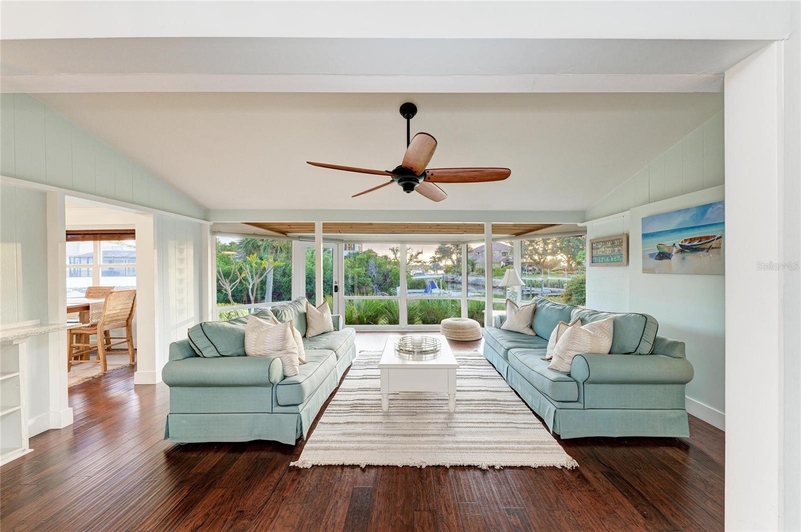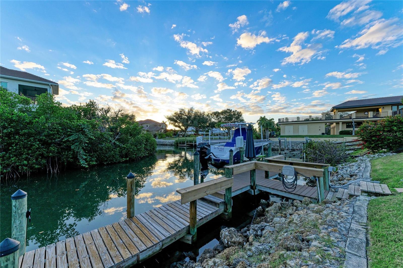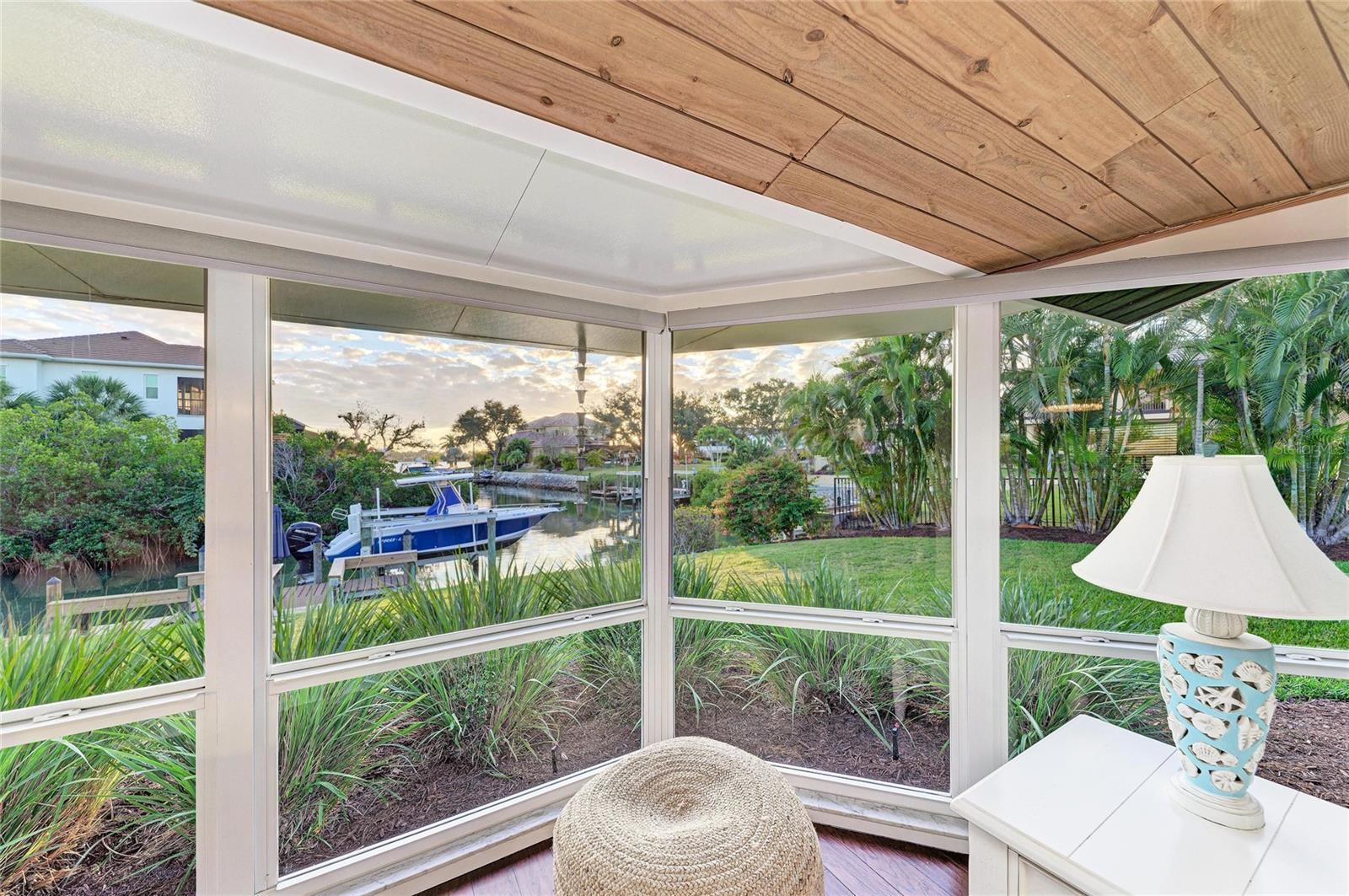 Wake up to ever-changing INTRACOASTAL VIEWS – SUNSETS dancing across the water, BOATS gliding by, and untouched wildlife. Set on an EXTRA-DEEP WATER FRONT LOT with GULF ACCESS, this exceptional residence offers a rare blend of privacy, sweeping WATERFRONT views, timeless COASTAL DESIGN, and a DOCK WITH A 10,000LB BOAT LIFT that places open water just minutes away. A BOATERS PARADISE, this refined home remains unaffected by flooding AND IN FLOOD ZONE X, unfolds safely toward the water where EXPANSIVE BAY WINDOWS frame uninterrupted scenery. Step out your back door and hop on your boat for effortless days on the water in a premium location. FULLY FURNISHED! Offering 3 BEDROOMS, 2 FULL BATHROOMS, and 1,846 square feet of true Florida living, this home’s PANORAMIC VIEWS flood it with natural light and blur the line between indoors and out. PGT IMPACT WINDOWS, ELECTRONIC SHUTTERS, rich WOOD PANELING, and CROWN MOLDING lend architectural depth and timeless coastal sophistication, creating a home that feels calm, luminous, and deeply connected to its surroundings. The kitchen features QUARTZ countertops, a GRANITE COMPOSITE SINK, and UPGRADED FIXTURES. CEDAR-accented guest bedroom ceilings, CUSTOM built-in closets throughout, and NEW LIGHTING reflect thoughtful stewardship. ADDITIONAL UPGRADES include a new REVERSE OSMOSIS WATER FILTERATION SYSTEM AND WATER HEATER (2023) and AIR DUCTS (2025). Outdoor living is the centerpiece. The PRIVATE DOCK AND OUTDOOR FIRE PIT are natural extensions of the home, inviting morning coffee, sunset cocktails, and manatee sightings. Boat amenities were meticulously maintained with NEW MOTOR CAPACITORS (2023), and BOAT LIFT CABLES AND DOCK LIGHTS (2024). Lush landscaping in the GENEROUS FRONT YARD enhances curb appeal, while mature trees provide tropical PRIVACY, with plenty of room for a POOL. Homes with this DEPTH, PRIVACY, and INTRACOASTAL ACCESS are RARELY available. This is not simply a WATERFRONT HOME – it is a BOATING LIFESTYLE defined by light, movement, and an ever-changing horizon. Just a 2 minute boat ride to the Intracoastal Waterway, 25 minutes to the Gulf of Mexico and 10 minutes to Casey Key Fish House and Tiki Bar! Call for a private tour of this beauty!