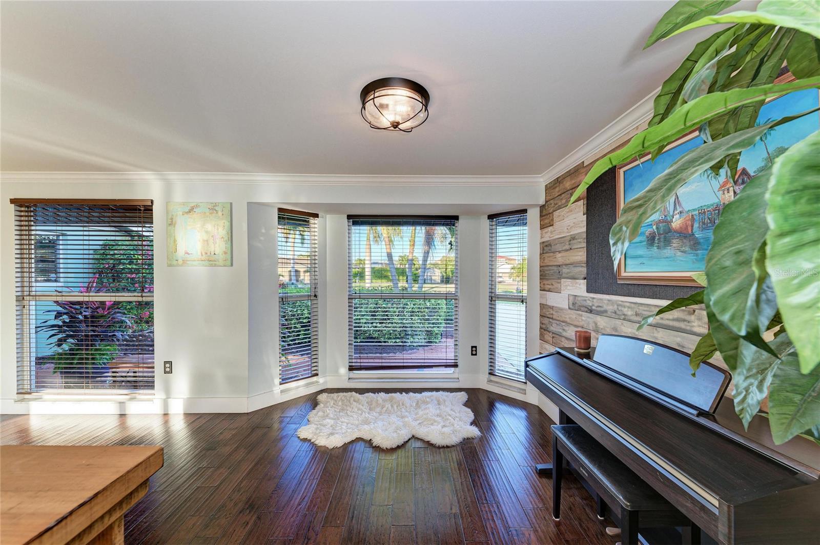 - Ceiling Fans(s), Crown Molding, Eat-in Kitchen, Living Room/Dining Room Combo, Primary Bedroom Main Floor, Solid Surface Counters, Solid Wood Cabinets, Thermostat, Walk-In Closet(s), Window Treatments