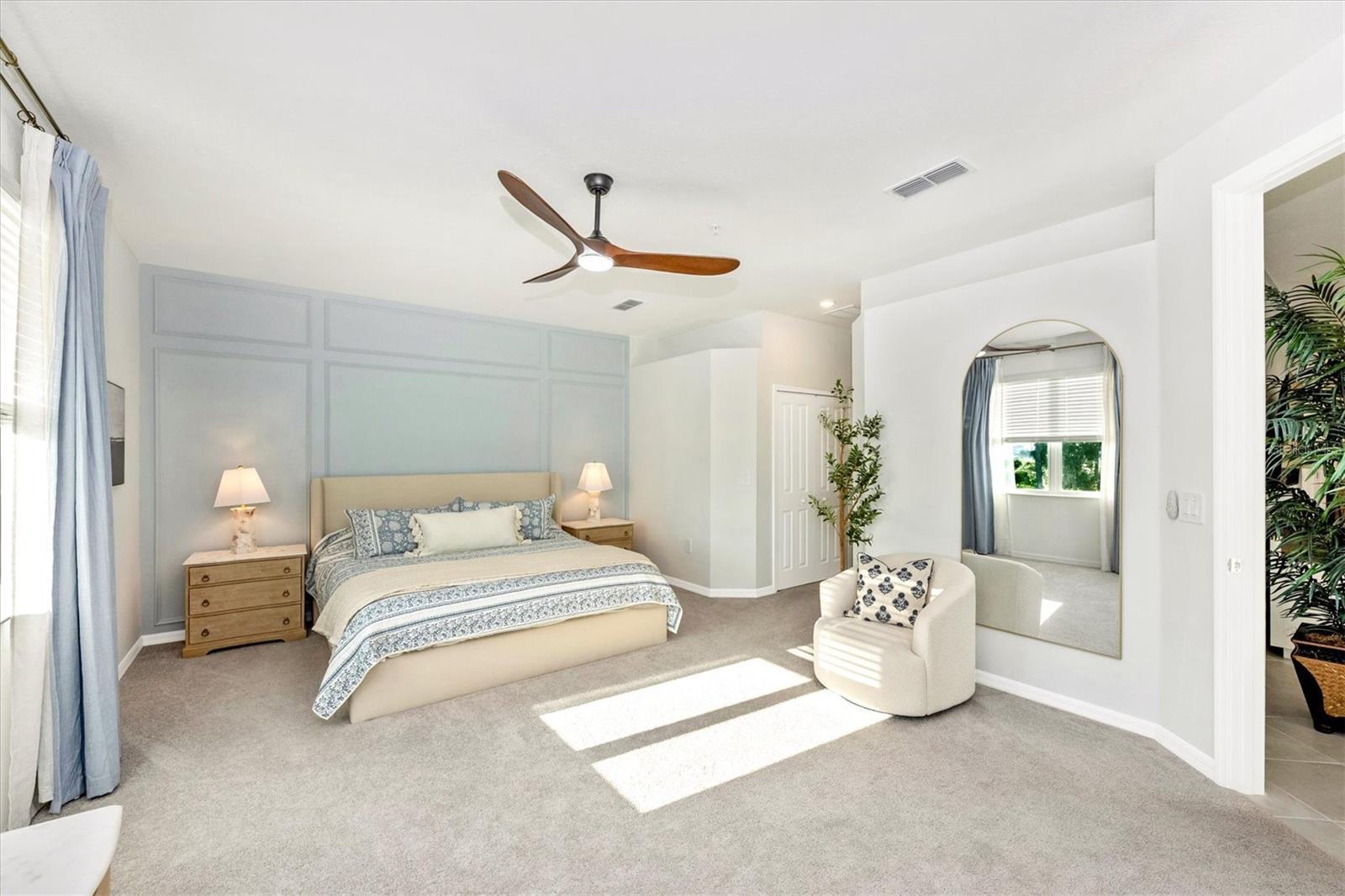 GOLF CART INCLUDED with this Luxurious and beautifully furnished 3-bedroom, 2-bath coach home with 2 car garage, available for seasonal rental in the exclusive gated Wellen Park Golf & Country Club. This elegant residence features an open-concept living area with designer touches and a spacious screened lanai overlooking the 6th hole of the championship golf course. The primary suite offers a king bed, walk-in closets, and a spa-inspired bath with dual vanities and a walk-in shower. The guest bedroom includes a comfortable queen bed and easy access to a full bath. 3rd bedroom also has a queen bed and walk in closet. Enjoy resort-style amenities including golf membership, clubhouse dining, fitness center and spa, pickleball & tennis, and sparkling resort style pools. Ideally located near Southwest Floridas pristine beaches, shopping, and fine dining—experience the ultimate Florida lifestyle. This place has everything you need including a golf cart!